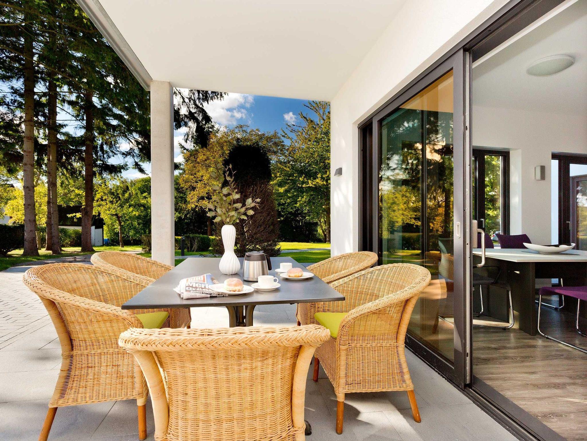 Das Kleeblatthaus finden Sie in ruhiger und doch zentraler lage in der Stadt Putbus.Dieses neu erbaute Haus mit 3 Ferienwohnungen(2-4 Personen), besticht durch die moderne Architektur und die idyllische Lage in einem 3000 Quadratmeter großen Garten.In direkter Nachbarschaft finden Sie den wunderschönen Schlosspark von Putbus.Das Theater und das Zentrum erreichen Sie nach 10 Gehminuten.Unsere Ferienwohnungen sind der ideale Ausgangspunkt für Wanderungen und Radtouren durch das Biosphärenreservat Südost-Rügen.Die Pirateninsel und das umgedrehte Haus befinden sich in unmittelbarer Nachbarschaft. Der Fischereihafen von Lauterbach liegt 1 km entfernt.Sie können auch mit dem rasenden Roland in Richtung Baabe fahren und auf dem Seeweg nach Lauterbach zurückkehren. Dieser Tagesausflug wird Sie begeistern.Am 1 km entfernten Bahnhof Putbus fahren Züge und Busse ab, die Sie zu vielen Zielen auf der Insel bringen. Die Ostseestrände von Binz und Sellin erreichen Sie in ca. 15 Fahrminuten, eine nahe gelegene Badestelle im Bodden erreichen Sie nach ca. 1 km in Neuendorf.