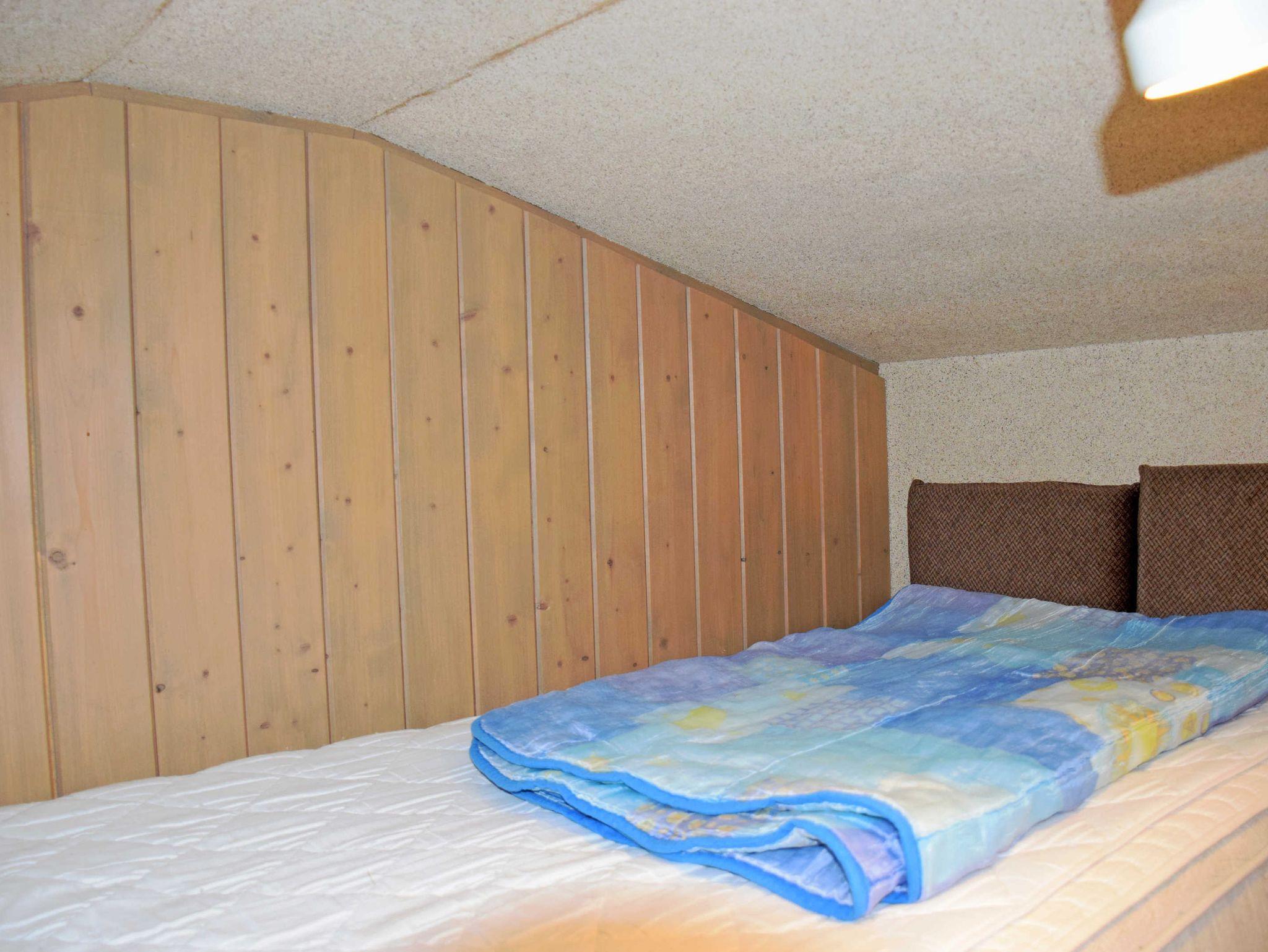 Im separaten Schlafzimmer befinden sich ein Doppelbett ein Kleiderschrank. Vor dem Ferienhaus gibt es eine schöne überdachte Terrasse mit Gartenmöbeln, auf der man Frühstücken oder abends grillen kann.