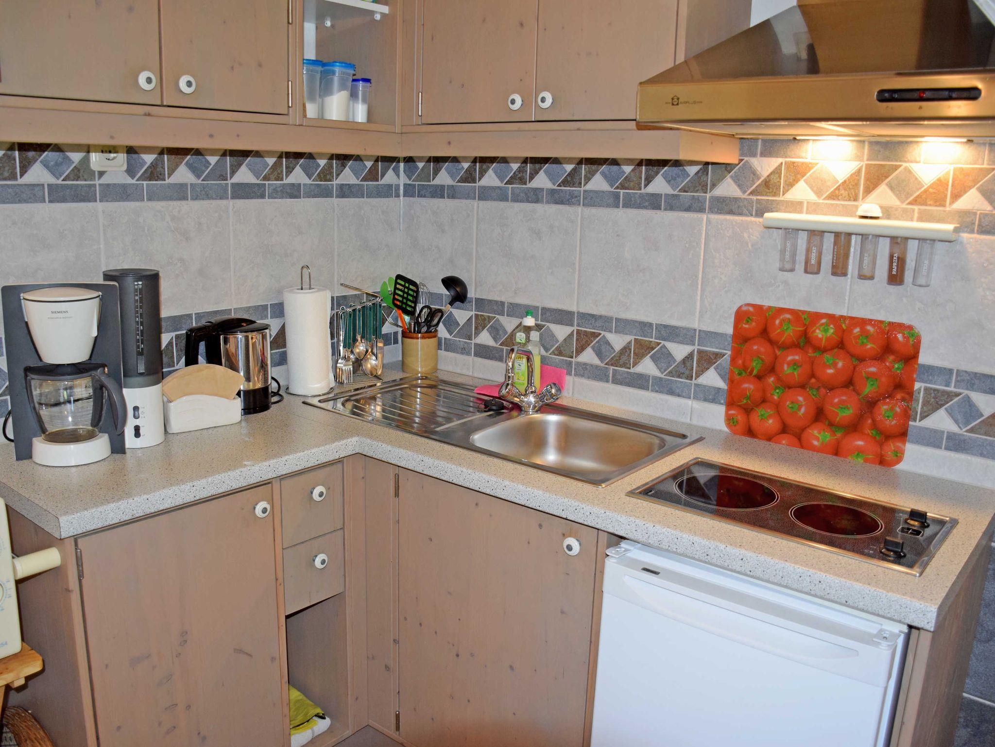 Das Ferienhaus Achtern im Grünen (30 qm, max. 2 Erwachsene, WLAN vorhanden) ist sehr gemütlich und modern eingerichtet. Zur Ausstattung im Wohnbereich gehören eine Couch mit Tisch, Flachbild-TV/Radio und Sitzecke mit Esstisch. Die Küchenzeile bietet Herd, Kühlschrank, Spüle, Kaffeemaschine, Wasserkocher und Küchenausstattung.