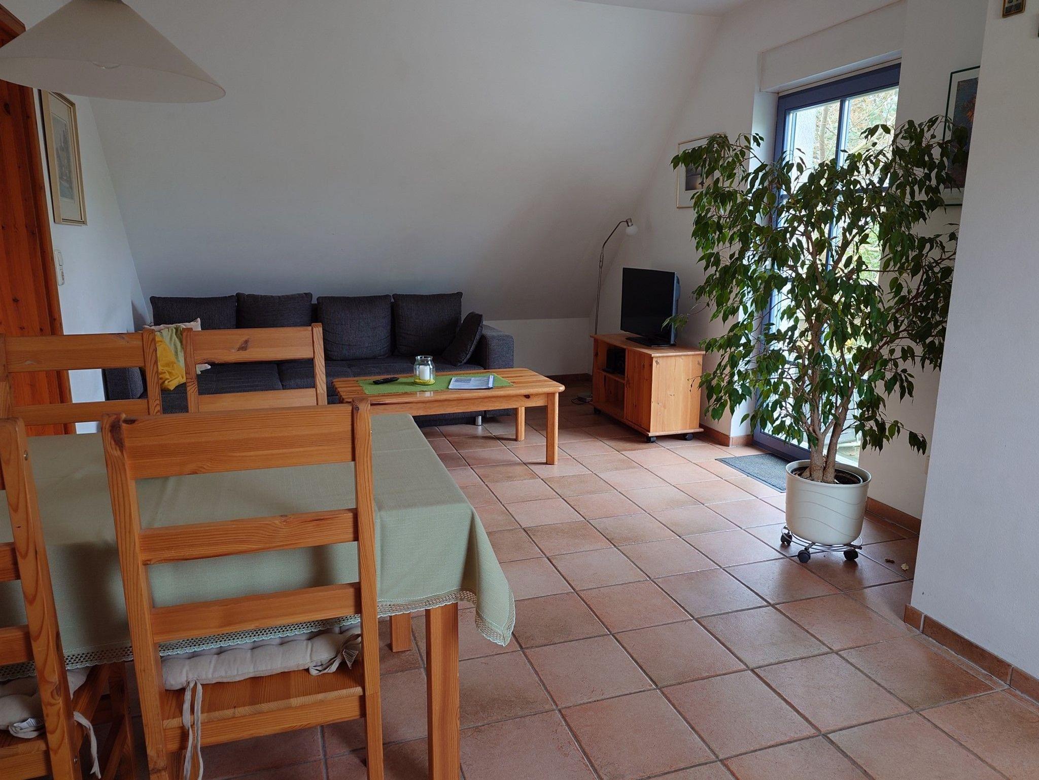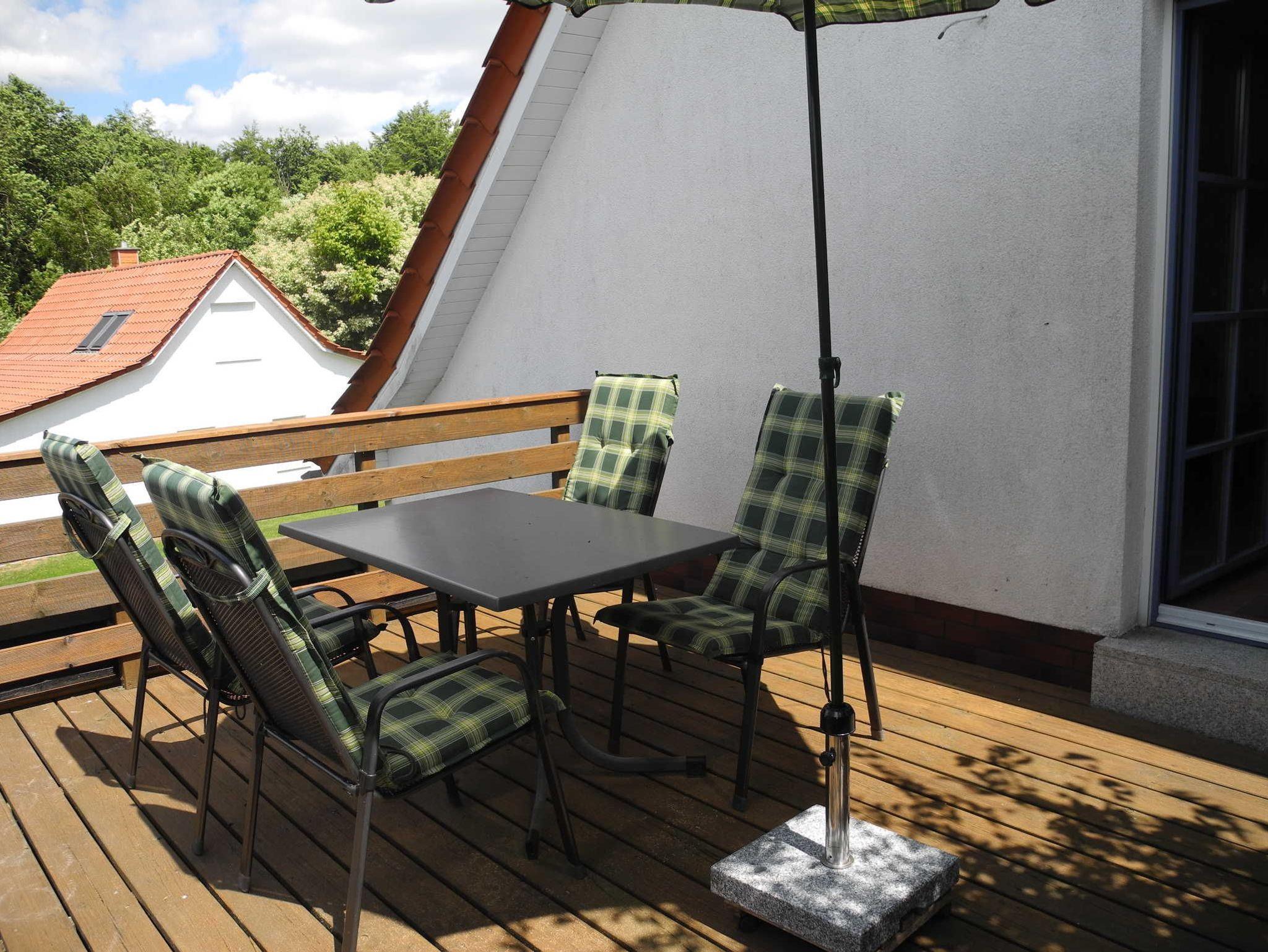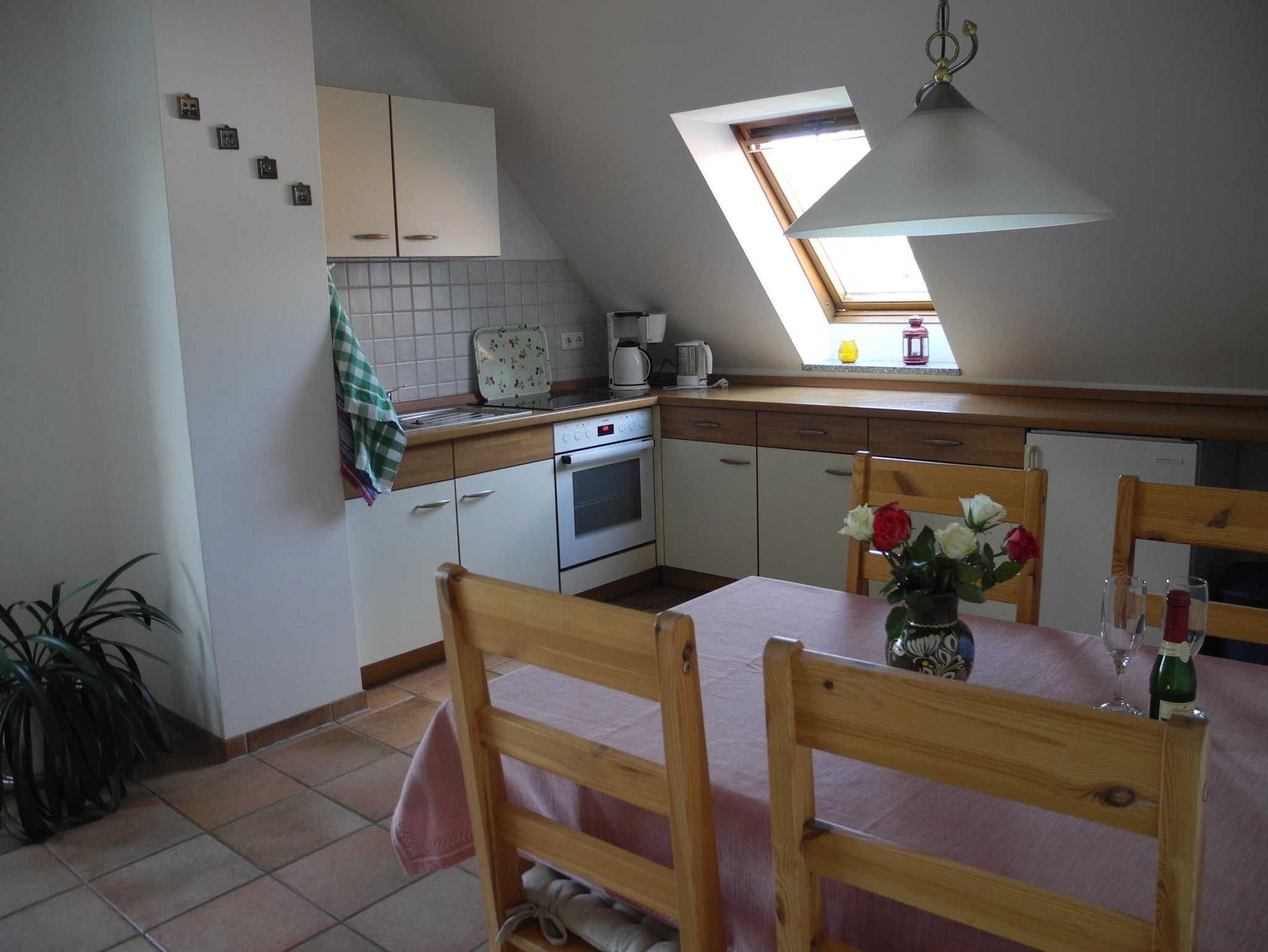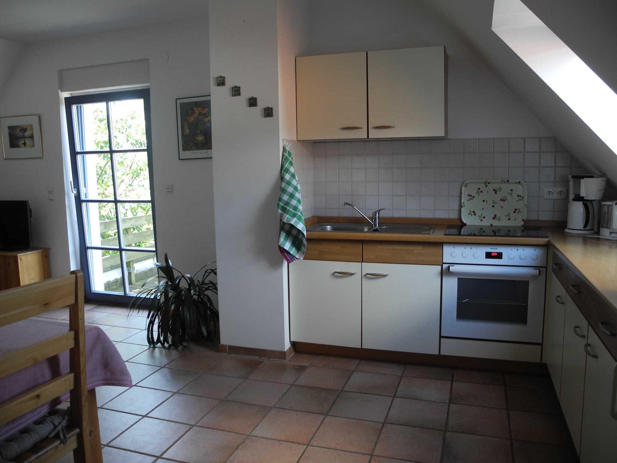 Diese Wohnung befindet sich im Dachgeschoss (1. Etage) und verfügt über einen großen Wohnraum mit einer gemütlichen Couchecke, Essplatz und integrierter Einbauküche, ein Schlafzimmer mit Doppelbett, Dusche/WC, sowie eine ca. 20 qm große Süd-West-Terrasse.