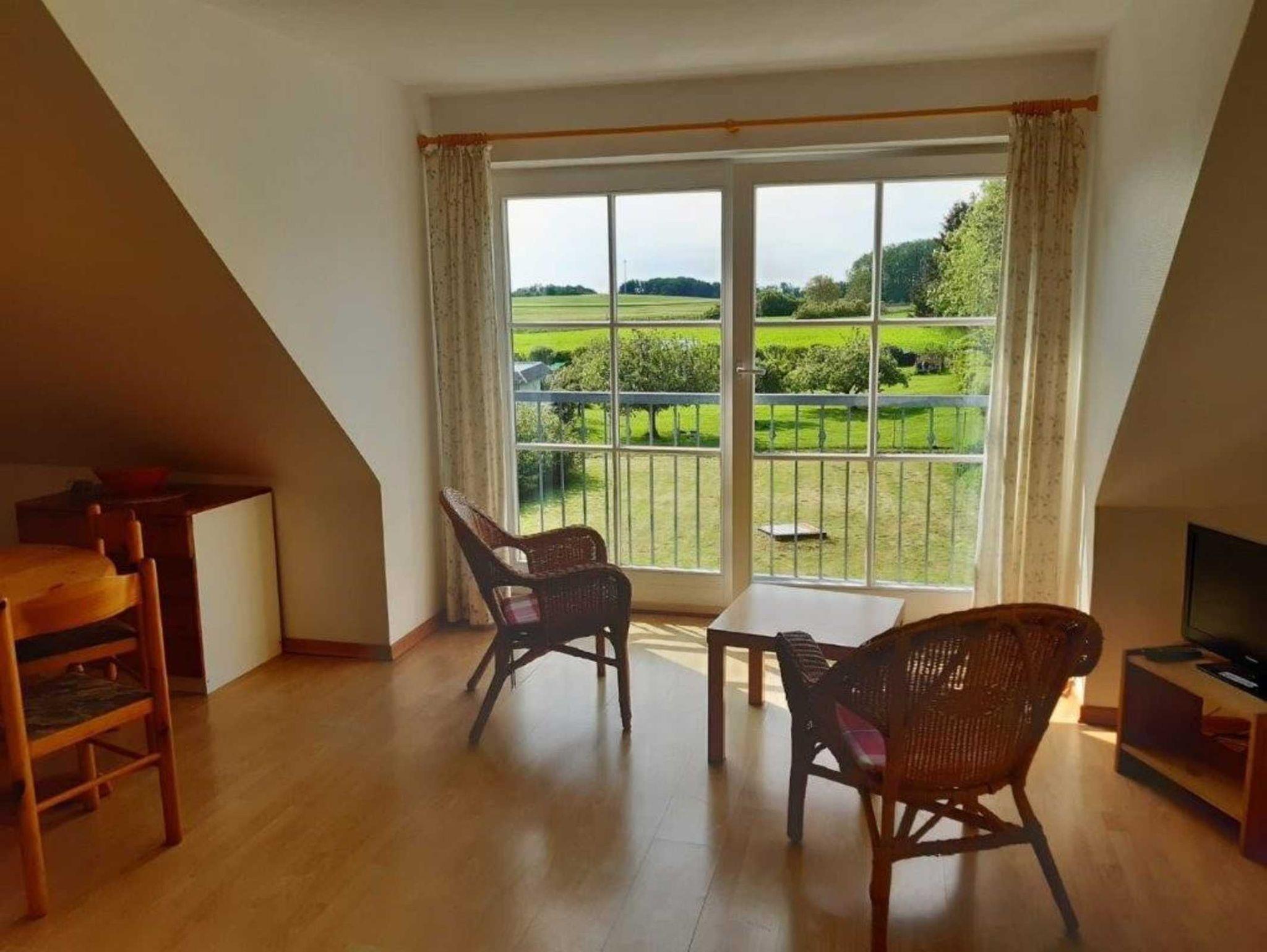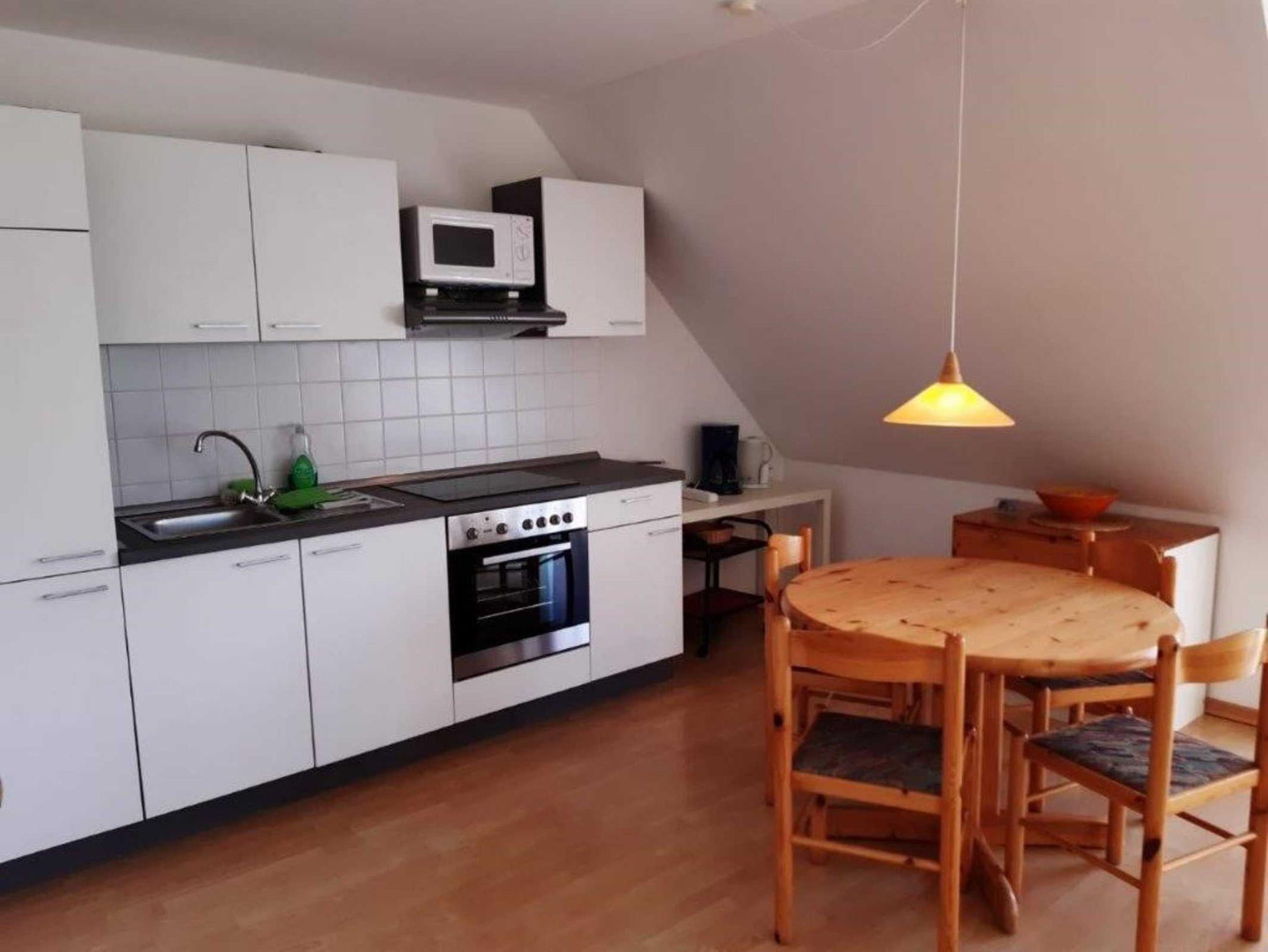 Die Nichtraucherferienwohnung besteht aus einer Wohnküche, Backofen/ Cerankochfeld, einem Schlafzimmer, DU/WC, und einen Garten zu Benutzung.