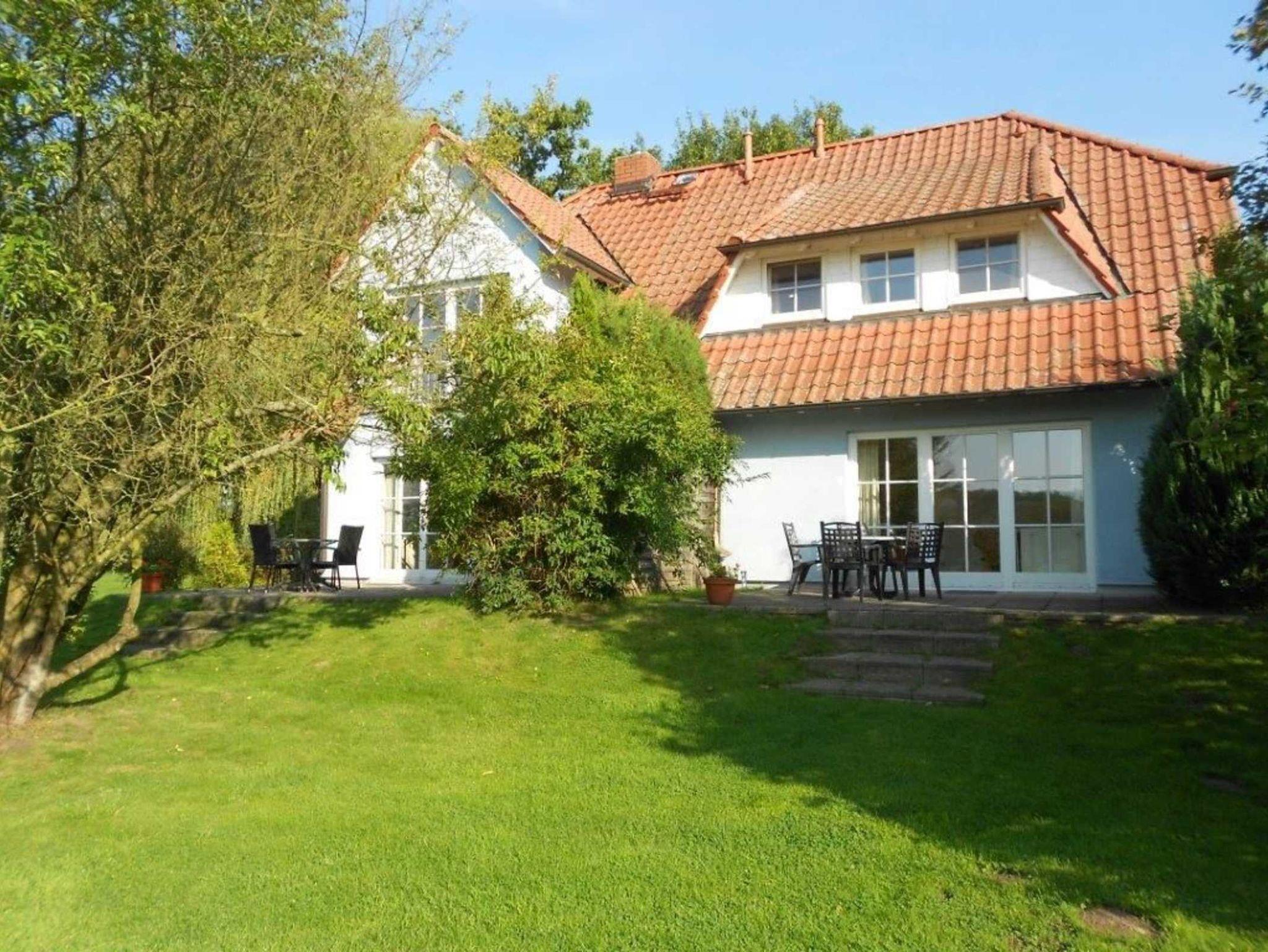 Ferienhaus mit 4 Ferienwohnungen, in der Nähe von Putbus. Das Haus ist 1998 fertiggestellt. Grosser Garten und Süd-Terrassen, eigene Sitzgruppe im Garten oder auf der Terrasse, Sandkasten, Grill, Gartenhaus mit Fahrradständer.