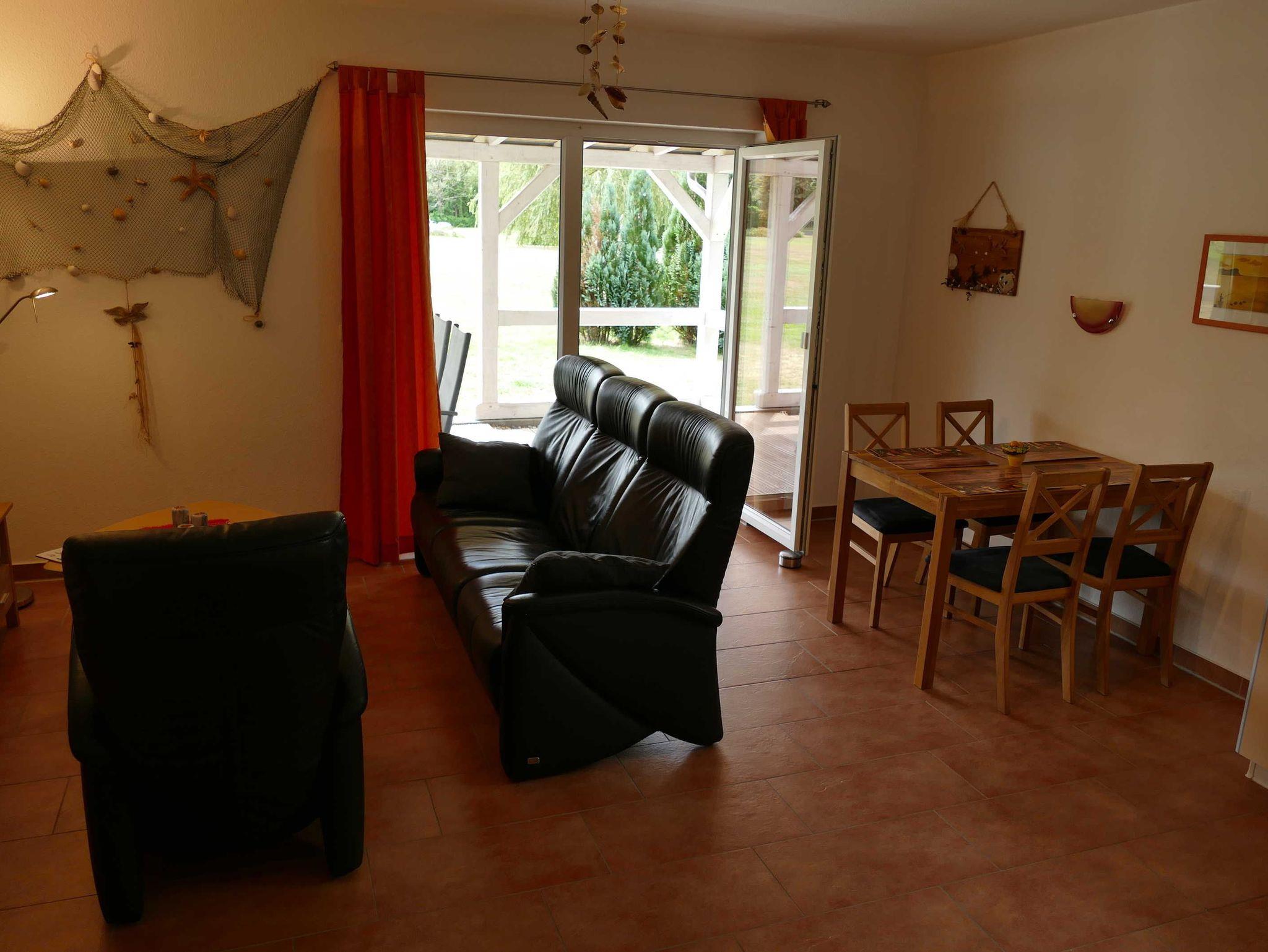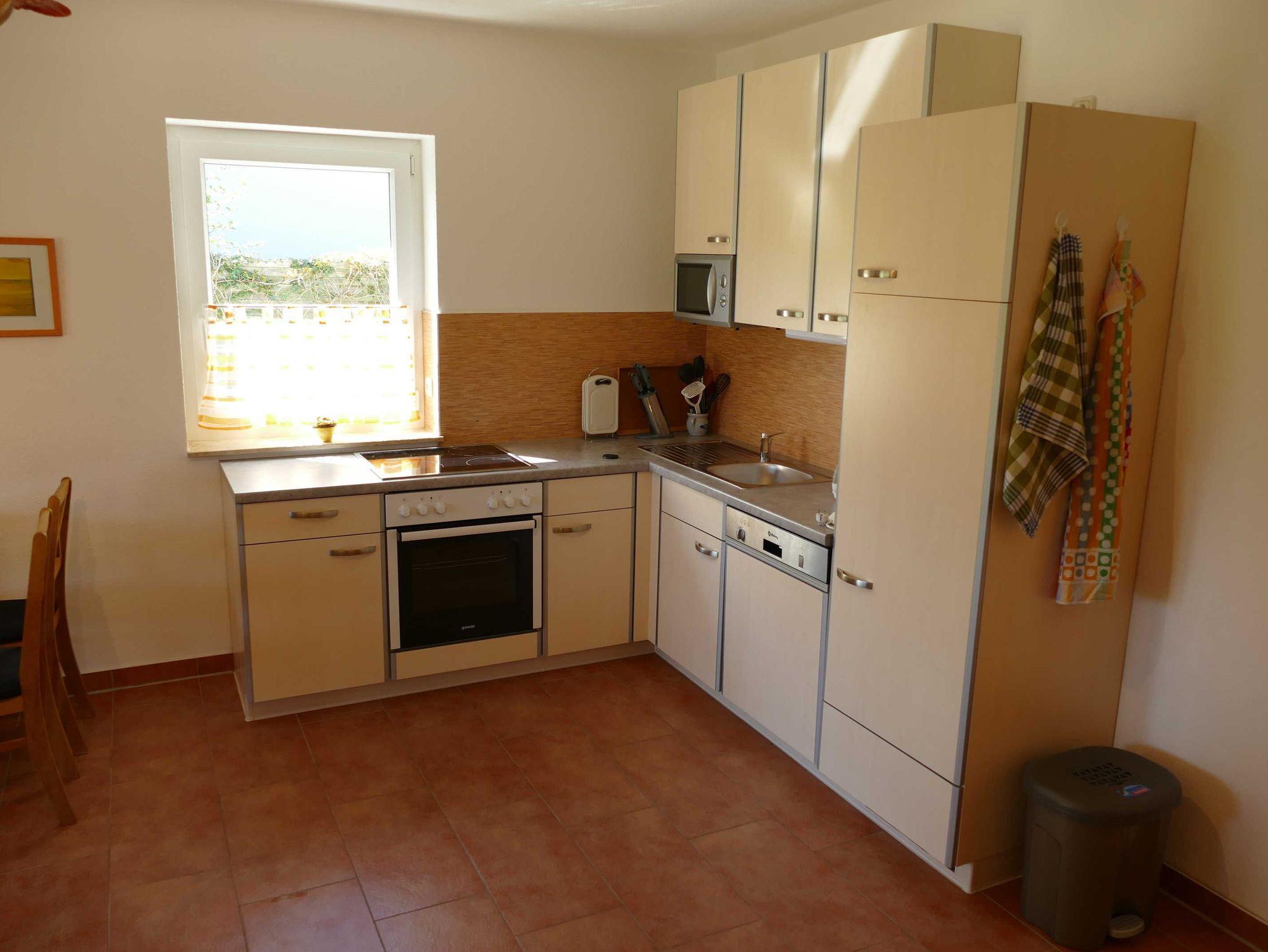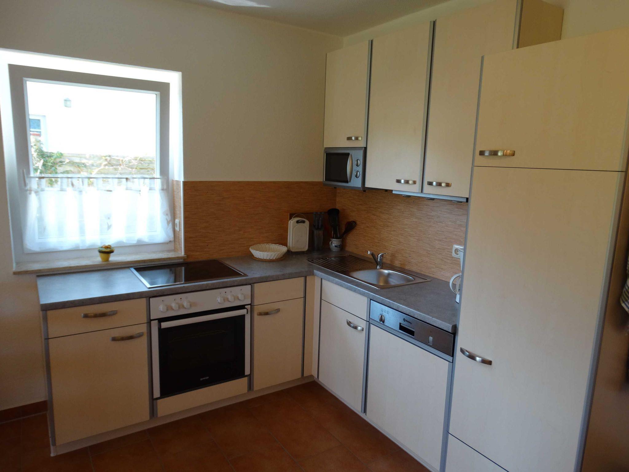Die Ferienwohnung hat einen separaten Eingang und besteht aus einem Wohnraum mit Sitzgruppe, einer offenen Küche mit Esstisch, einem Schlafzimmer mit Doppelbett, einem weiteren Schlafzimmer mit zwei Einzelbetten (die auch zusammen gestellt werden können) und dem Duschbad. Des weiteren steht Ihnen eine möblierte Terrasse zur Verfügung.