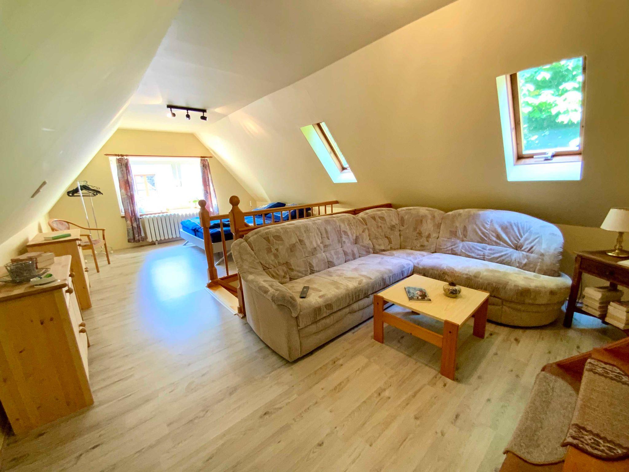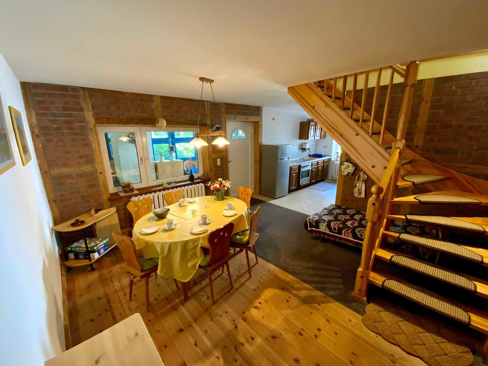 Die 3-Raum-Unterkunft erstreckt sich über 2 Etagen, im EG mit Küche, Essbereich und Bad, im OG mit einem Wohnschlafzimmer und einem separaten Schlafzimmer und eignet sich somit sehr gut für Familie mit Kindern.
