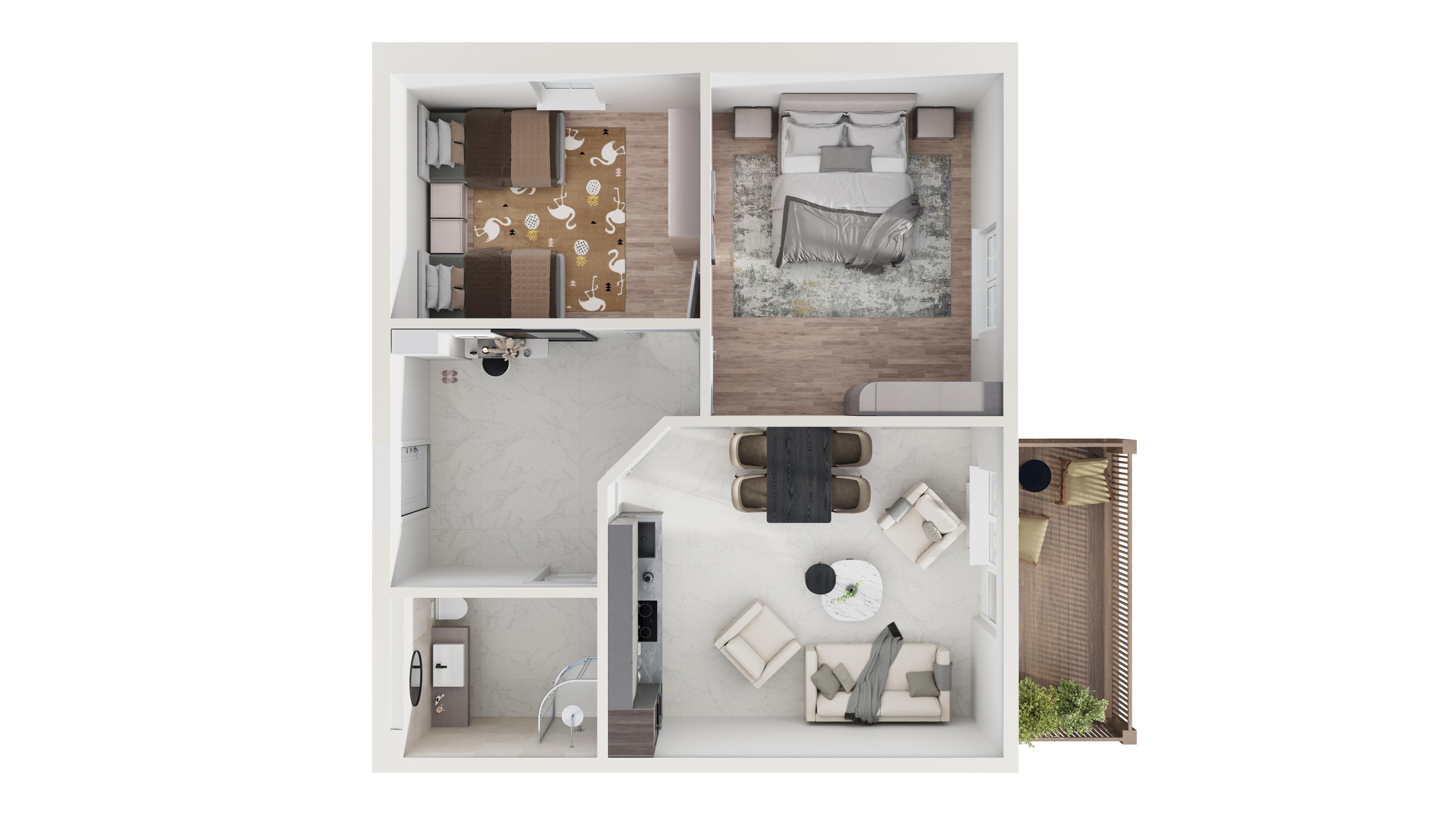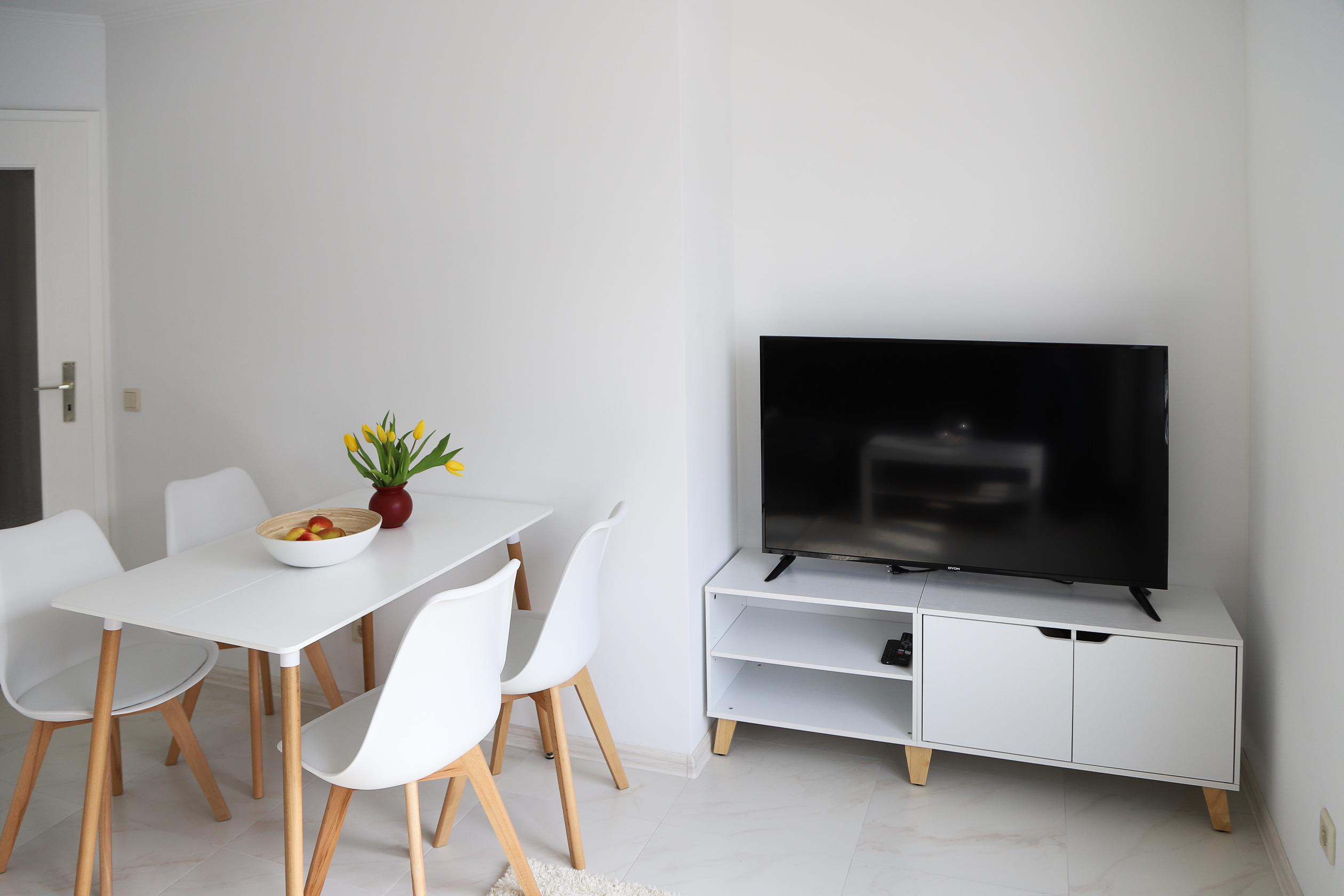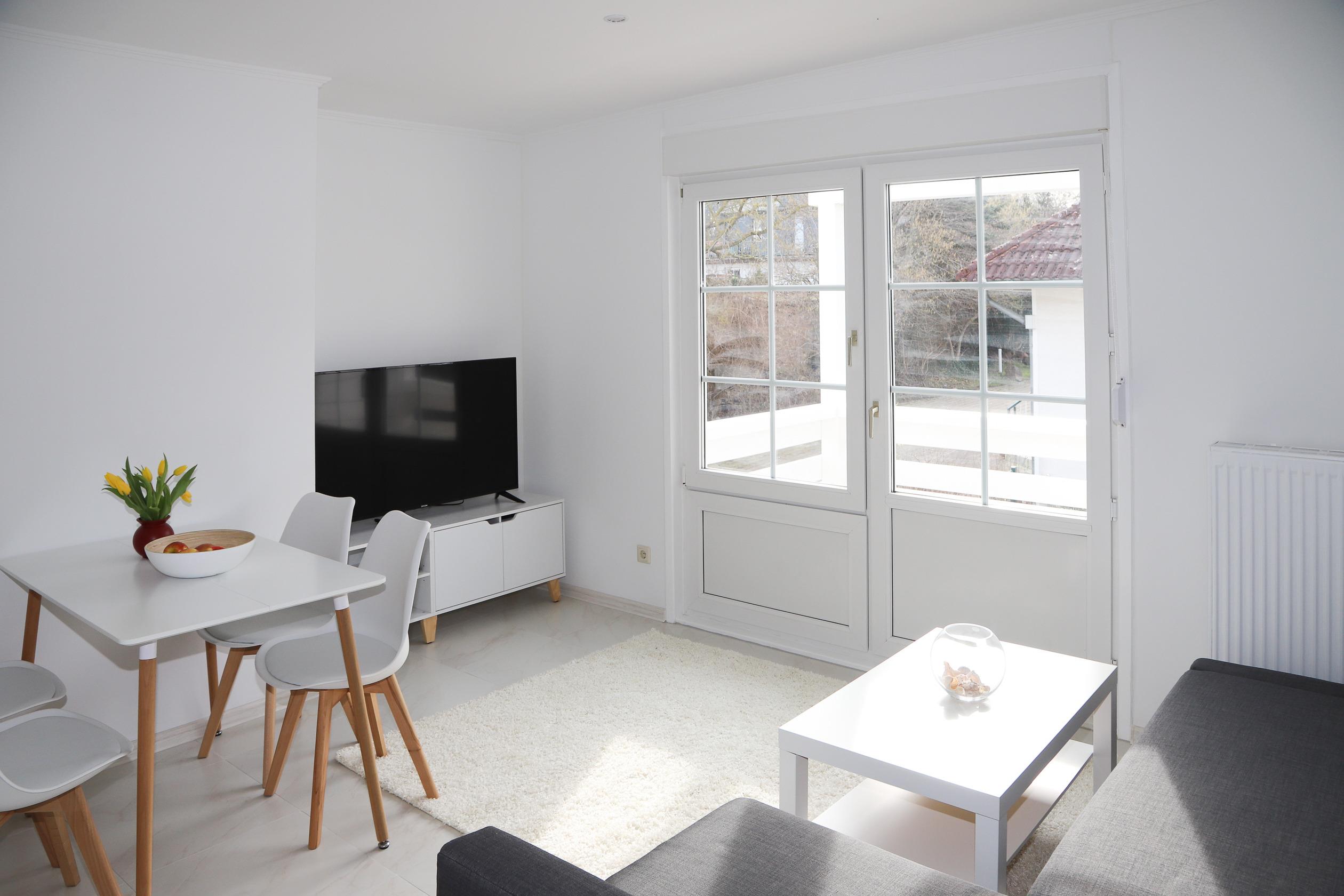 Die neu modernisierte und möblierte Ferienwohnung befindet sich im Erdgeschoss. Sie besteht aus einen Wohnzimmer mit Küche und Esstisch, mit ausklappbarer Schlafcouch, einem Schlafzimmer und einem Duschbad.