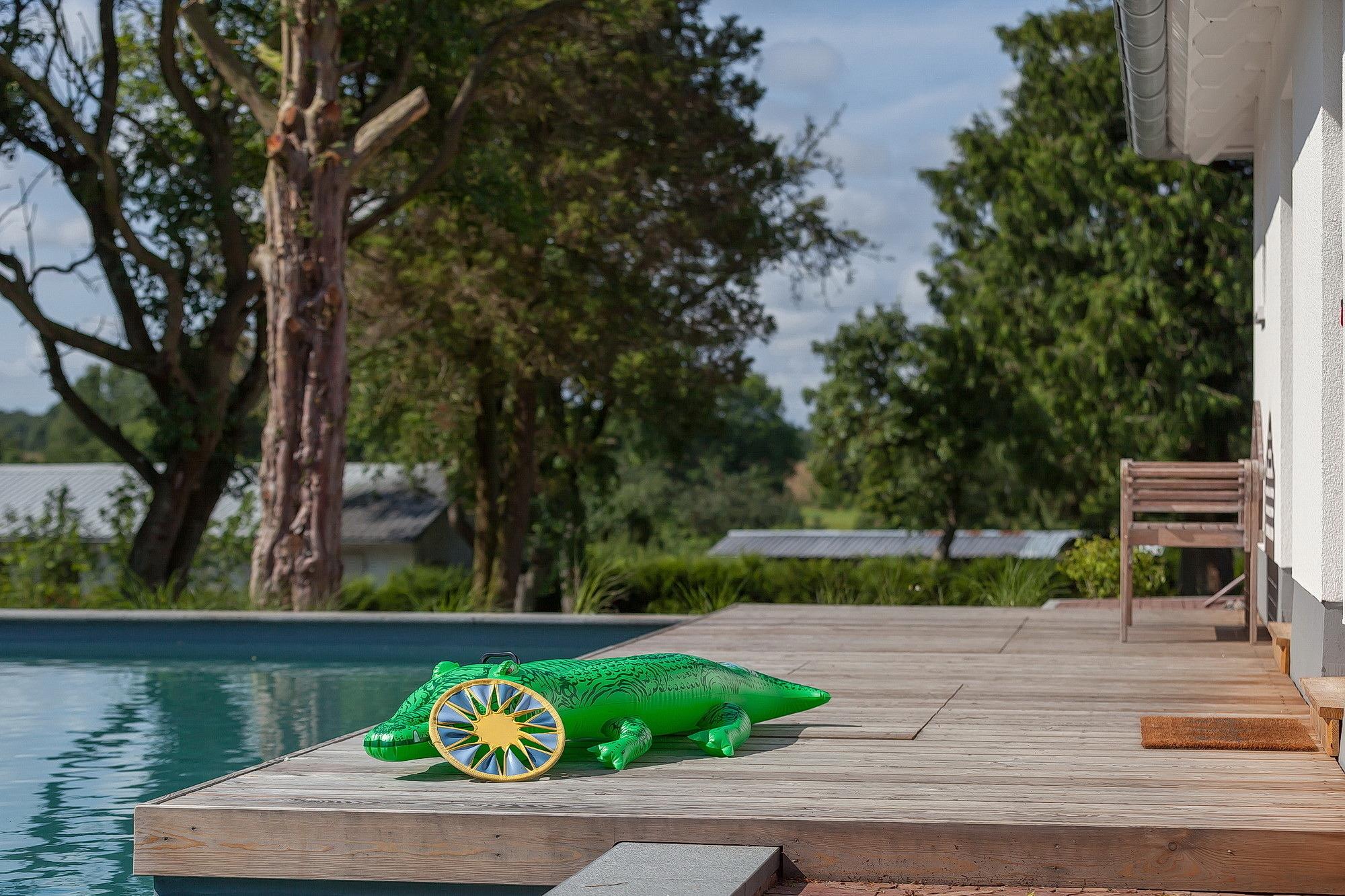 Besonderes Highlight des gepflegten, sonnigen Anwesens ist der hauseigene Außenpool (saisonal nutzbar), in dem die ganze Familie genügend Platz für Erholung und Entspannung findet. Bitte beachten Sie: Die Wassertiefe beträgt ca. 1,50 Meter; die Nutzung des Pools erfolgt auf eigene Verantwortung und Gefahr. Bequeme Garten-Ruhemöbel auf der Terrasse des stolze 1.400 qm großen Grundstücks laden zum Relaxen ein. Unser Tipp für alle Wasserratten: Zu den schönen Naturstränden am Greifswalder Bodden in Putbus/Wreechen und in Stresow sind es nur ca. 4 bzw. 8 km, die Strände der Ostseebäder Binz und Sellin erreicht man in ca. 15 Fahrminuten.