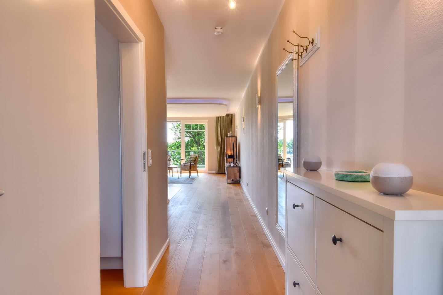 Dort beginnt der Urlaub für 2 Personen schon beim Eintreten. Wenn Sie es genau nehmen, schon beim Ankommen. Das Auto auf dem für Sie reservierten Stellplatz abgestellt, können Sie bei so viel sonniger Leichtigkeit erst einmal richtig durchatmen. Öffnen Sie die bodentiefen Fenster zu Ihrem Balkon und genießen Sie die frische Brise. Hier lässt es sich ausgezeichnet frühstücken. Das Innere Ihrer Ferienwohung ist bis ins Detail eingerichtet. Lampen, Möbel und Bilder, ein Sofa lädt zum Relaxen ein. Zur Ausstattung des Wohn-Esszimmers gehören Flat-TV. Das WLAN können Sie kostenfrei nutzen.
