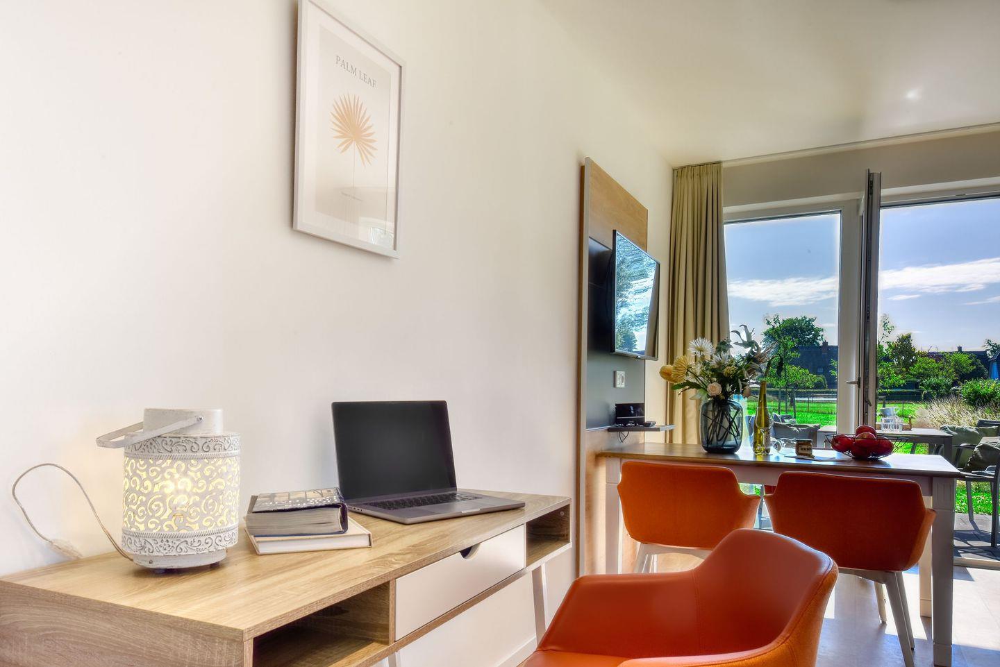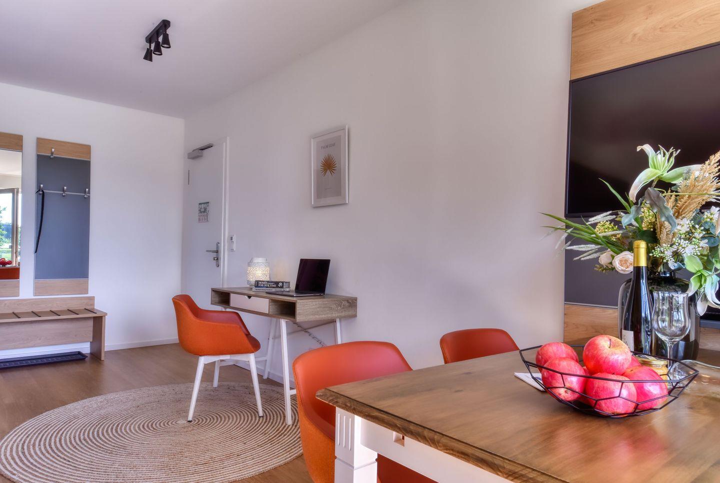 Wohnzimmer: Im gemütlichen Wohnzimmer erwartet Sie ein bequemes Schlafsofa, das Platz für zwei weitere Gäste bietet. Hier können Sie nach einem erlebnisreichen Tag entspannen, TV schauen oder einfach den Blick in die Natur genießen.