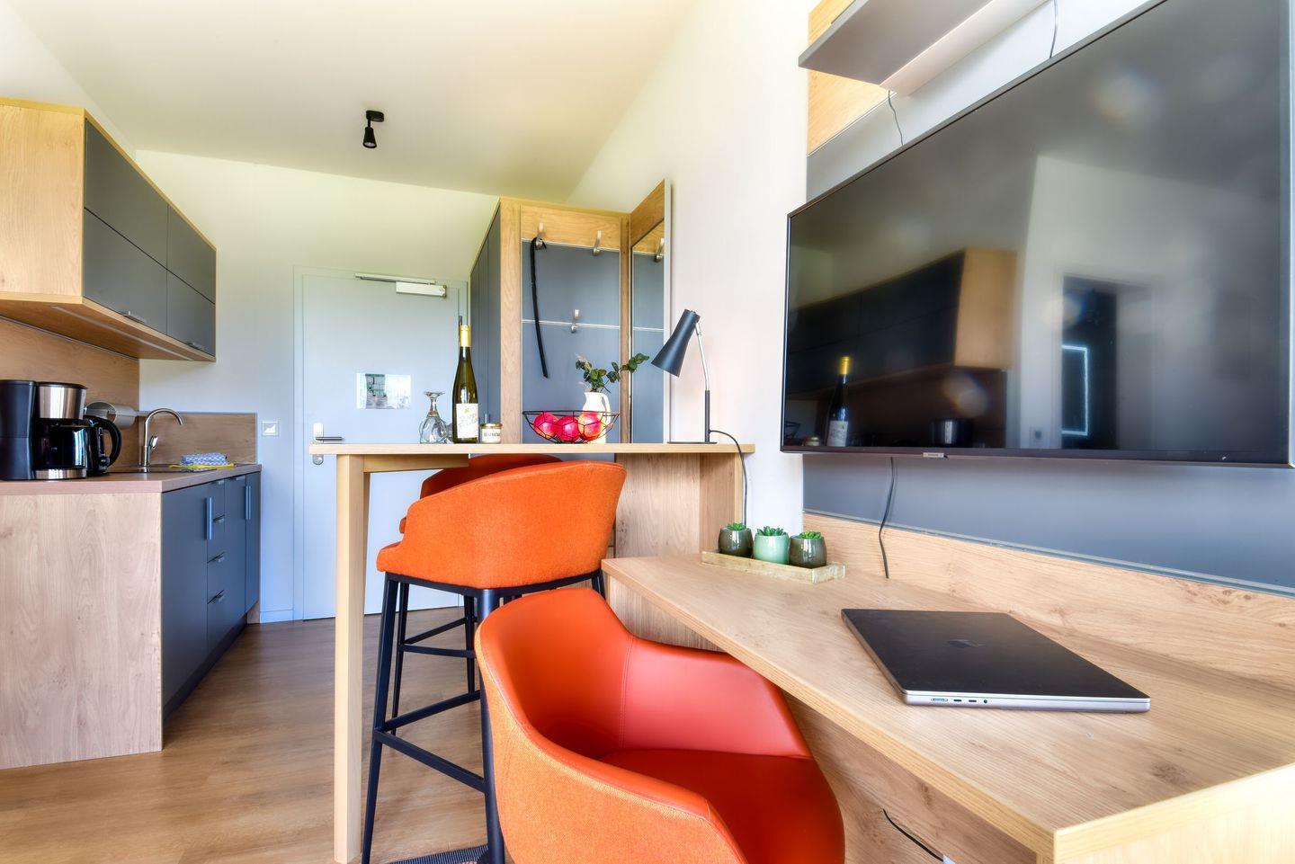 Küche: Die voll ausgestattete Küche bietet alles, was Sie zur Selbstversorgung benötigen. Von modernen Küchengeräten bis hin zu ausreichend Geschirr und Besteck ist alles vorhanden, um Ihre Lieblingsgerichte zuzubereiten.