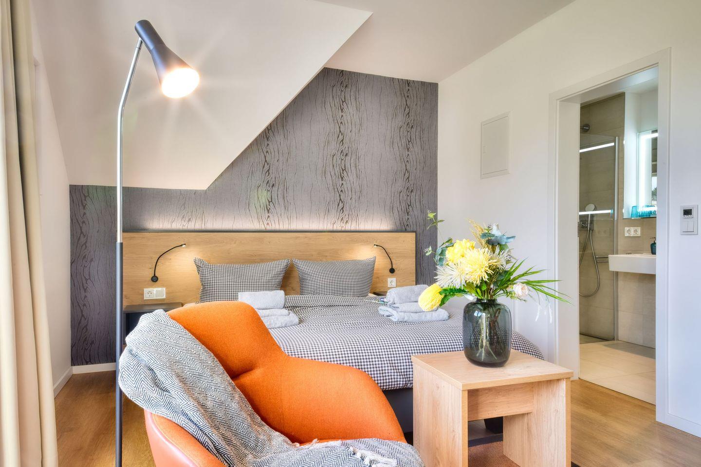 Schlafzimmer: Das gemütliche Schlafzimmer ist mit einem großzügigen Doppelbett ausgestattet, das Ihnen eine erholsame Nachtruhe garantiert. Hier können Sie nach einem erlebnisreichen Tag entspannen, TV schauen oder einfach den Blick in die Natur genießen. Hochwertige Bettwäsche und genügend Stauraum für Ihre Garderobe sorgen für zusätzlichen Komfort.