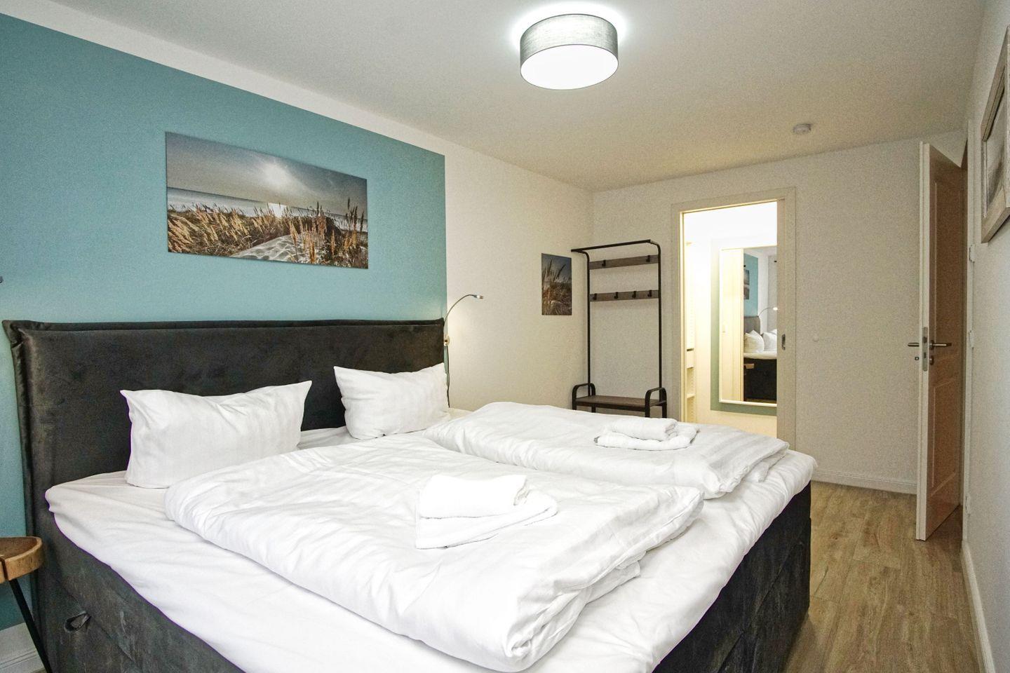 SCHLAFEN // ein Schlafzimmer mit bequemem Boxspringbett und Flachbild-TV, im Wohnzimmer mit hochwertigem Schlafsofa ++