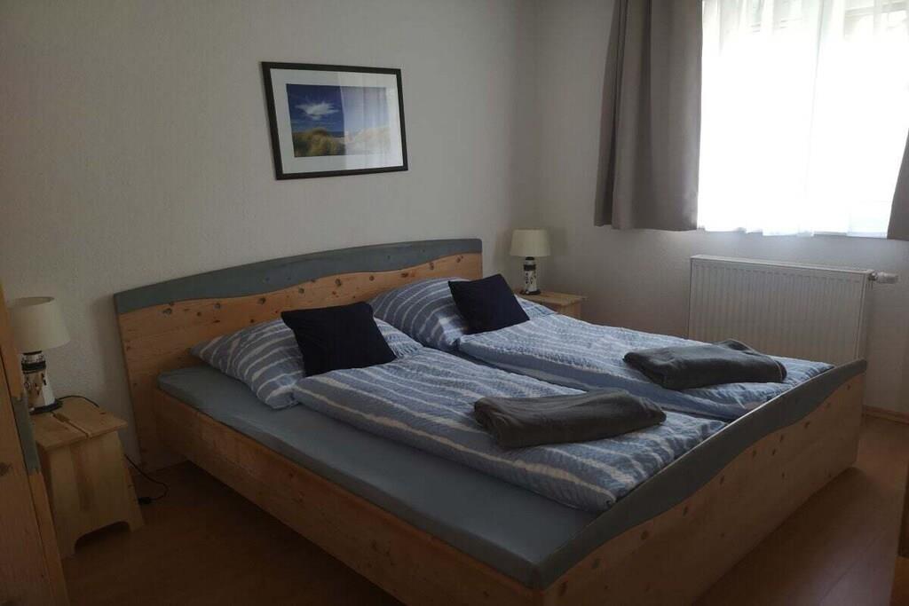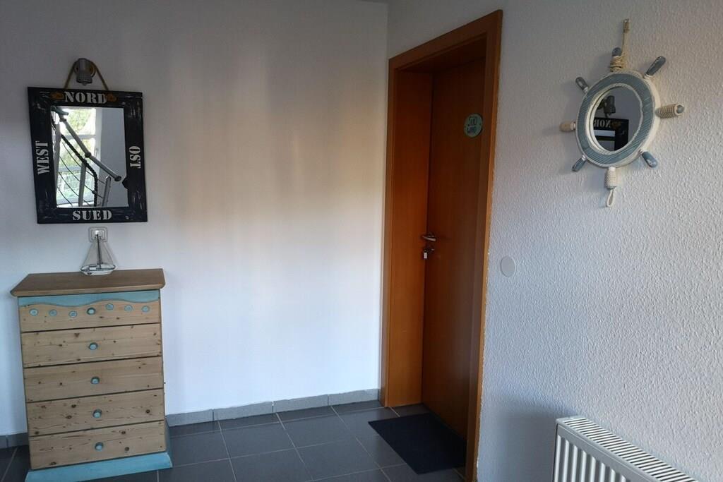 Den skønne, cirka 50 m² store stuelejlighed Südwind har en lys stue med udgang til terrassen, et nordvendt soveværelse og et delvist åbent køkken med en hyggelig spiseplads. Et moderne brusebad fuldender lejligheden. Med sofaen i stuen byder ferielejligheden på plads til 2 til 3 personer. Til lejligheden hører også en parkeringsplads foran huset. Der er også et aflåseligt skur på ejendommen til opbevaring af dine cykler.