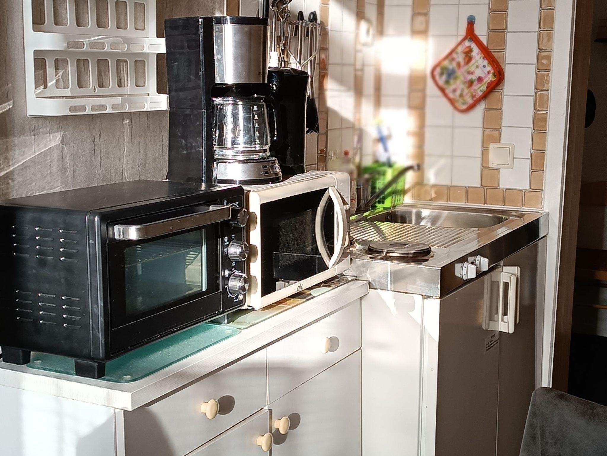 Die Ferienwohnung ist idealerweise für 4 Personen geeignet , ca. 60 qm groß,hat einen sep. Eingang, 1 Wohnraum mit Schlafcouch für 2 Personen sowie einen Schlafraum auch für 2personen, Sat-TV,Wlan, Radio, sep. Küche (mit Kühlschrank, Kaffeemaschine, Toaster, Wasserkocher, Mini-Backofen und einem 2 Plattenherd und alles,was man sonst noch benötigt ausgestattet, Du/WC,Haarfön,seperater Parkplatz und Grillecke sind vorhanden