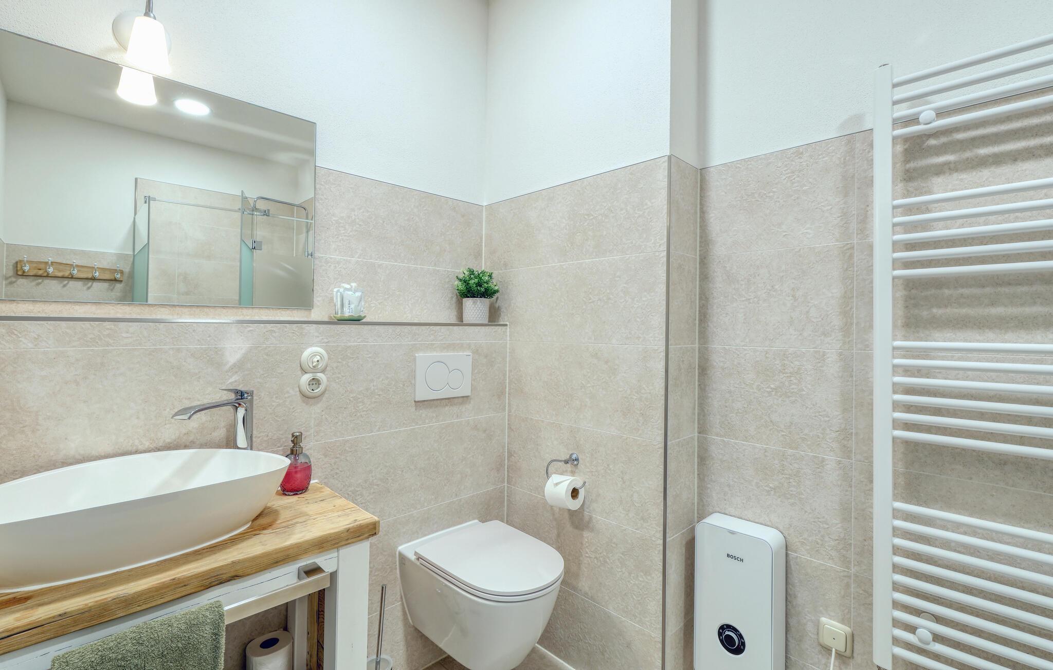 Badeværelse (nr. 1) - WC. Varmt og koldt vand. Bruser