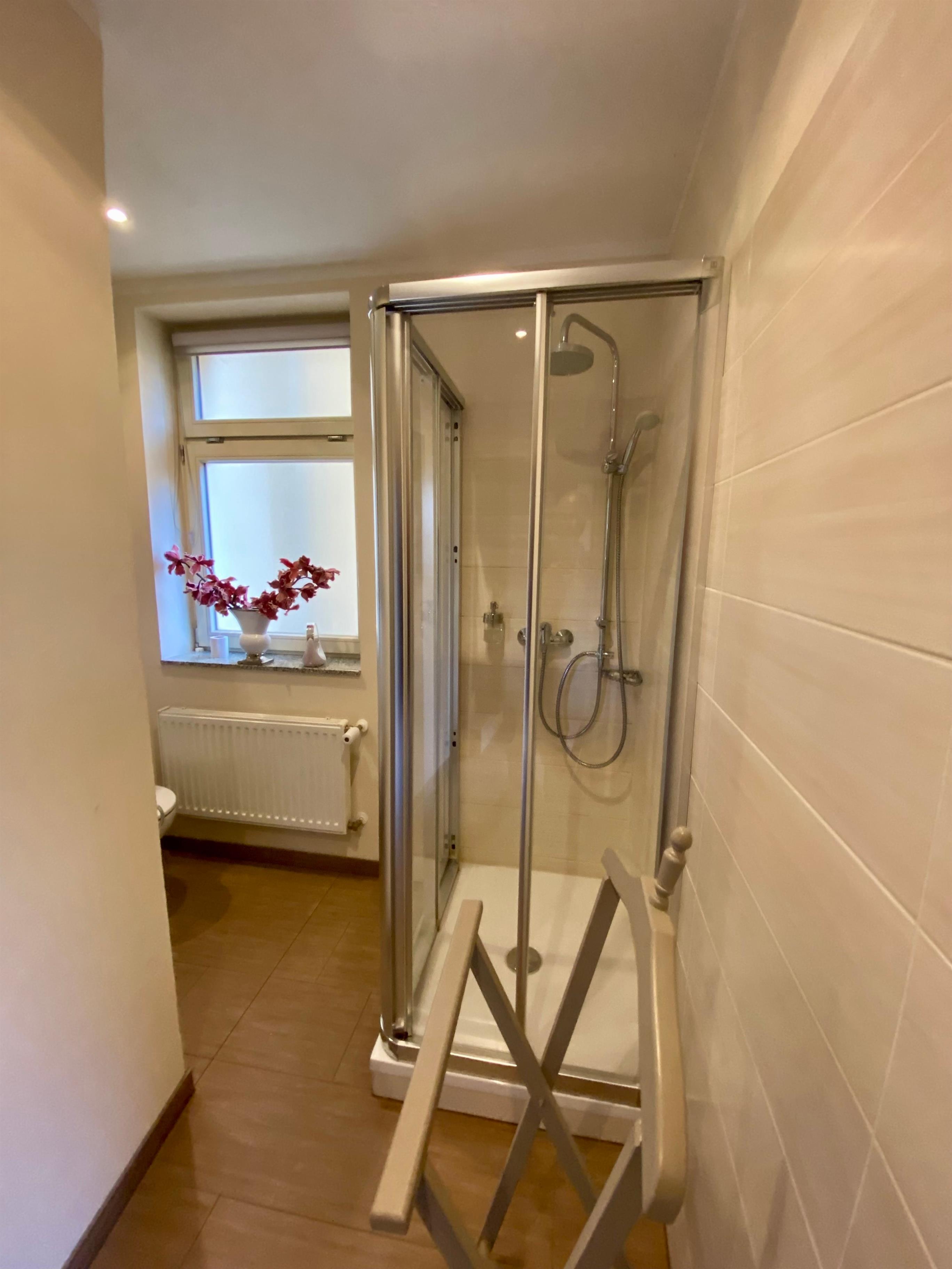 Im unteren Bereich dieses kleinen aber feinen Appartements befindet sich das Badezimmer, das funktional und modern gestaltet ist. Hier können sich die Gäste nach einem ereignisreichen Tag entspannen. Die Einrichtung ist zweckmäßig und bietet alles, was man für die persönliche Pflege benötigt.