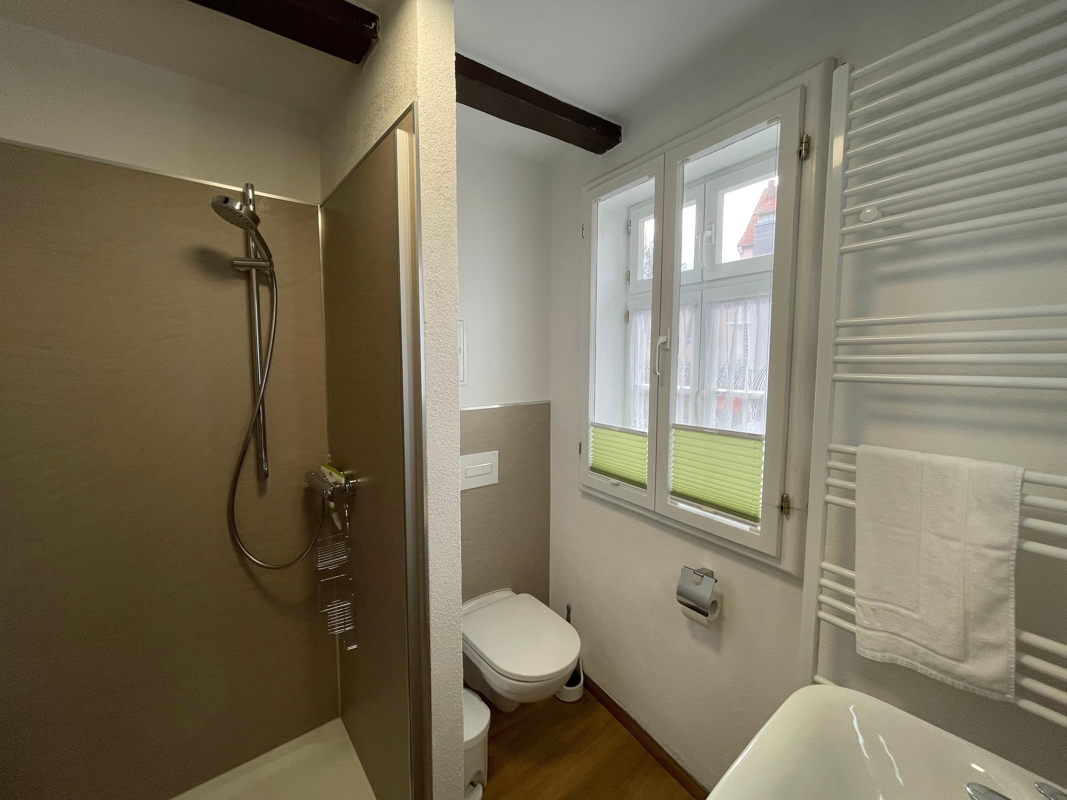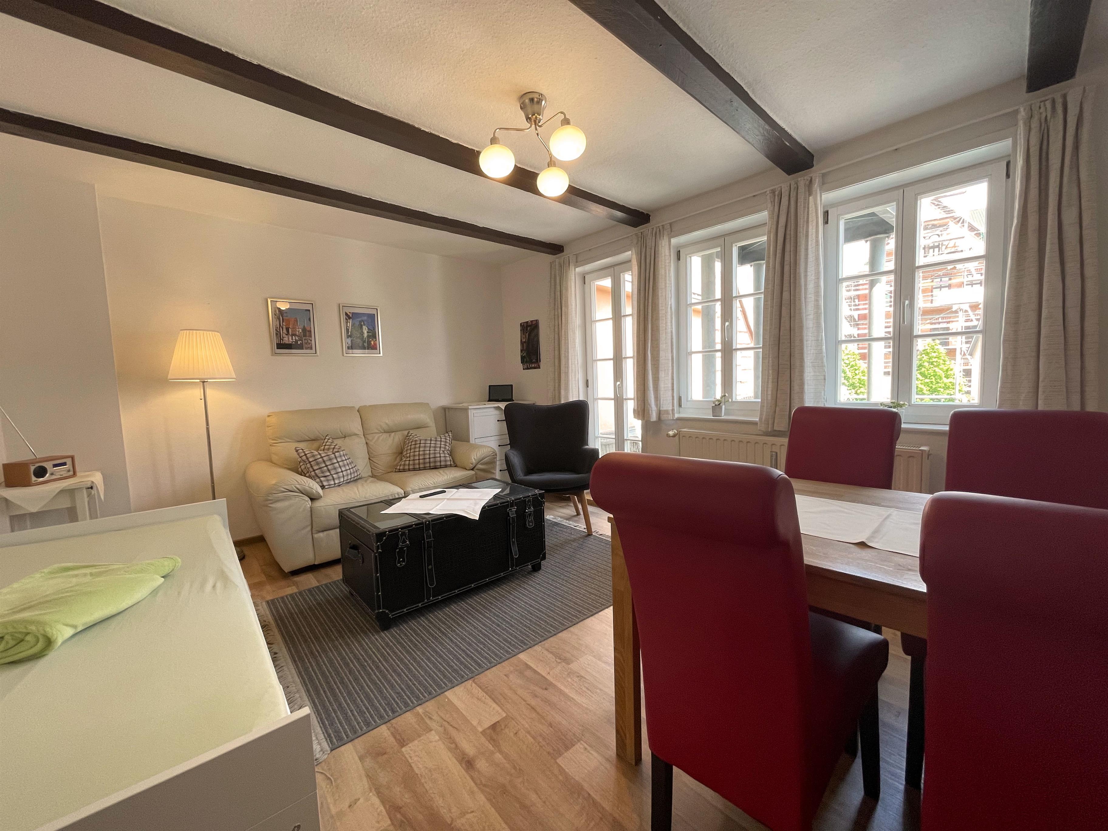 Ihr Apartment befindet im Obergeschoß eines denkmalgeschützten Hauses aus dem 15 Jhd. im Herzen der Stadt Quedlinburg. Der Markplatz, ein Supermarkt und verschiedene Bäcker erreichen in ca. 1-2 Gehminuten. Das Apartment bietet Platz für 3 Personen da sich im Wohnzimmer neben Sessel und Sofa ein richtiges Tagesbett mit Matratze befindet. Weiterhin gehört eine große Dachterrasse zum Apartment. Die Küchenausstattung mit Spülmaschine, Kaffeemaschine, Wasserkocher, Ceranfeld mit Backofen und Kühlschrank mit Gefrierfach lässt fast keine Wünsche offen. Einen Parkplatz können Sie für 5,- Euro am Tag hinzubuchen.