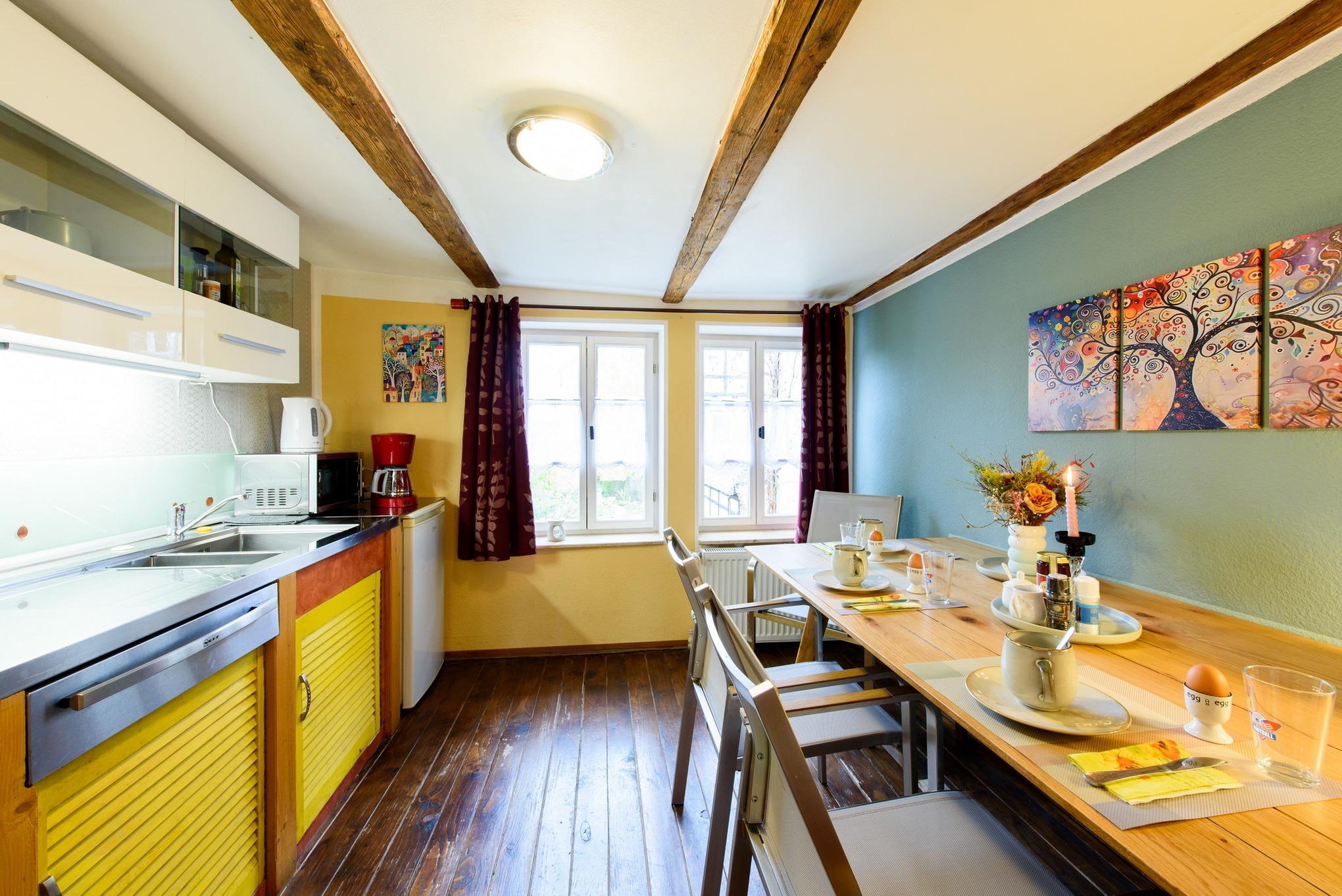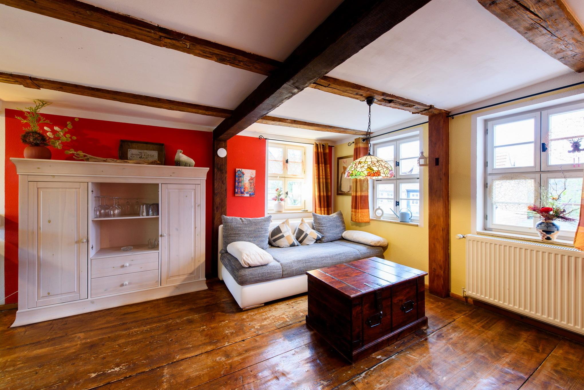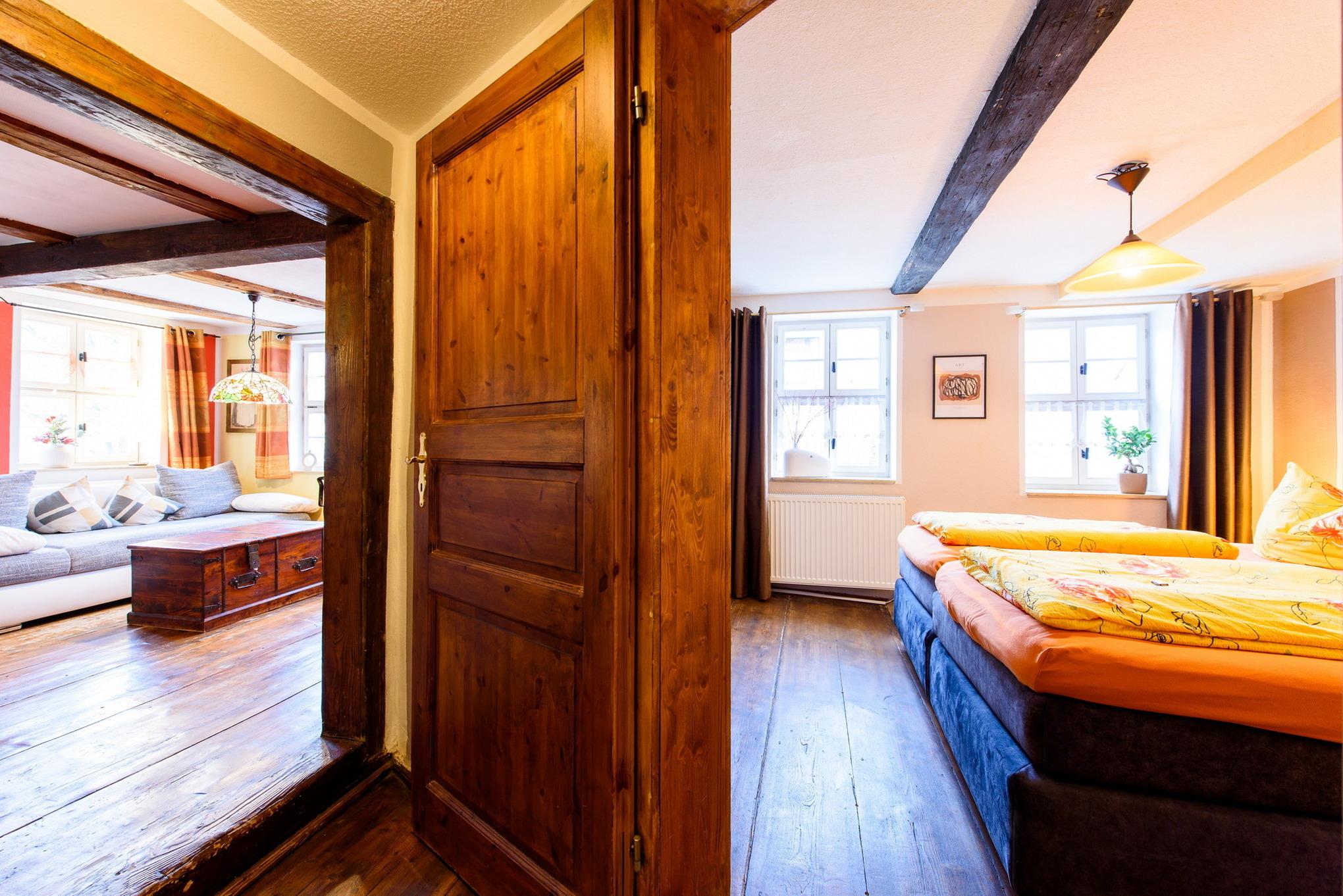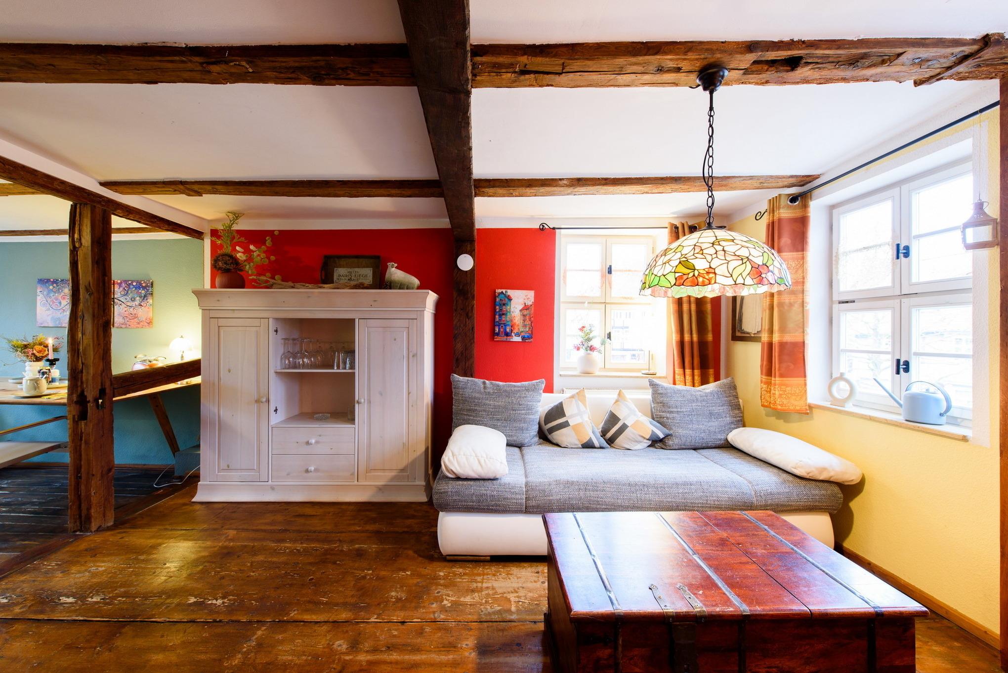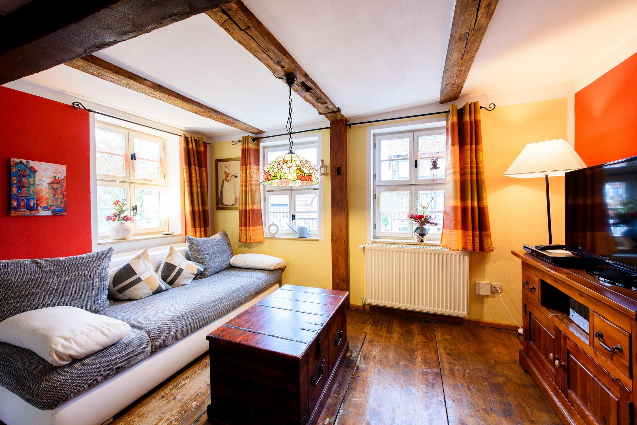 Es erwarten Sie eine Wohnungen, die entsprechend geprägt ist vom Ambiente der alten Zeit und dennoch allen Komfort unserer Neuzeit bieten. All unsere Zimmer strahlen eine farbenfrohe Freundlichkeit aus, die nicht vergessen lässt, dass man sich im Urlaub befindet. Wir wollen Ihnen nicht nur eine Herberge bieten, um unsere 1000-jährige Fachwerkstadt kennen zu lernen, sondern auch ein wohliges Gefühl an eine besondere und interessante Unterkunft vermitteln.