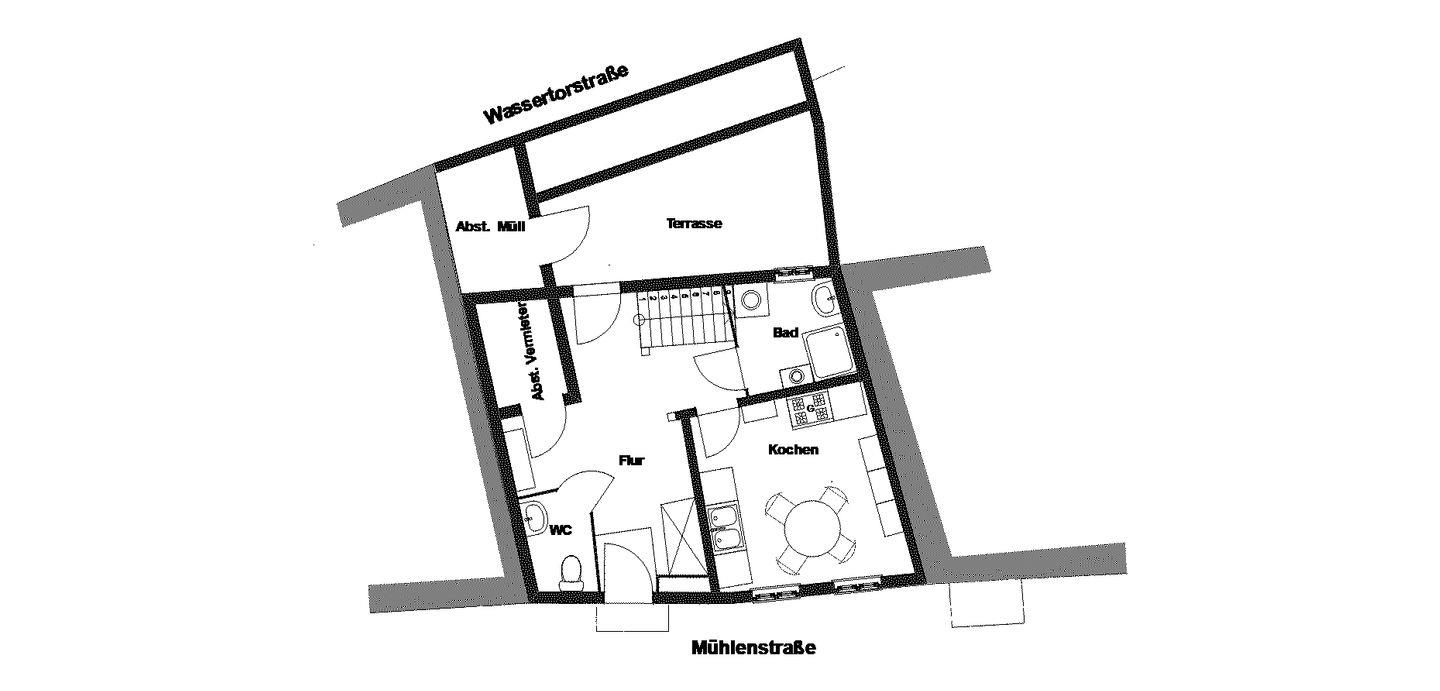 Es ist ein altes Fachwerkhaus über zwei Etagen mit urigem Schnitt und kleinem Hof für max. 5 Personen.