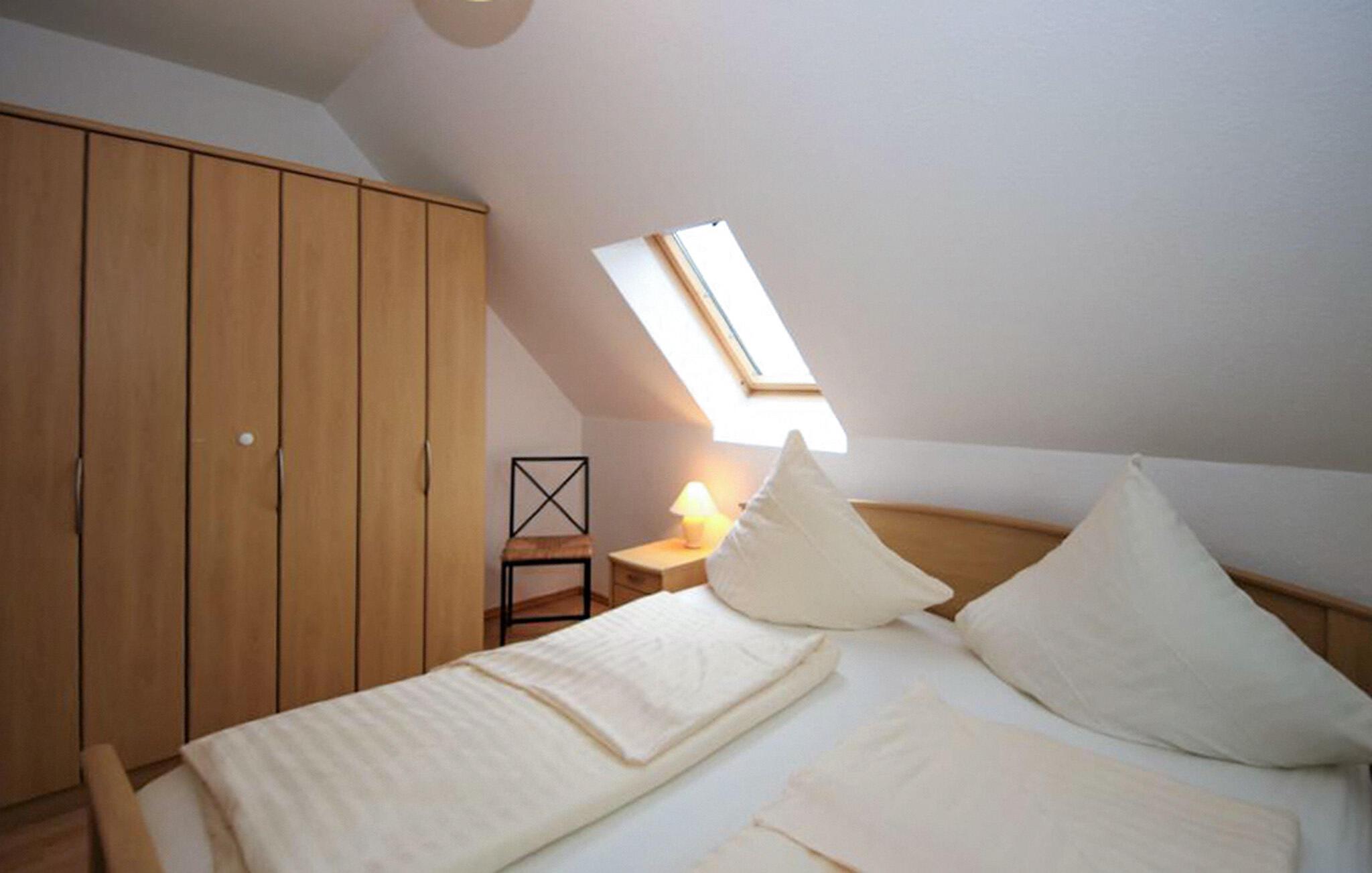 Tilbring afslappende dage i dette hyggelige feriehus med pejs og udsigt over Müritz-landskabet. Nyd en afslappende ferie i jeres feriehus, hvor en kombination af komfort, natur og afslapning venter – ideelt for par, familier eller små grupper, der ønsker at opleve Mecklenburgs sølandskab. Opholdsstuen med en behagelig sofa og en brændeovn inviterer jer til at slappe af. Se de blafrende flammer på køligere aftener og nyd den hyggelige varme. Det åbne køkken tilbyder rigelig plads til at tilberede måltider sammen og servere dem i den tilstødende spiseplads. Gå ud på terrassen og indånd den friske søluft. Sid i solen eller nyd aftenen med et glas vin, mens fuglene synger i træerne. Den lille have tilbyder et sted til fred og afslapning. En kort sti fører fra ejendommen til bredden af Müritz-søen, hvor I kan se vandet glitre og nyde den vidtstrakte horisont. Udforsk Röbel og det omkringliggende område. Tag ture langs søen, lej en båd eller oplev Müritz-søen på cykel. Besøg havnen i Röbel, Müritz termalbade eller den nærliggende by Waren med dens maritime præg.