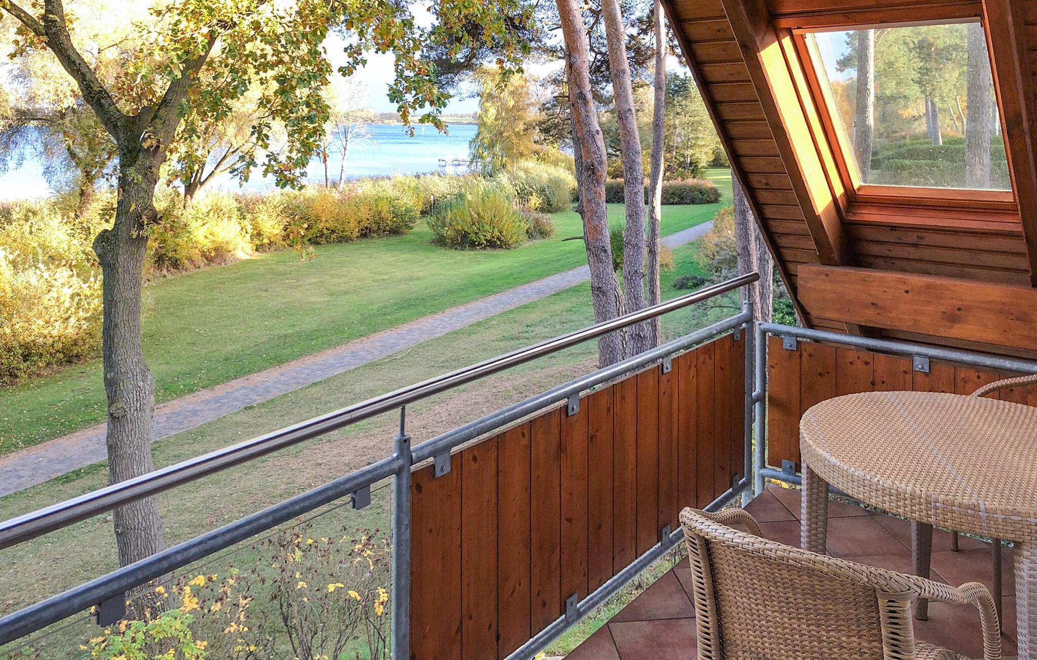 På altanen kan I nyde den fredelige atmosfære og udsigten over søen – om morgenen med en friskbrygget kaffe eller om aftenen med et glas vin.