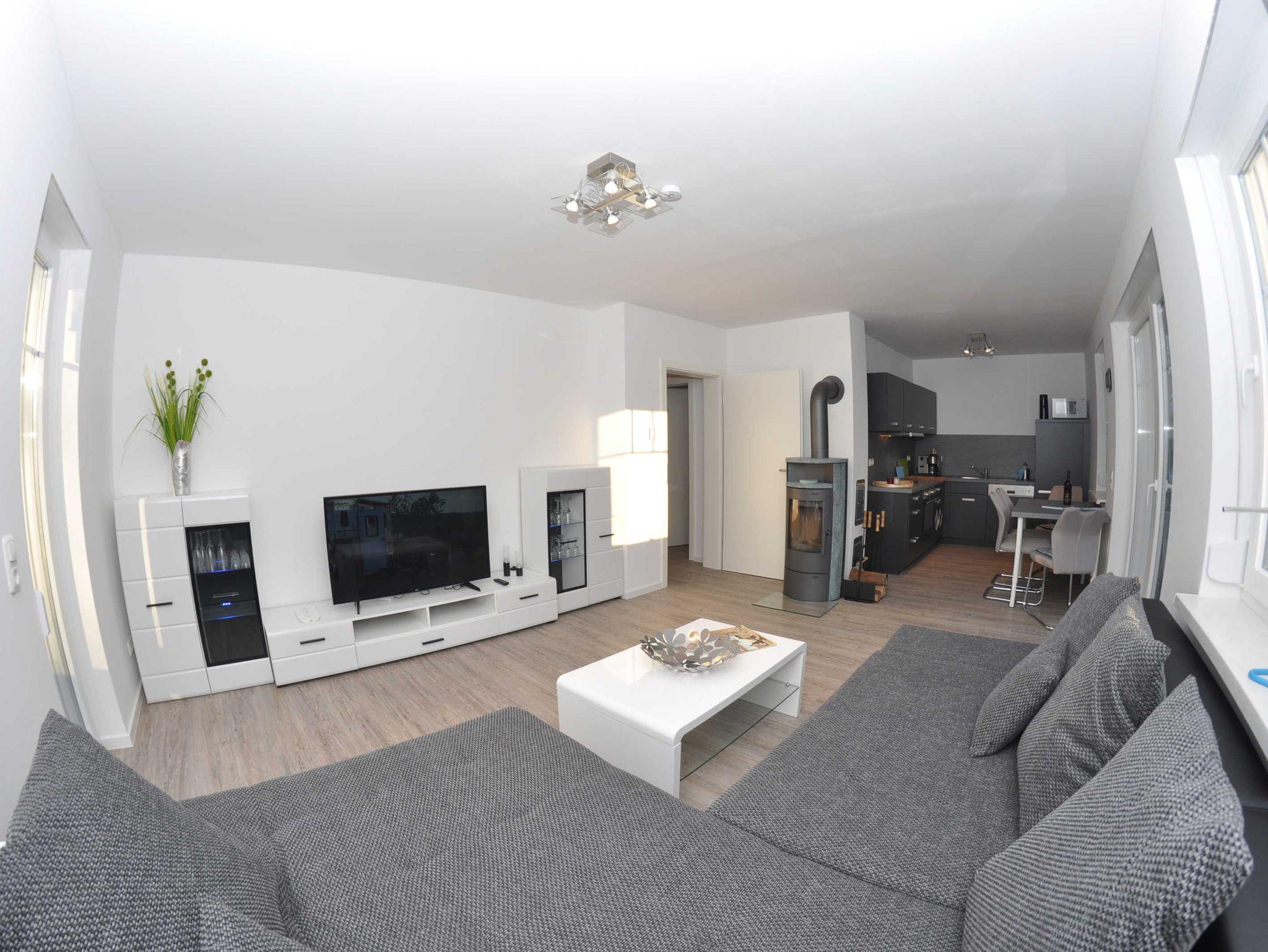 Eine Aufbettungsmöglichkeit besteht im Wohnzimmer. Die Couch verfügt über eine Schlaffunktion. Darüber hinaus verfügt das EG-Appartement über 1 Bad mit Dusche und Wanne sowie einer Sauna und Kamin, kostenfreien WLAN, Wohn- /Essbereich mit vollwertiger Einbauküche mit Spülmaschine, Kühl-/Gefrierfunktion, Ceranherd und Mikrowelle stehen ebenfalls zur Verfügung.