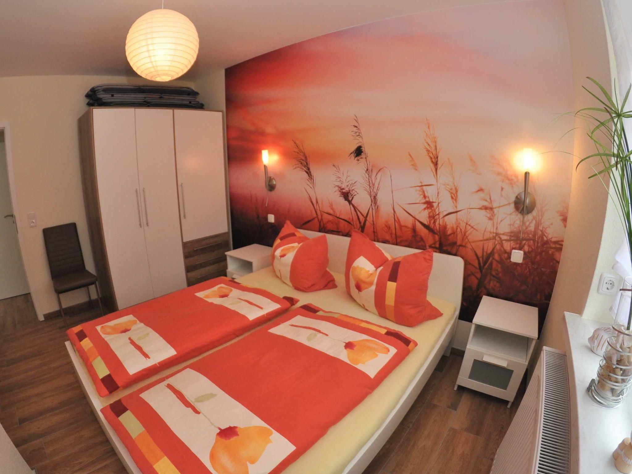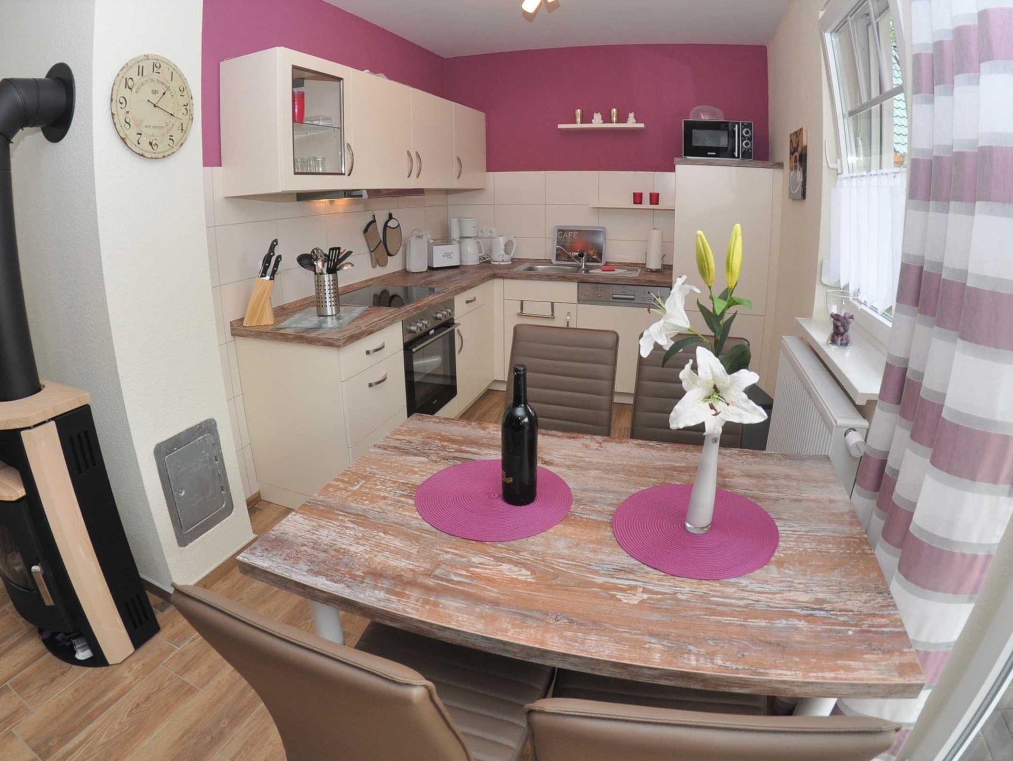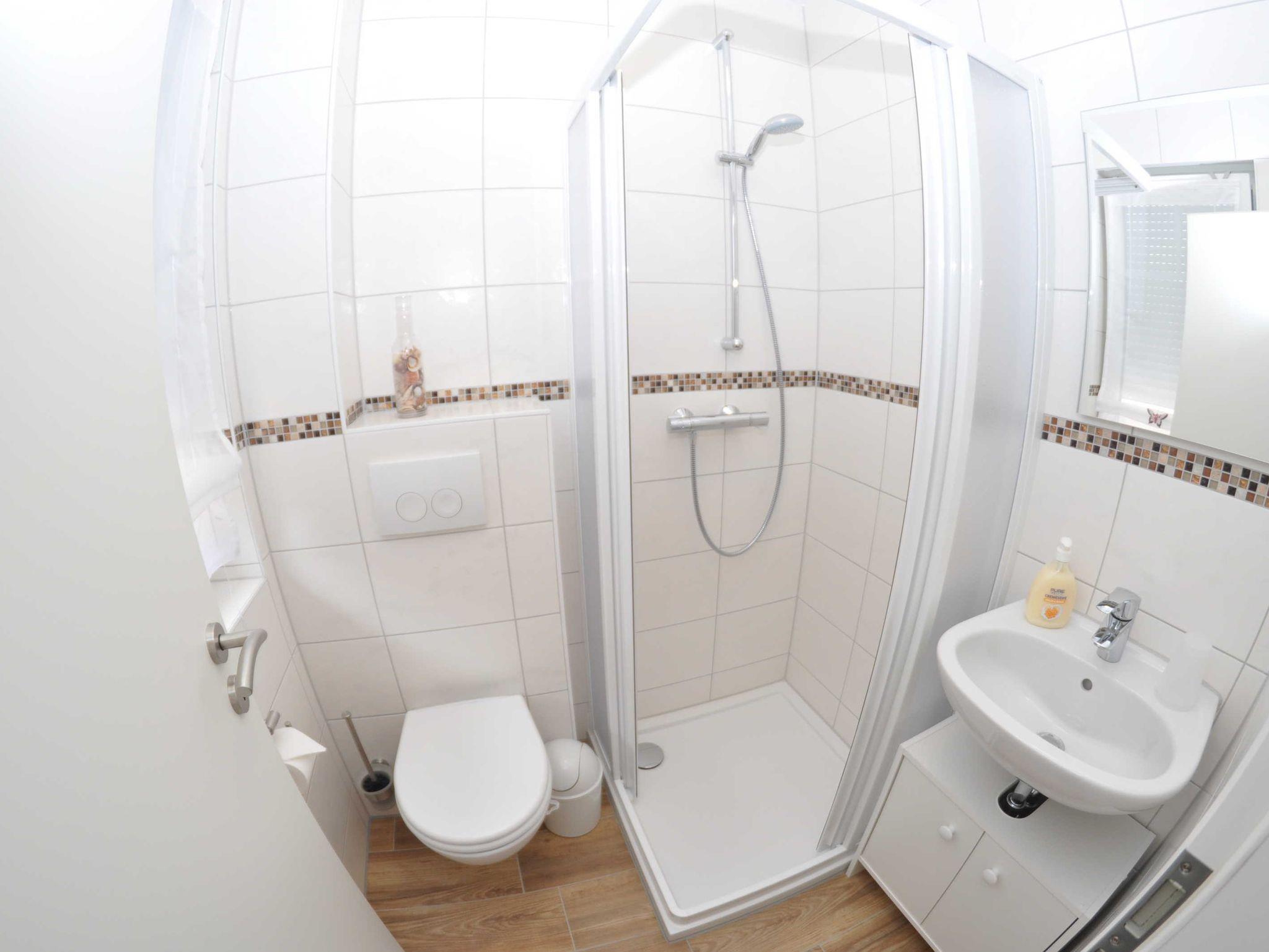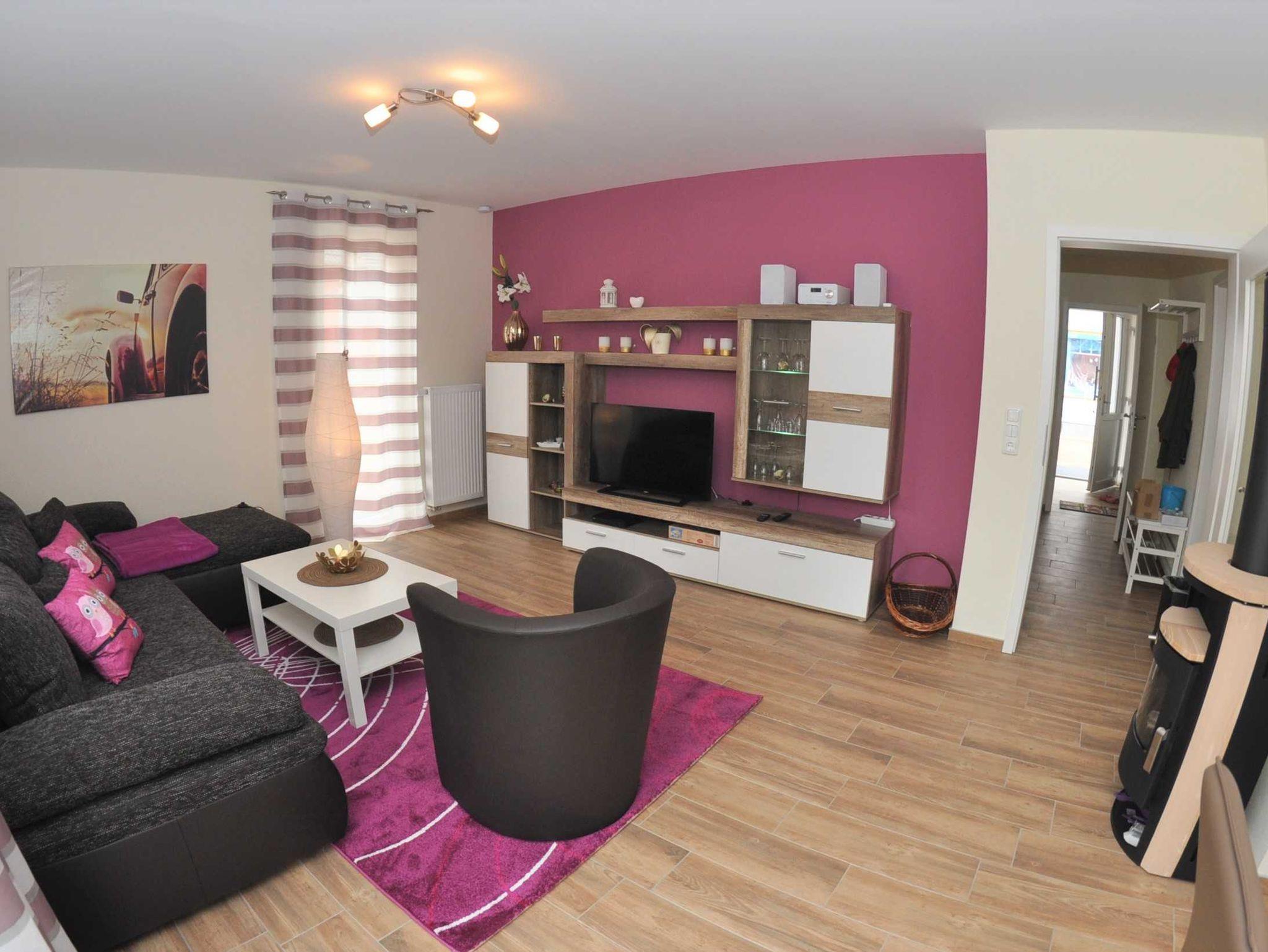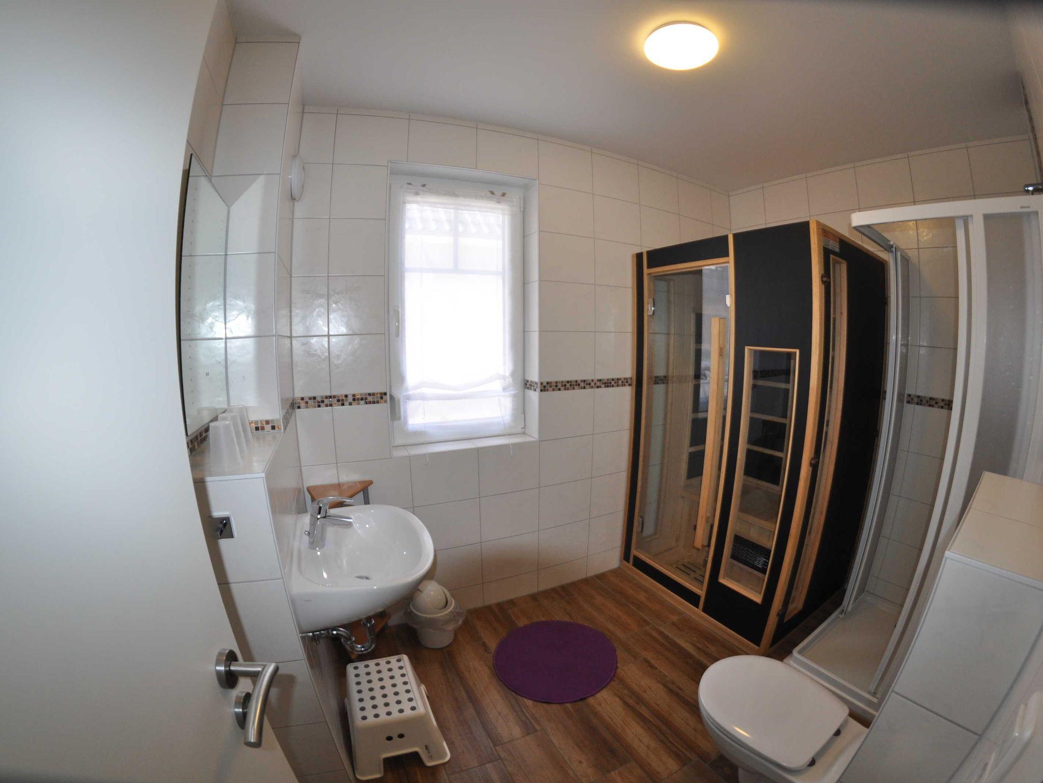 Eine Aufbettungsmöglichkeit besteht im Wohnzimmer. Die Couch verfügt über eine Schlaffunktion. Darüber hinaus verfügt das EG-Appartement im Hauptbad über Hauptbad über eine Dusche eine Infrarot-Sauna und ein 2 Duschbad mit WC, Kamin, kostenfreien WLAN, Wohn- /Essbereich mit vollwertiger Einbauküche mit Spülmaschine, Kühl-/Gefrierfunktion, Ceranherd und Mikrowelle stehen ebenfalls zur Verfügung.