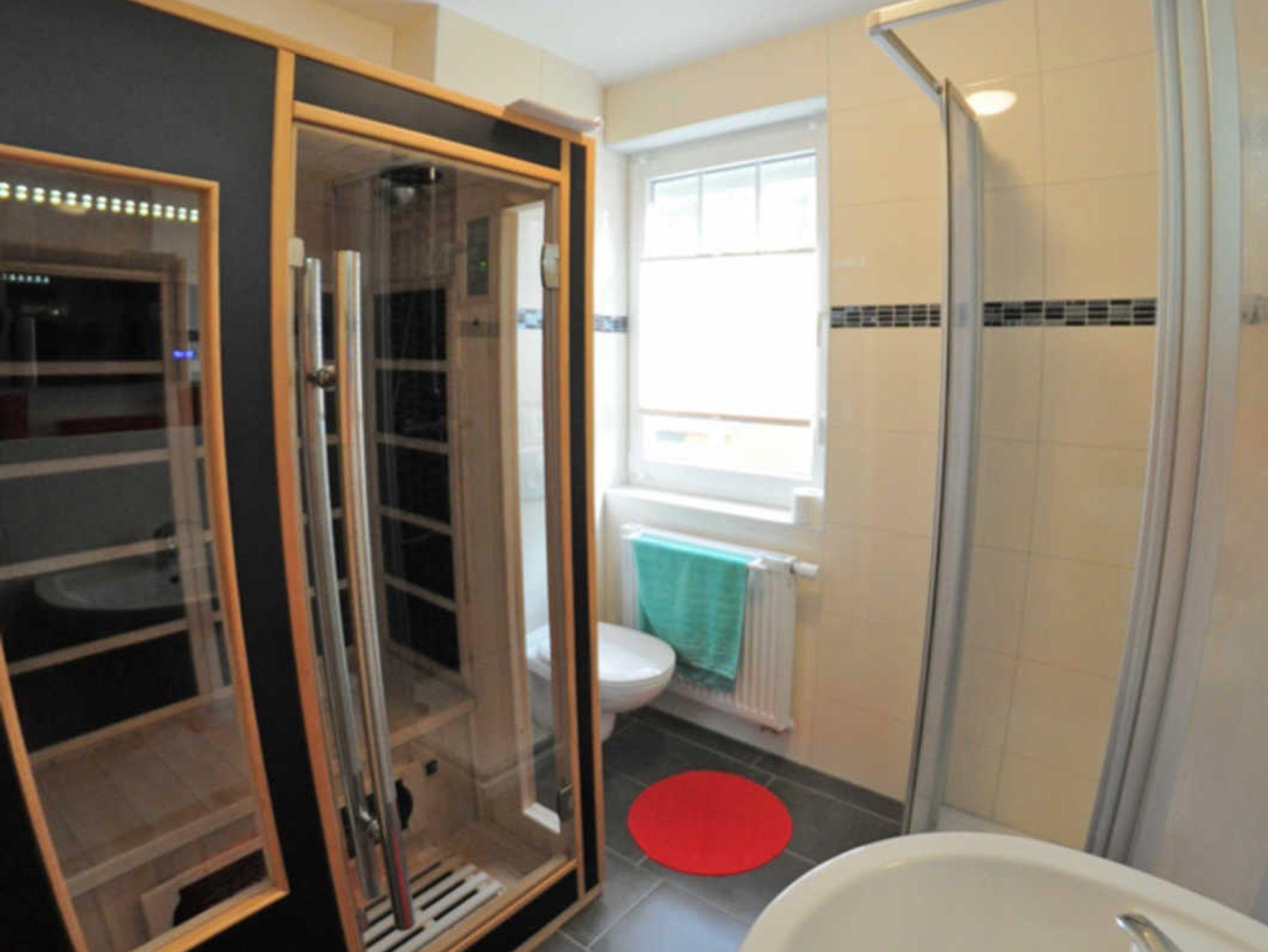 Das Obergeschoss-Appartement verfügt über eine identische Ausstattung wie das Erdgeschoss. Hier befindet sich eine Infrarot-Sauna im Duschbad. Der möbilierte Balkon verfügt über ein Elektrogrill. Eine Babyausstattung bestehend aus Kinderreisebett und Hochstuhl können gern bei Bedarf kostenfrei zur Verfügung gestellt werden.