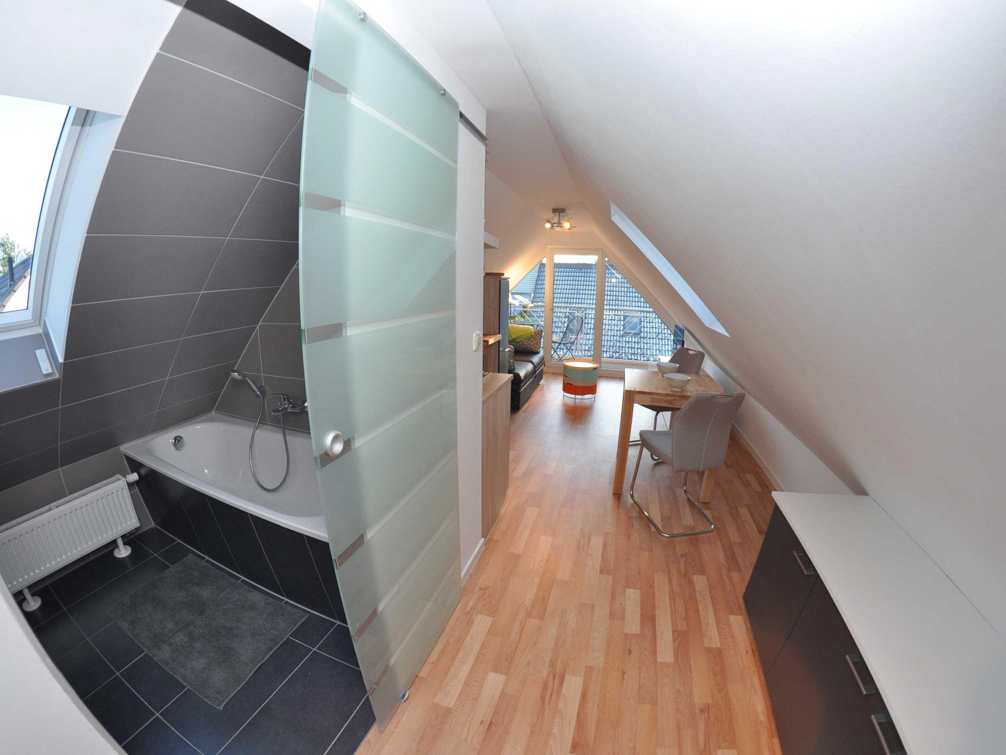Die 1 Zimmer Ferienwohnung befindet sich im Dachgeschoss und verfügt über rd. 25 qm Wohnfläche im beliebten Ferienhaus Müritzglück im Müritzsee Park in Röbel / Marienfelde.