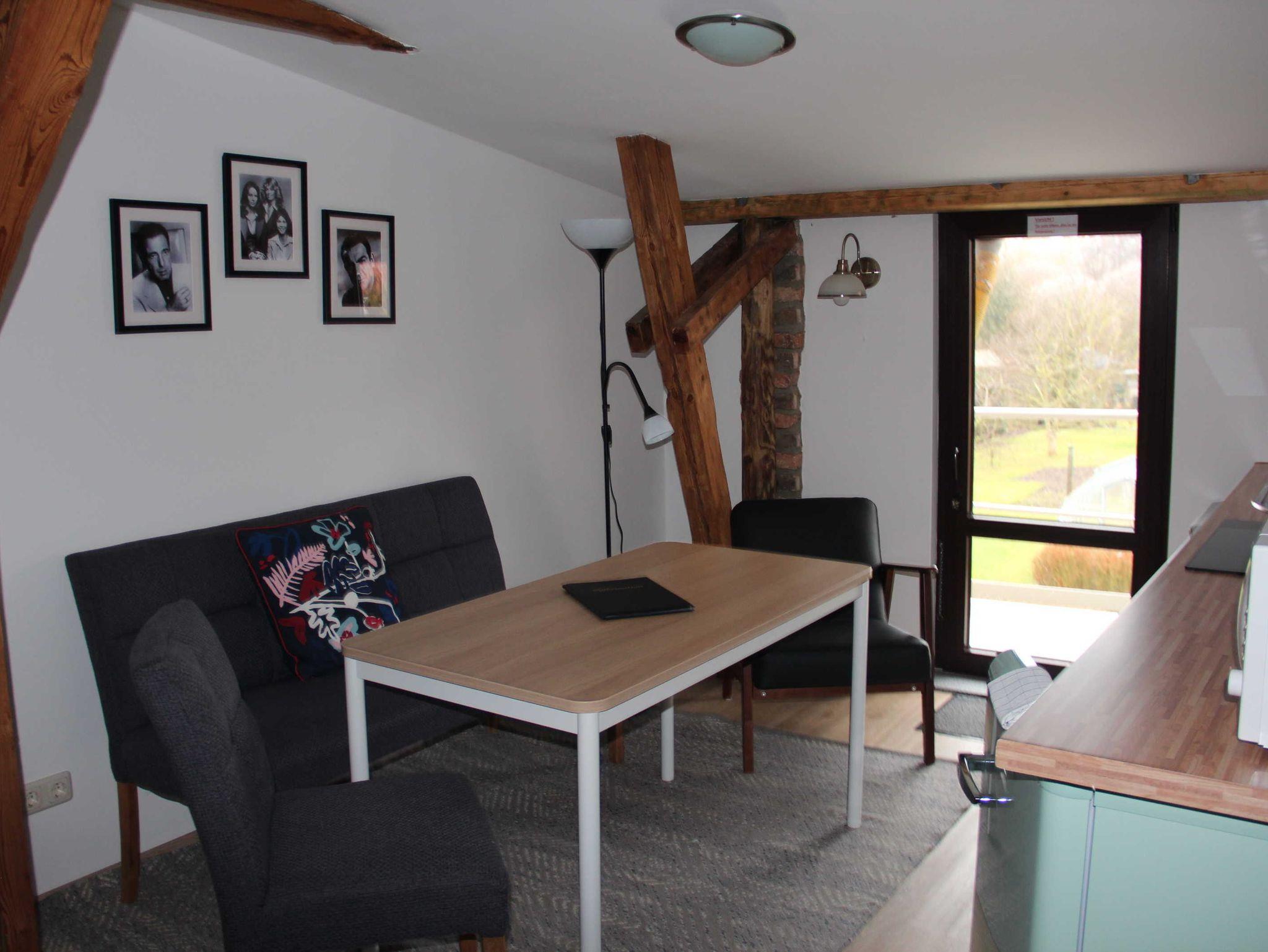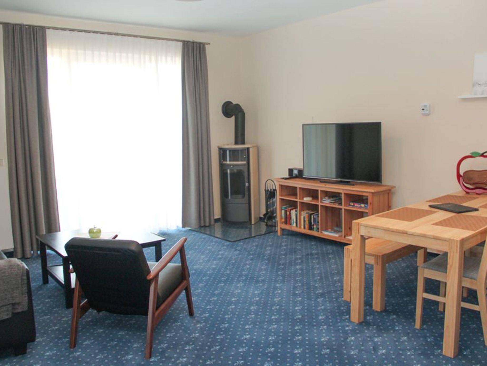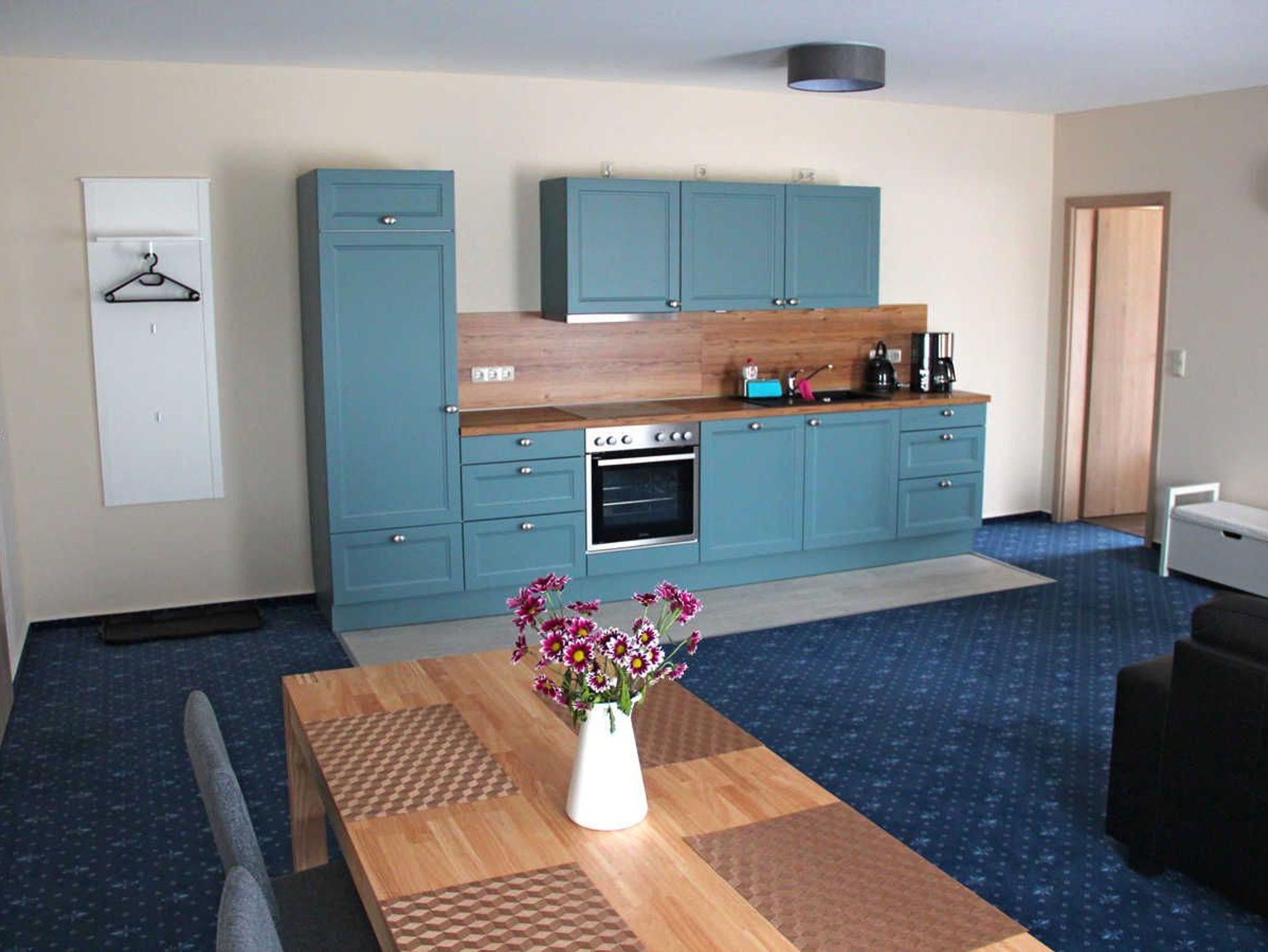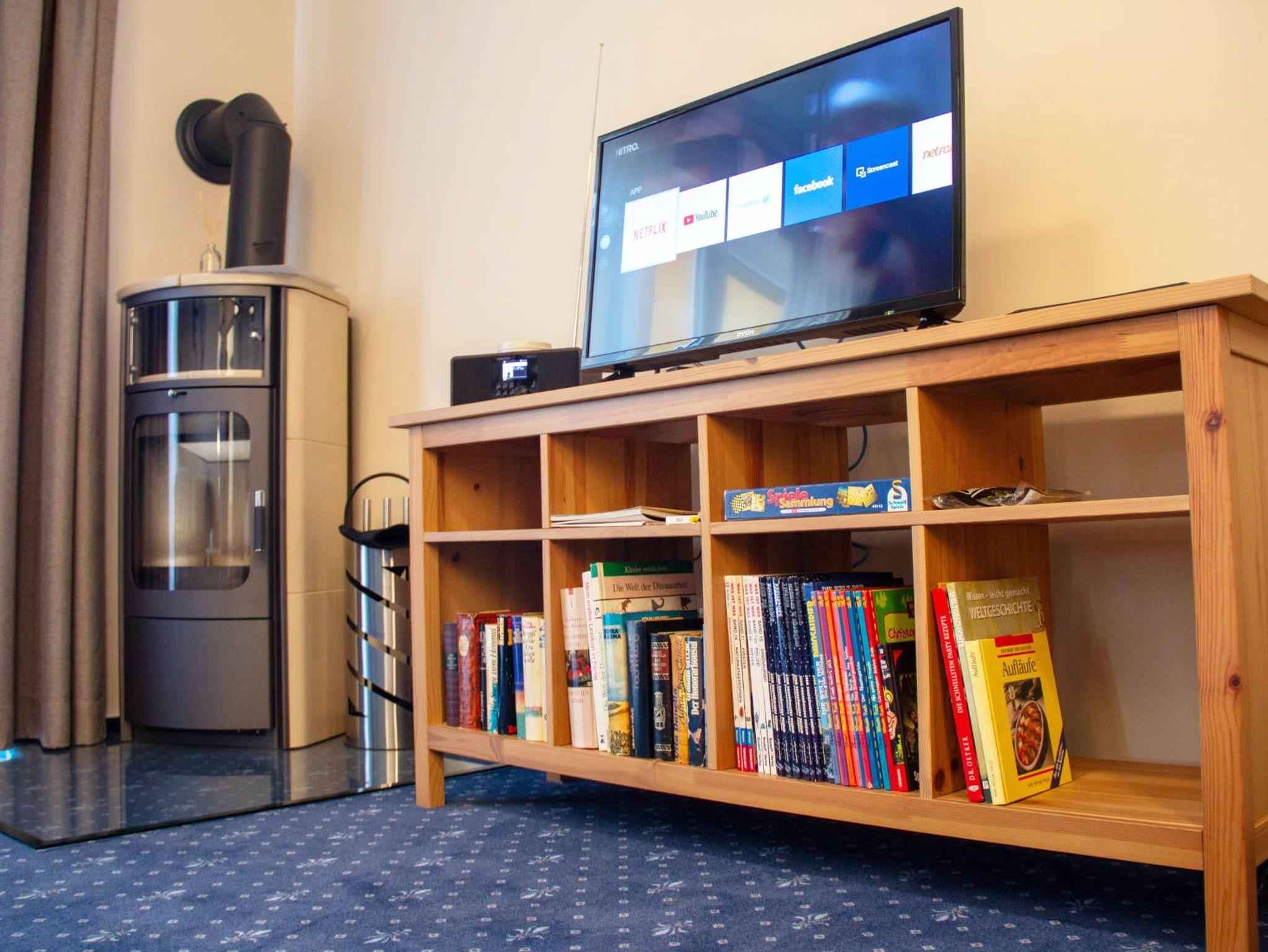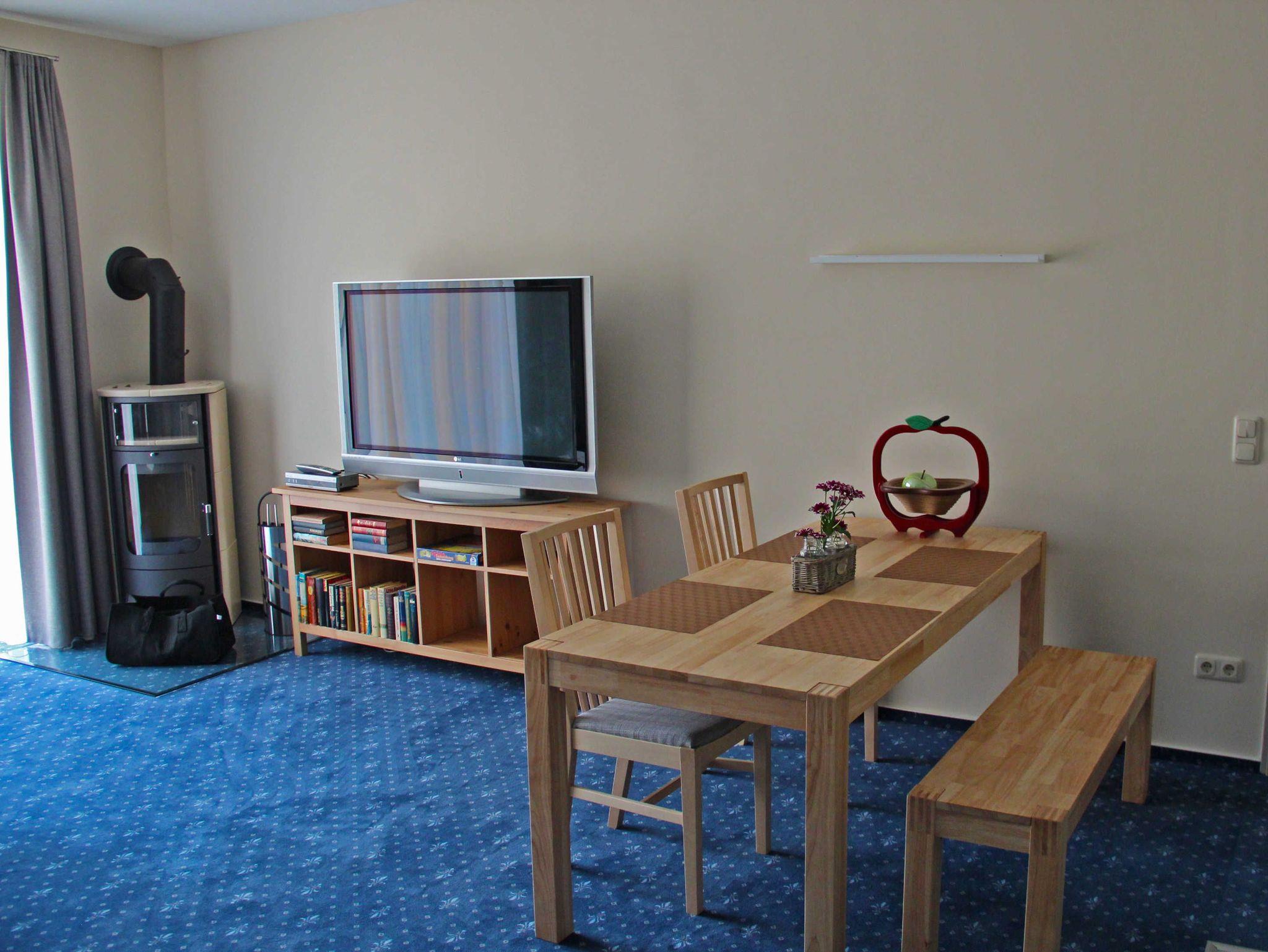 Unsere Ferienwohnung „Am Apfelbaum“ bietet viel Platz auf 68 m² für bis zu vier Personen (2 Schlafzimmer). Das im Erdgeschoss gelegene Appartement verfügt über ein großes Wellness Bad mit Badewanne und Dusche. Im Wohnzimmer befindet sich eine gemütliche Lounge Ecke mit SAT TV und Kamin sowie freies WLAN. Eine große Essecke und eine moderne Einbauküche runden die Ausstattung ab. Vom Wohnzimmer gelangt man direkt auf die große Grill & Relaxterrasse die ruhig zum Garten hin liegt. Verbringen Sie hier entspannte und laue Sommerabende mit der Familie oder Freunden.