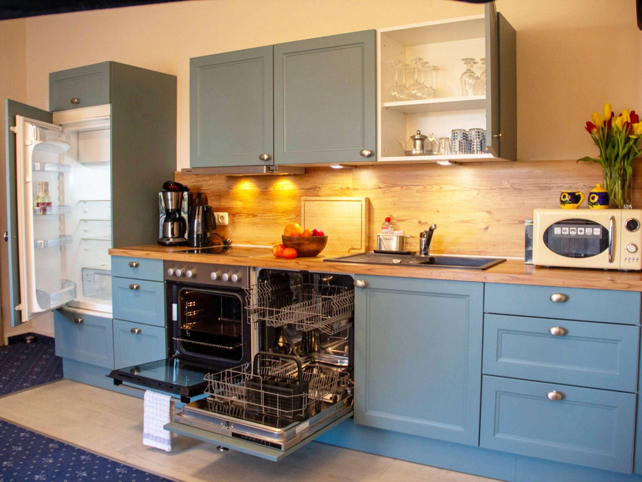 • vollausgestattete Küche (Wasserkocher, Kaffeemaschine, Mikrowelle, Toaster, Geschirrspüler, Herd, Backofen, Kühlschrank)