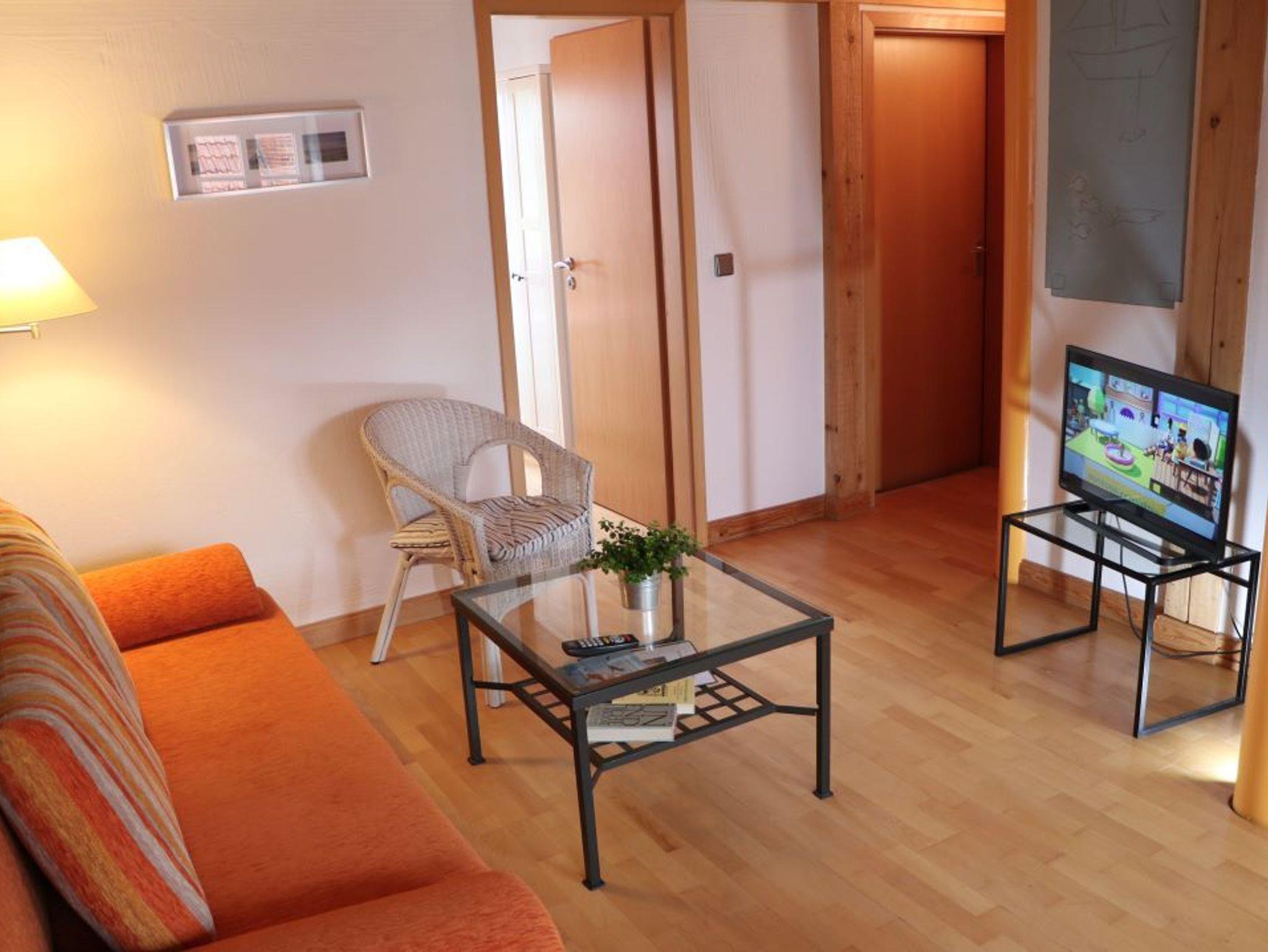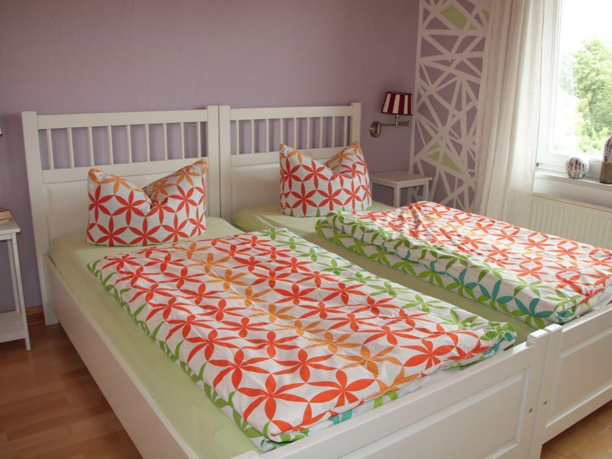 Die gemütliche 31 m² große Ferienwohnung Schwan liegt im Obergeschoss neben der Ferienwohnung Kranich. Von der Diele mit Garderobe gelangt man in den offenen Wohn-/ Essbereich mit Pantryküche, kleinem Esstisch, Sofa und SAT-TV und in das mosaikgeflieste Bad mit WC und Dusche. Vom Wohnbereich aus betritt man das Schlafzimmer mit wunderschöner Aussicht auf See und Garten. Zwei Betten können wahlweise zum Doppelbett zusammengefügt oder getrennt gestellt werden. Das Sofa mit Schlaffunktion im Wohnbereich lässt sich für eine dritte Person aufbetten.