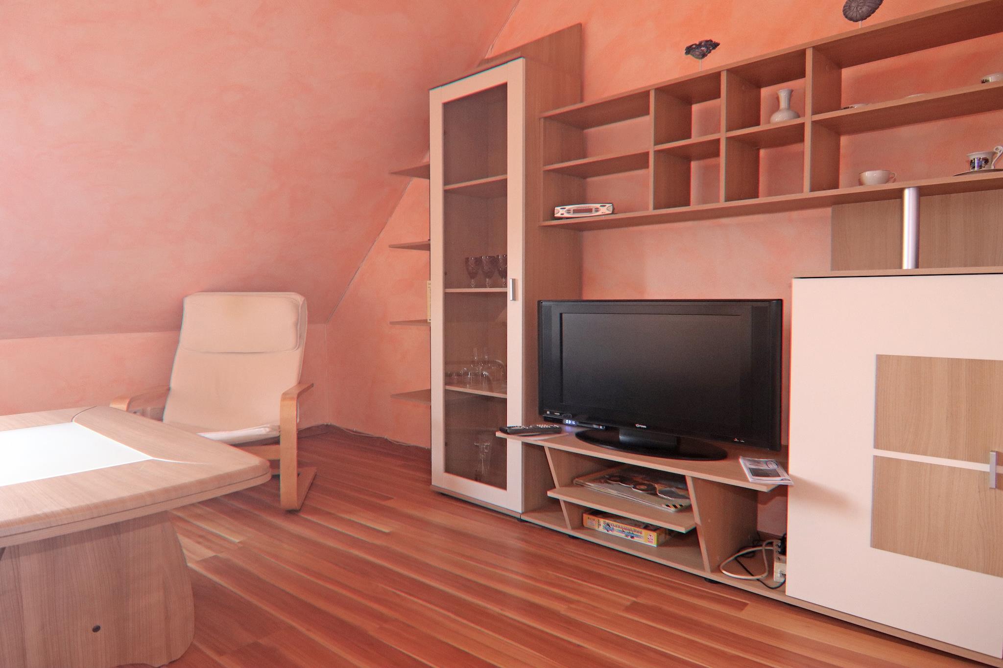 Velkommen til Röbel ved Müritz. Historisk, men komfortabelt og moderne – sådan byder dit feriehus i den lille by Röbel dig velkommen. Denne lille og charmerende ferielejlighed ligger i et kærligt renoveret bindingsværkshus i hjertet af Röbels gamle bydel, sammen med to andre ferielejligheder. Bindingsværksvinduerne og sprosserne lover et hyggeligt ophold. Den moderne og funktionelt indrettede lejlighed ligger på 2. sal. Køkkenet er udstyret med alt, hvad du behøver. Der er et badeværelse med bruser og en stue med fladskærms-tv. En komfortabel dobbeltseng er til rådighed i det separate soveværelse. Hver lejlighed har en parkeringsplads på den indhegnede grund. Haveområdet med grill og siddepladser er også til rådighed. Nyd din tid – vi byder dig varmt velkommen. En perfekt ramme for en afslappende ferie ved Tysklands største indhav. Den maleriske lille by Röbel ligger direkte på den sydlige bred af den 117 km² store Müritz-sø. Dette statsanerkendte feriested med sine kærligt restaurerede bindingsværkshuse og idylliske byhavn betragtes som et af de smukkeste i Mecklenburgs sødistrikt. Højdepunkter inkluderet: Alle forbrugsbaserede energiomkostninger Parkeringsplads Aktiviteter i nærheden: Din ferieregion tilbyder ikke kun mange maleriske landsbyer og små byer, men også et væld af vandsportsmuligheder såsom sejlads, surfing, roning, fiskeri og imponerende udflugtsbådsturer. Eller cykl blot gennem den skov- og sørige region i Mecklenburgs sødistrikt, og lad gamle træbevoksede alléer bag dig, eller observer havørne, fiskeørne, bævere og endda iriserende isfugle. Du bør altid have en kikkert med dig.