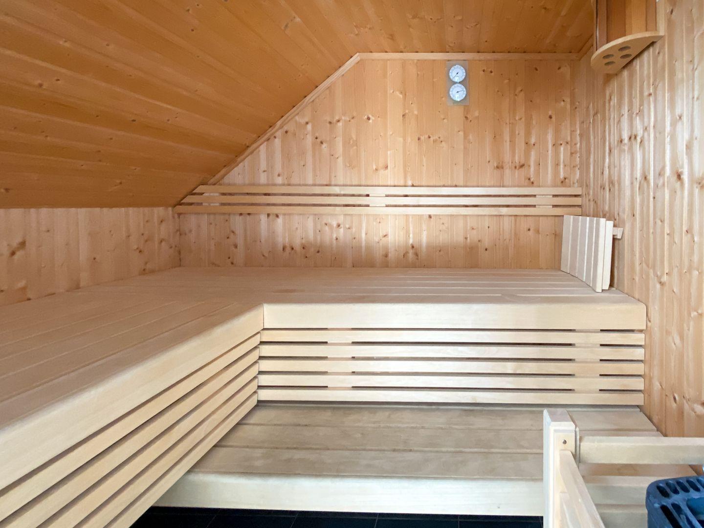Im Obergeschoss befinden sich drei Schlafzimmer, die jeweils mit komfortablen Doppelbetten ausgestattet sind. Ein weiteres Highlight ist das Duschbad mit angrenzender Sauna, das zu einem privaten SPA-Erlebnis einlädt.