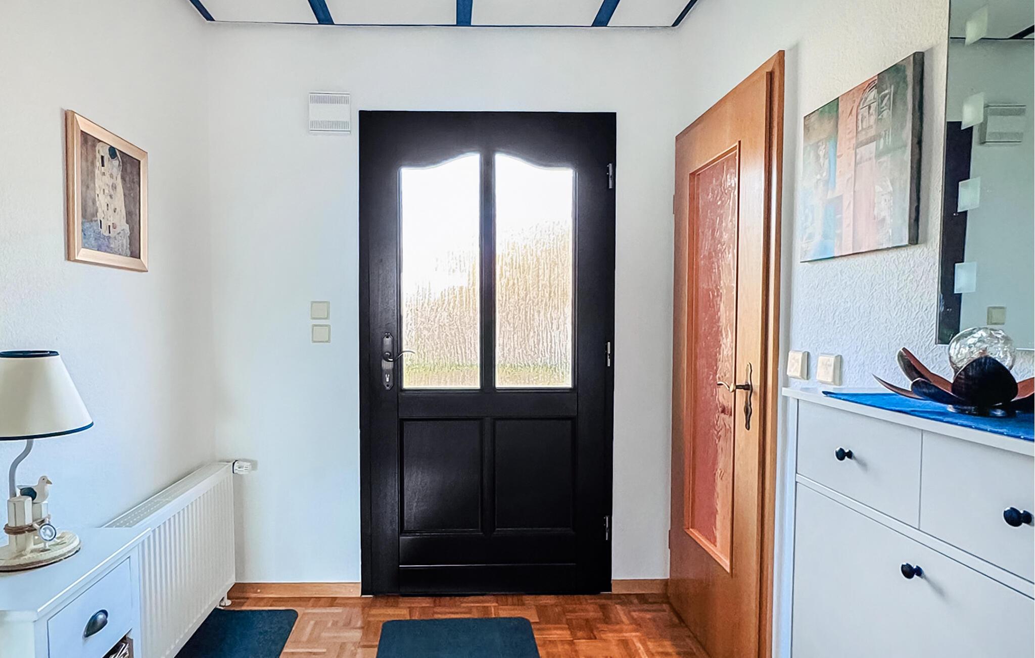 Roligt men tæt på centrum i et lille villakvarter ligger sommerhuset på en særejendom på ca 630 kvadratmeter; et komplet dobbelthus; for op til 6 voksne og 1 barn. Et supermarked, den charmerende gamle bydel med restauranter, caféer og andre indkøbsmuligheder er inden for gåafstand. "Große Wünnow", en dødvande af Müritz og Müritz-cykelstien er kun få minutters gang væk, og en smuk badeanstalt på Müritz ligger knap 3,5 km væk. Det ikke-ryger hus, der er centralt opvarmet og har insektnet på vinduerne, strækker sig over to plan. På mezzaninen (indgang bagerst) er det ca.115 kvm store opholdsrum med stue (polstrede møbler, stort spisebord, fladskærms-tv, dvd-afspiller, radio), separat køkken (el-komfur/ovn, køleskab- fryser, opvaskemaskine, mikroovn, miniovn, lille spiseplads, diverse små køkkenmaskiner, radio/cd-afspiller), to soveværelser (1x dobbeltseng, 1 x lille dobbeltseng 1,40 m bred), opholdsstue (polstret liggestol, opholdsområde). , fladskærms-tv ), et badeværelse (bruser, toilet, hårtørrer) og entre. I kælderen er der endnu et soveværelse (lille dobbeltseng 1,40 m, opholdsområde) og et andet badeværelse (bruser, toilet), som er tilgængelige for 5 PERSONER eller mere. Gæsterne har også adgang til to parkeringspladser, en møbleret terrasse med grill, en børneseng, låsbar cykelopbevaring efter anmodning og gratis trådløs internetadgang. Den samlede pris inkluderer slutrengøring, sengelinned og håndklæder samt vand- og energiforbrug. Betales på stedet: turistskat. Kæledyr er ikke tilladt i denne ejendom. Den lille by Röbel/Müritz, et anerkendt feriested, ligger direkte på den vestlige bred af Müritz og er indlejret i et let kuperet landskab. Den er præget af den charmerende gamle bydel med de mange restaurerede bindingsværkshuse i de rolige ringgyder, de to imponerende tidliggotiske kirketårne og den smukke havnepromenade ved byens havn. Der finder du anløbsbroer til passagerbåde, restauranter, caféer og en moderne vandreplads. De mange bådehuse, hvoraf nogle er dækket af siv, giver Röbel en meget individuel, maritim flair. Du kan svømme i enten den udendørs pool eller sjov- og sportspoolen i Müritztherme. Den populære Müritz-cykelsti mod Müritz National Park fører direkte gennem Röbel, med Müritz National Park-billet kan du også bruge passagerbådturen. Ikke langt fra Röbel, i landsbyen Bollewick, er der den største stenlade i Tyskland, hvor mange kulturelle begivenheder og regionale produkter kan findes. Der er cirka 10 km til motorvej A19.