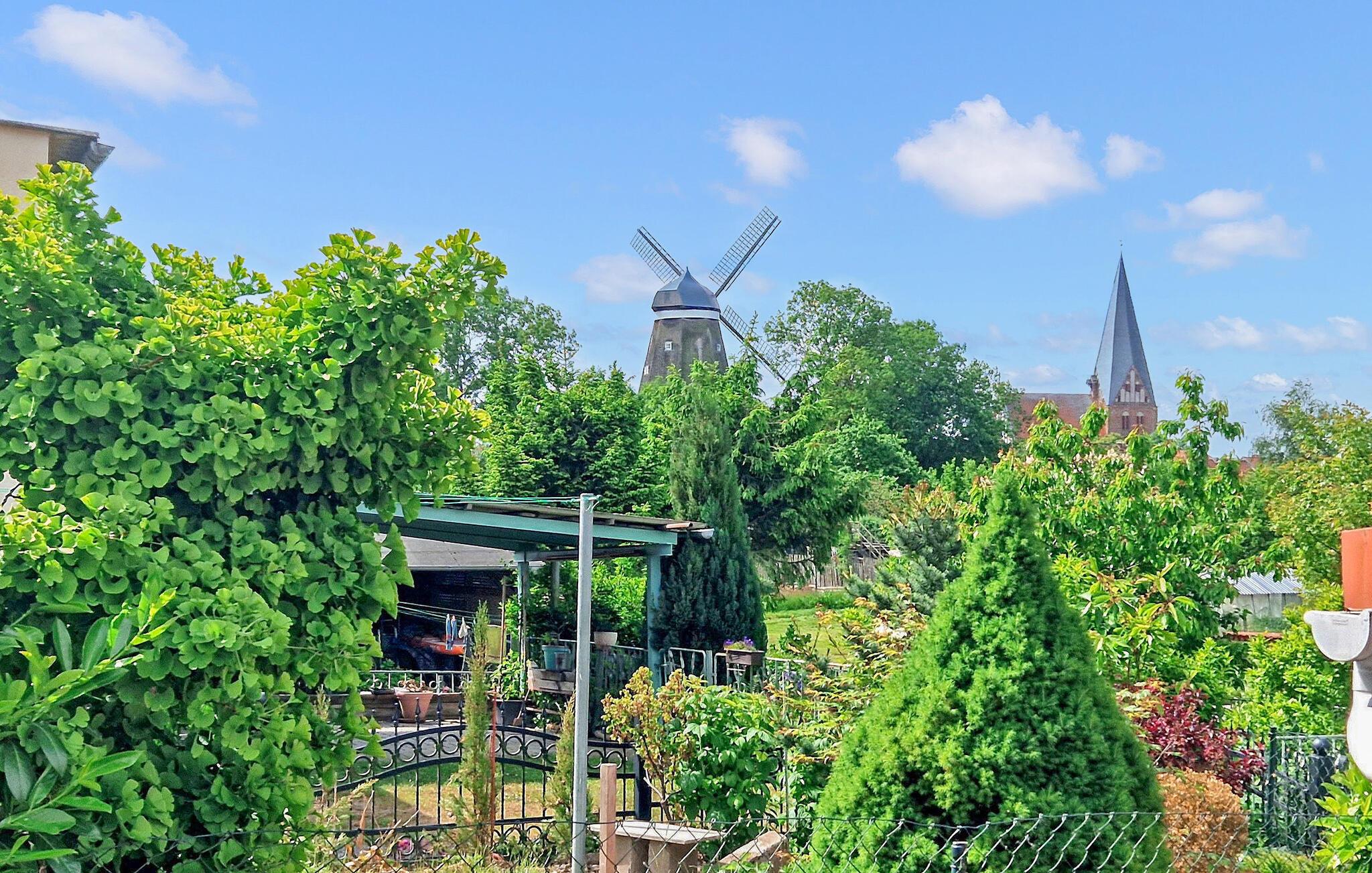 Roligt, i en lille sidegade midt i den historiske gamle bydel, kun få skridt fra byens havn, ligger den separate ferielejlighed for op til 4 personer i stueetagen af huset bygget i 1886 og sidst renoveret i 2019. En restaurant, en isbar, supermarkeder, gæstehuset og den imponerende Mariakirke med en fantastisk udsigt over Müritz ligger i umiddelbar nærhed. Den cirka 70 kvm, centralt opvarmede ikke-ryger lejlighed er tilgængelig via en fælles gang og har en stor stue (polstrede møbler, fladskærms-tv, spisebord), to soveværelser (1 x dobbeltseng, 1 x to enkeltsenge) , et separat køkken med udgang til den indre gårdhave (elkomfur med ovn, køleskab med fryser mulighed, opvaskemaskine, mikroovn, kaffemaskine, brødrister, elkedel, spisebar) og et badeværelse (bruser, toilet, hårtørrer). Den helt indhegnede ejendom har også et lille haveområde med en bålfad og udsigt til den restaurerede hollandske mølle, en møbleret terrasse med liggestole og en grill, cykelopbevaring og gratis Wi-Fi Offentlig parkering (nogle gange mod et gebyr) pladser er til rådighed i ca. 150 m til 900 m afstand, kan du stoppe kort foran huset for af- og pålæsning. Den samlede pris inkluderer slutrengøring, sengelinned, håndklæder, el og vand. Betales på stedet: spaskat. Kæledyr er tilladt at færdes i denne ejendom (maks. højde på 40 cm). Den lille by Röbel/Müritz, et anerkendt feriested, ligger direkte på den vestlige bred af Müritz og er indlejret i et let kuperet landskab. Den er præget af den charmerende gamle bydel med de mange restaurerede bindingsværkshuse i de rolige ringgyder, de to imponerende tidliggotiske kirketårne og den smukke havnepromenade ved byens havn. Der finder du anløbsbroer til passagerbåde, restauranter, caféer og en moderne vandreplads. De mange bådehuse, hvoraf nogle er beklædt med siv, giver Röbel et meget individuelt, maritimt præg.Du kan bade i enten den udendørs pool eller sjov- og sportsbassinet i Müritztherme. Den populære Müritz-cykelsti mod Müritz National Park fører direkte gennem Röbel, med Müritz National Park-billet kan du også bruge passagerbådturen. Ikke langt fra Röbel, i landsbyen Bollewick, er der den største stenlade i Tyskland, hvor mange kulturelle begivenheder og regionale produkter kan findes. Der er ca. 10 km til motorvej A19."