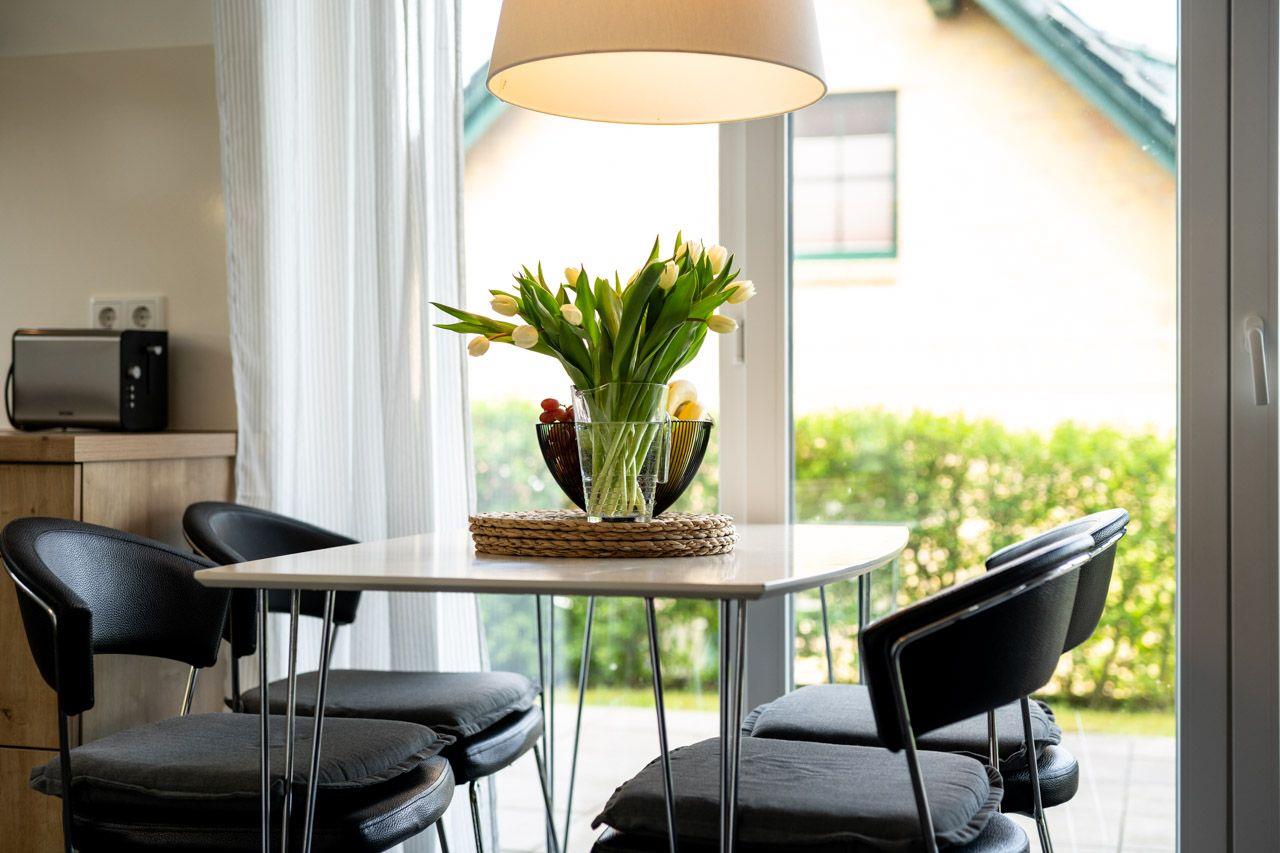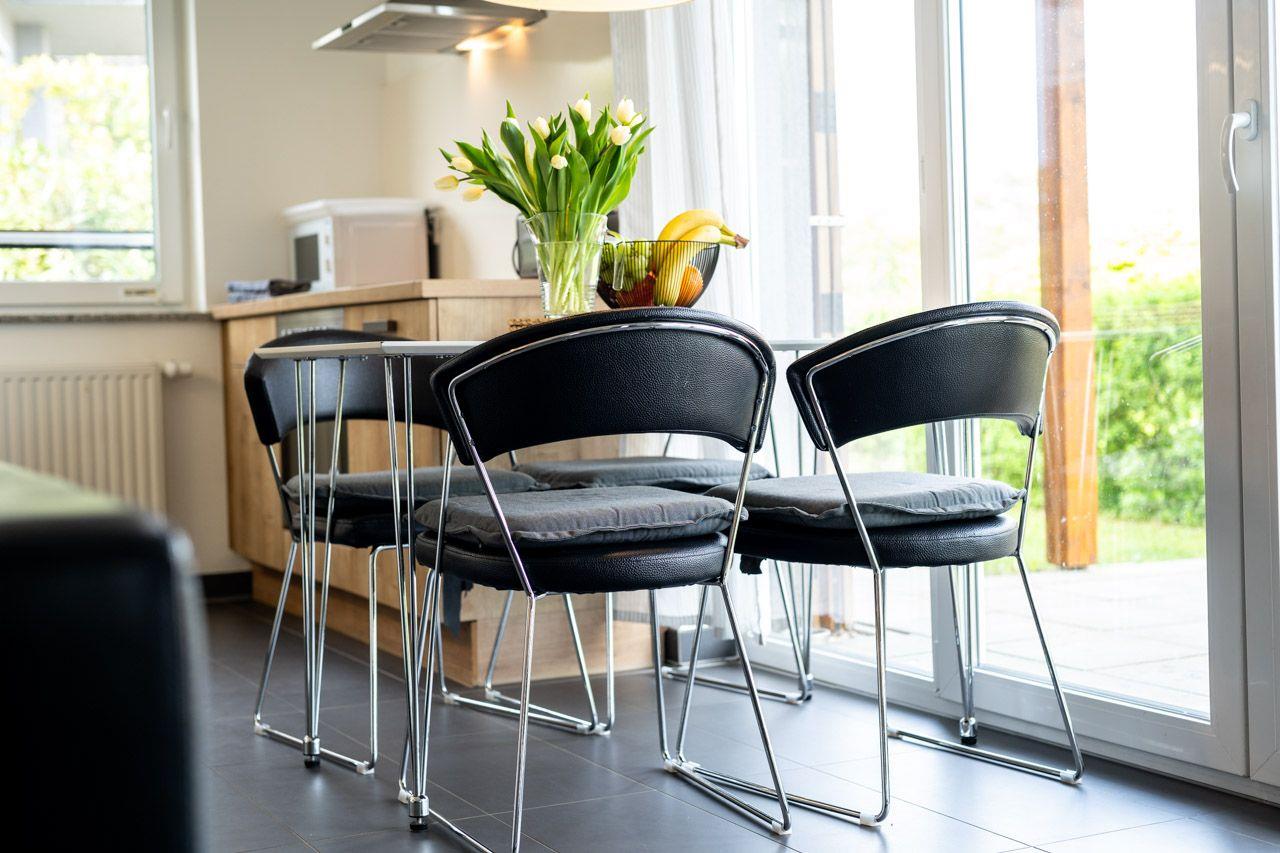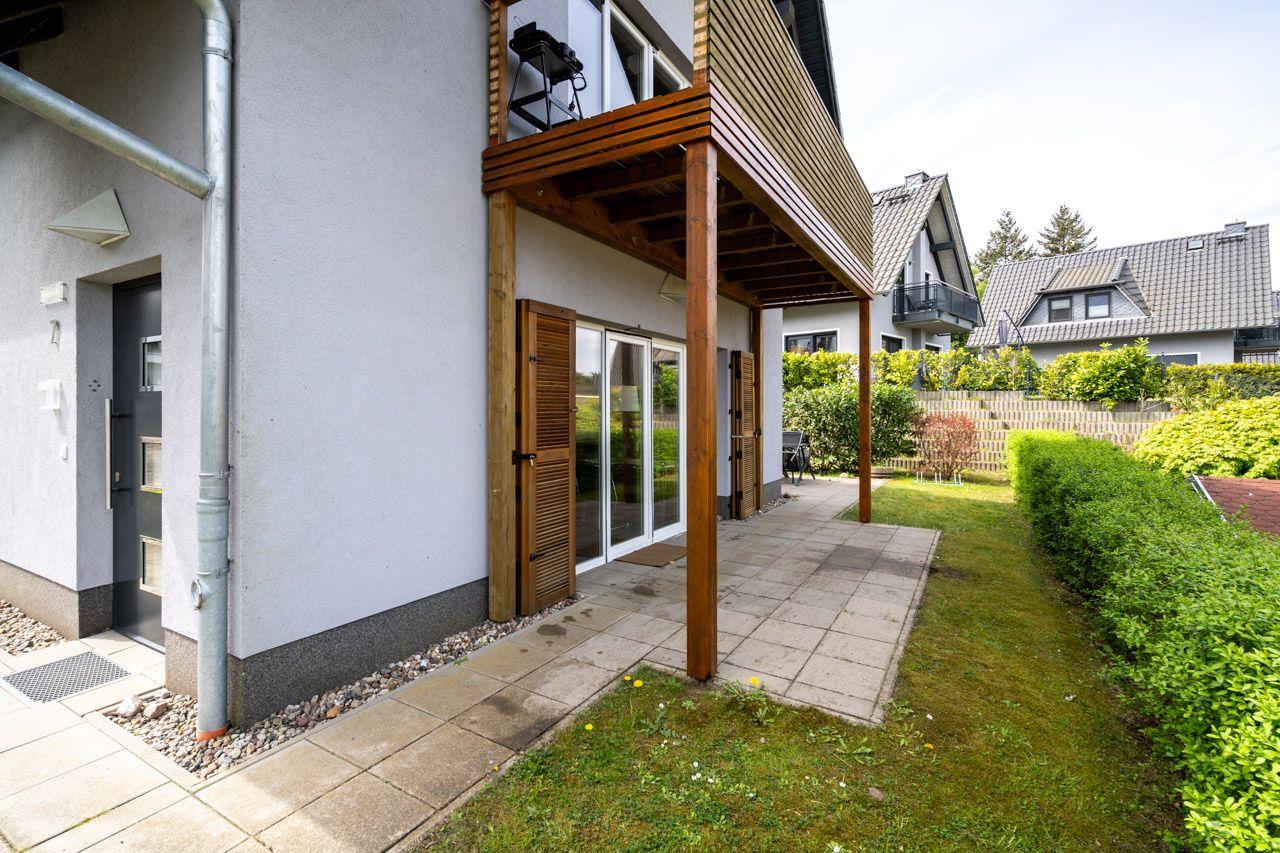 Diese komfortable Erdgeschosswohnung bietet mit 65 m² ausreichend Platz für eine Familie mit 2 Kindern, die Wohnung ist ausgestattet mit zwei Schlafzimmern: einem gemütlichen Doppelzimmer für die Eltern und einem Schlafzimmer mit zwei getrennten Betten (80 x 200) für die Kinder. In der offenen und voll ausgestatteten Küche können Sie den Tag gemeinsam ausklingen lassen. Das Wohnzimmer lädt zum Entspannen am Ende des Tages ein. Vom Wohnzimmer aus gelangt man direkt auf die Terrasse, direkt neben der Wohnung befindet sich auch ein PKW-Stellplatz. Die Ferienwohnung ist mit kostenlosem Internetanschluss über Wlan ausgestattet.