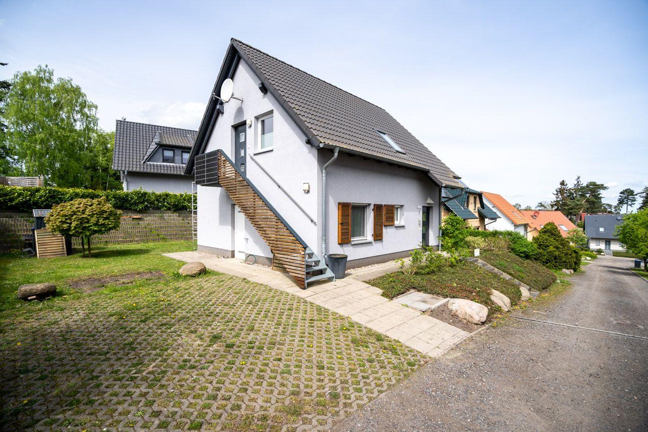 Ferienwohnung für 4 Pers. in Röbel, idealerweise für Familie mit 2 Kindern, Haustiere erlaubt, Terrasse mit eingeschränktem Wasserblick, inkl WLan, 2 SZ (1 x Doppelbett, 2 x Einzelbett 80 x 200), nur 200 m zum Badestrand und Spielplatz, direkt am Fahrradweg