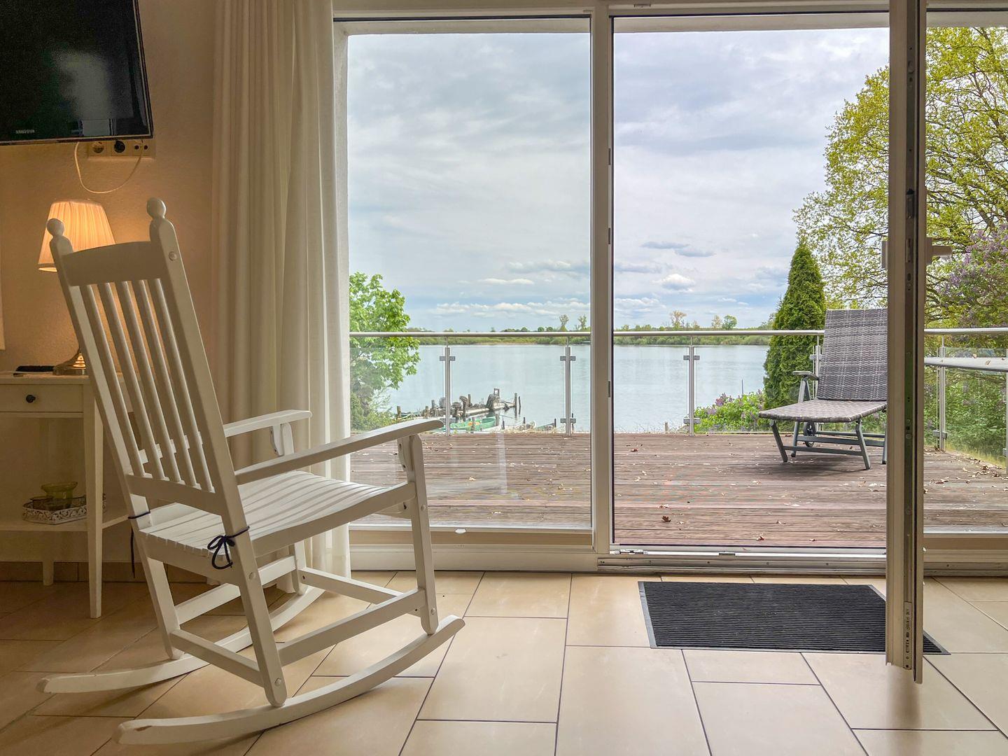 Vom Wohnzimmer und der Terrasse hat man einen direkten Blick auf die Müritz.