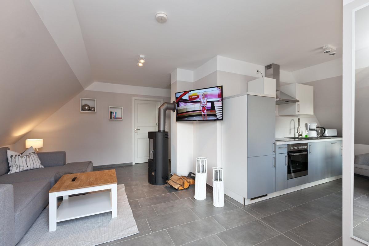 Die Ferienwohnung befindet sich im Dachgeschoss, in ruhiger Lage. Modern, gemütlich und tolles Ambiente. Ausgestattet mit 2 Schlafzimmern, einer Koch- und Wohnlandschaft, einem Kamin, einem Balkon und einer Fasssauna. Unsere Doppelboxspringbetten bieten eine angenehme Nachtruhe. Die Fenster besitzen Aussenrollos und Fliegengitter. Auf der Terrasse befindet sich ein fester Grill mit dazugehörigen Gartenmöbel. Für Familien mit Kindern, kann ein Kinderreisebett und ein Hochstuhl von uns zusätzlich aufgestellt werden, auf Anfrage. Ein PKW- Stellplatz befindet sich direkt an der Unterkunft.