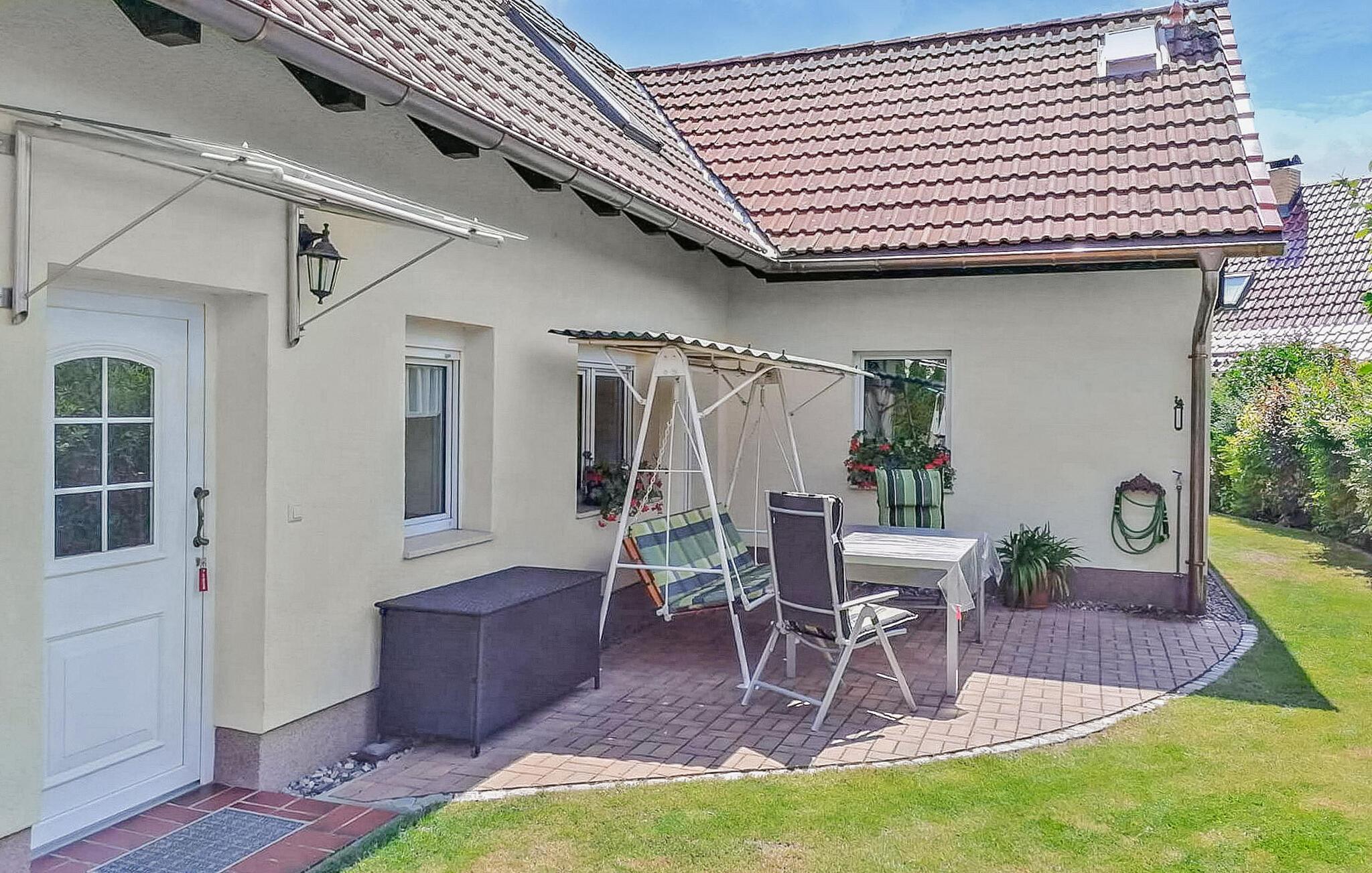 Sommerhuset ligger på de gæstfrie ejeres cirka 890 kvadratmeter indhegnede boligejendom og er oplagt til en rolig, afslappende ferie i naturen og ved vandet. Et idyllisk badeområde med badebro på Großer Mahlgastsee ligger kun cirka 700 m væk og kan hurtigt nås til fods, på cykel eller i bil. Udover en restaurant har Röddelin også et livligt landsbyliv med forskellige arrangementer. Det cirka 45 kvadratmeter store feriehus er lyst og venligt indrettet over to etager og kan rumme op til 3 personer. I kælderen er der køkken med spiseplads, ovn, køleskab og mikroovn samt badeværelse med brus/toilet/hårtørrer (gennemstrømningsvandvarmer). Trappen fører dig til den åbne opholdsstue med sofa, tv, cd-afspiller og polstret liggestol (ekstra seng) og til soveværelset med dobbeltseng. Også tilgængelig: gratis WiFi, en møbleret terrasse med en Hollywood-gynge og liggestole, grill, cykelrum, barneseng og høj stol. Mod et gebyr (betaling på stedet): Cykeludlejning (5,00 EUR/dag/cykel). Den samlede pris inkluderer vand- og energiforbrug, sengelinned og håndklæder samt slutrengøring. Betales på stedet: Leje for cykler (5 EUR/dag/cykel) Kæledyr er ikke tilladt i denne ejendom. Beliggenheden er pålagt turistskat. Röddelin er et distrikt i den lille by Templin (ca. 5 km) i hjertet af Uckermark, midt i en smuk region rig på skove og søer og er omgivet af i alt 3 søer. Röddelinsee har status som en føderal vandvej (Upper Havel) og er ideel for vandvandrere.De store og små Mahlgastsees betragtes som meget gode fiskevande og badesøer. Der er 3 cykel- og vandrestier, der fører gennem byen. Templin, som turistcentret i Uckermark, byder på udendørs swimmingpools, et smukt naturligt termalbad, bådudlejning, passagerbådsture samt adskillige restauranter og shoppingmuligheder. Cirka 4 km uden for byen åbnede den vestlige by Silverlake City i 2004 med forskellige fritidsattraktioner. Et andet højdepunkt er de populære trolleyture til Lychen og tilbage.