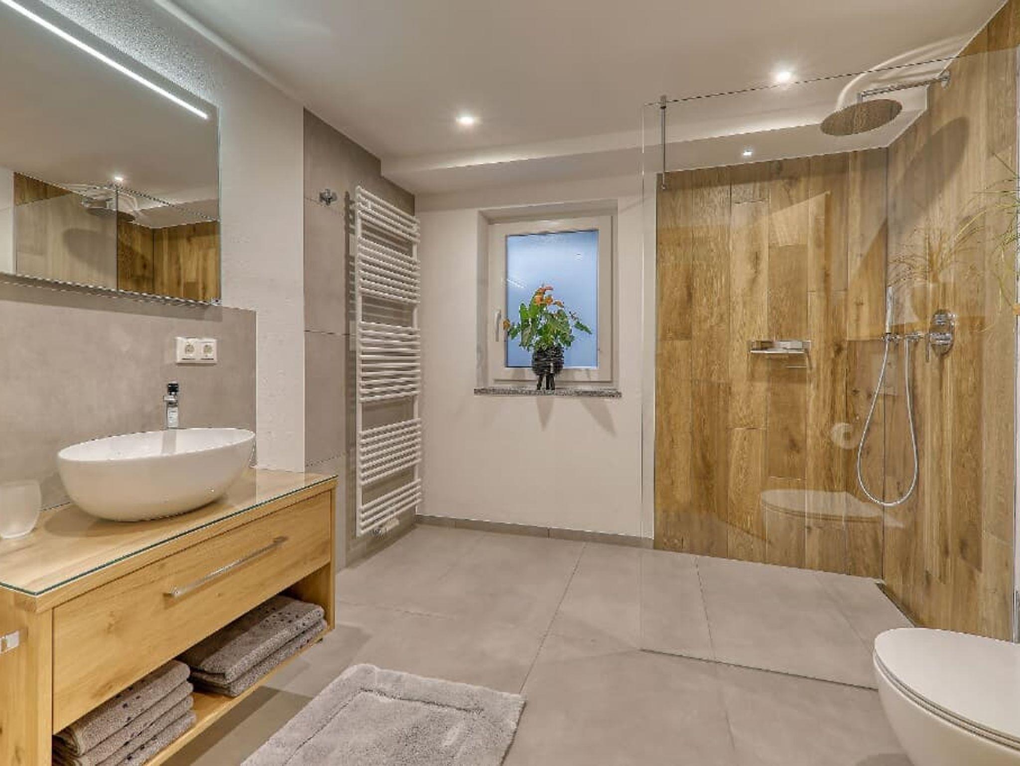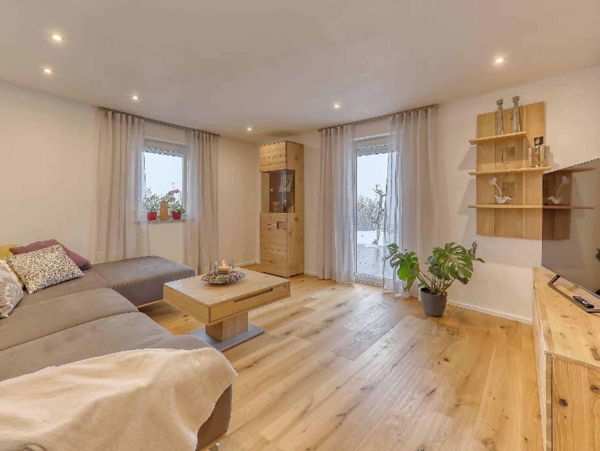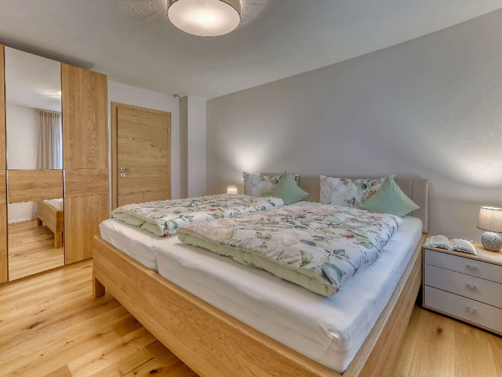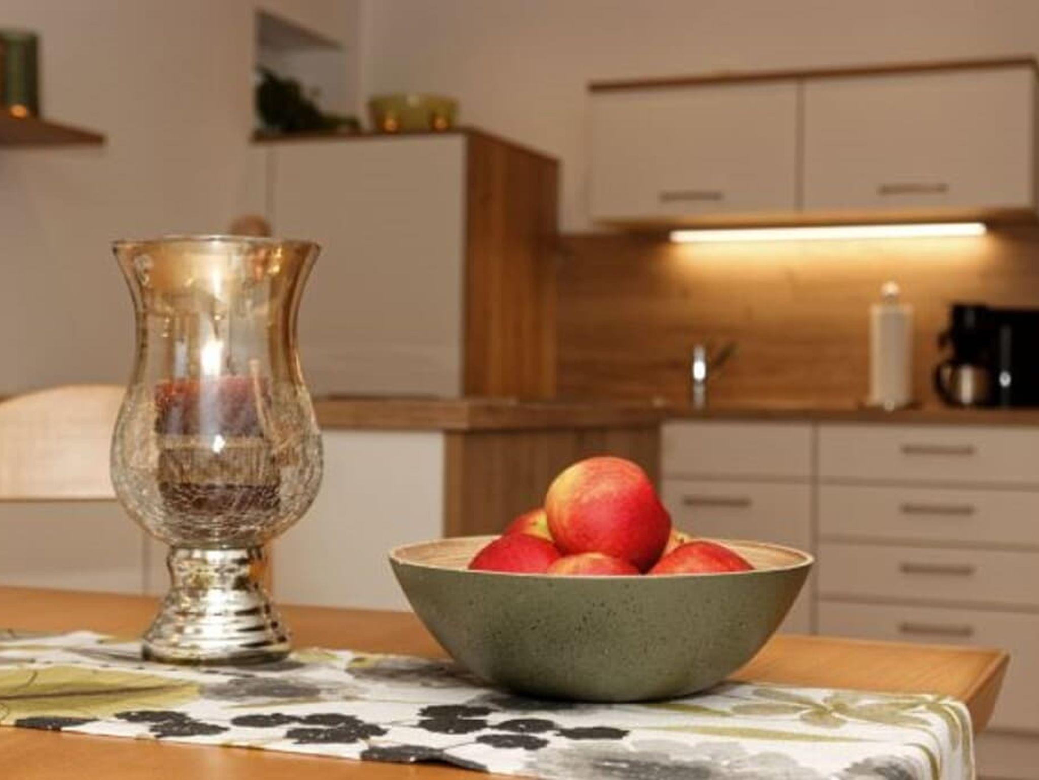 Die komplett neu und modern renovierte Ferienwohnung (Nichtraucherwohnung) im Erdgeschoss verfügt über ein Schlafzimmer mit Doppelbett, ein Wohnzimmer, ein Wohlfühlbadezimmer und eine Küche mit Essbereich. Die hochwertige Ausstattung, teils mit Massivholzmöbel und in ruhiger Lage laden zum Entspannen ein. Die Ferienwohnung mit einer Größe von 65qm verfügt über einen separaten Eingang mit großer Terrasse und direktem Zugang zum weitläufigen Garten. Alle Räume sind mit Fußbodenheizung und z.T. Eichenholzböden ausgestattet.Das Badezimmer verfügt über eine begehbare Regenschauerdusche sowie einen Kosmetikspiegel und einen Fön. Auch Handtücher stehen zur Verfügung.Die großzügige Küche mit Essbereich ist mit Geschirrspüler, Kühlschrank mit Gefrierfach, Kochinsel mit E-Herd, Cerankochfeld und Bora-Dunstabzug, Kaffeemaschine mit integrierter Senseo-Brüheinheit, Toaster, Wasserkocher sowie Gläser, Kaffee- und Speiseservice, Besteck und vielen weiteren Kochutensilien ausgestattet. Das Wohnzimmer mit großer Couch und Flachbildschirm bietet einen direkten Zugang zur Terrasse sowie zum steht ein kostenloser Außenstellplatz zur Verfügung.Anreise von 14 Uhr bis 22 Uhr, Abreise bis 10 Uhr. Individuelle Absprachen sind jedoch möglich. Haustiere sind nicht erlaubt. Kurbeitrag der Gemeinde beträgt ab 16 Jahren 1,50 Euro pro Person und Tag. Im Preis sind alle Nebenkosten wie Bettwäsche, Handtücher, Strom, Wasser und Endreinigung enthalten.Stockwerk Etage: Erdgeschoss Ausstattung: 1 Schlafraum mit Doppelbett (Bettwäsche vorhanden) 1 Wohnzimmer mit Couch und Flachbildschirm, Satelliten TV, WLAN im Zimmer, Terrasse am Zimmer, Küche mit Essbereich, Kaffeemaschine, Kühlschrank, Toaster, DAB-Radio, Essecke (Küchenwäsche vorhanden) Sanitär: Bad mit WC und begehbarer Regenschauerdusche Lage: Gartenseite