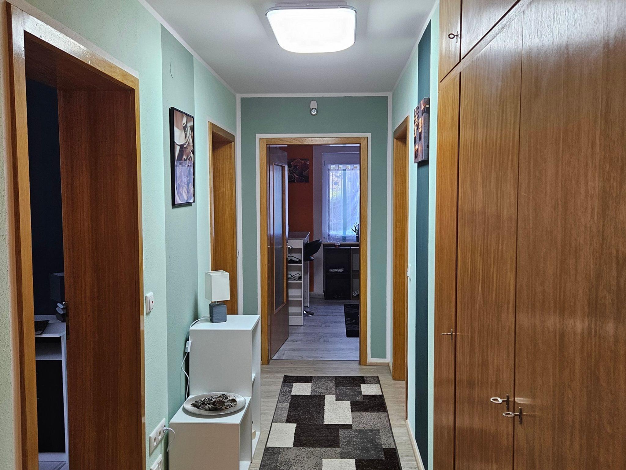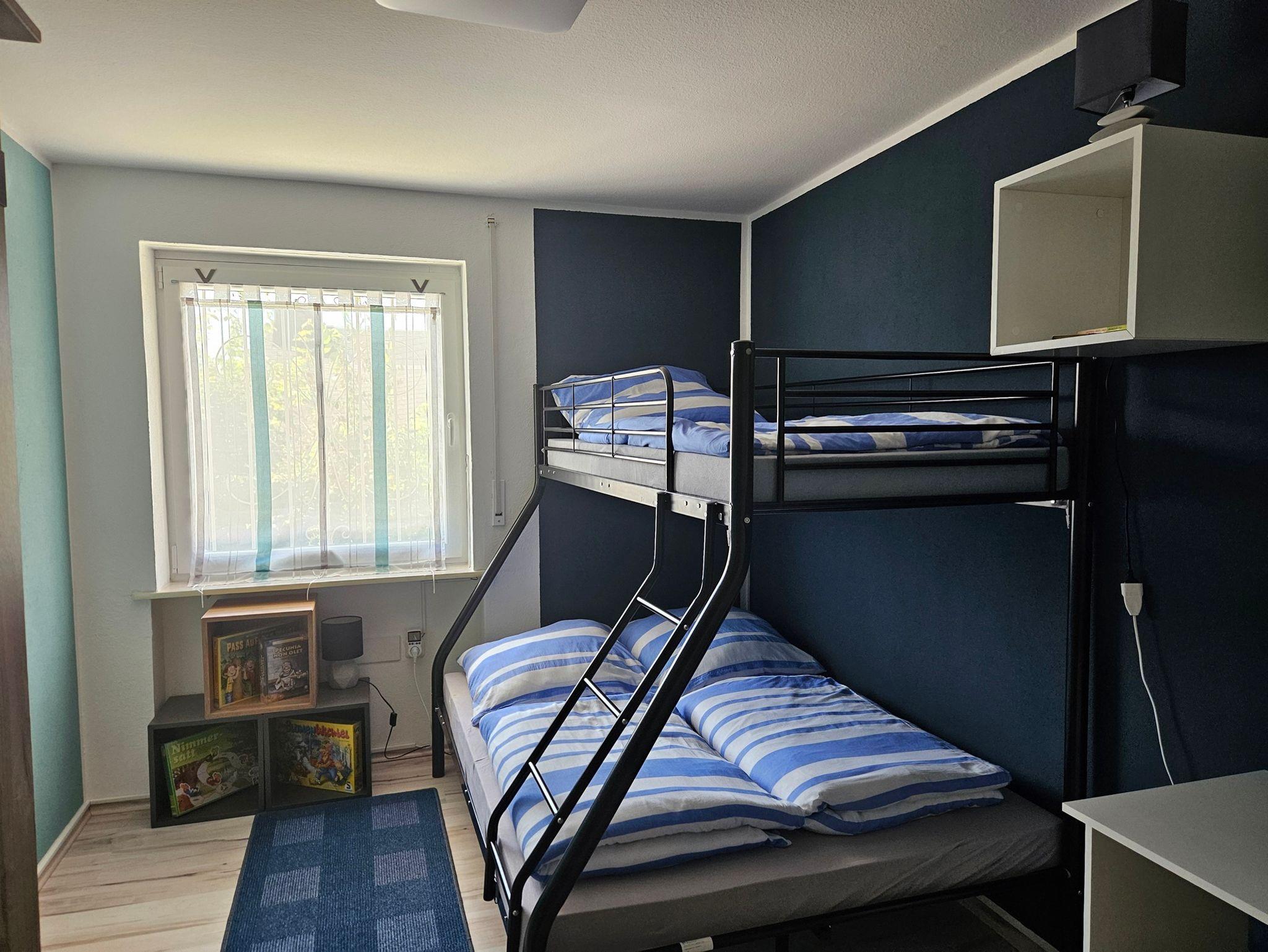 Im Schlafzimmer gibt es ein Doppelbett und einen großen Kleiderschrank mit Ganzkörperspiegel. Das Kinderzimmer hat ein Etagenbett (unten 140x200 oben 90x200 ) einen Kleiderschrank einen Schreibtisch und eine Spielecke.