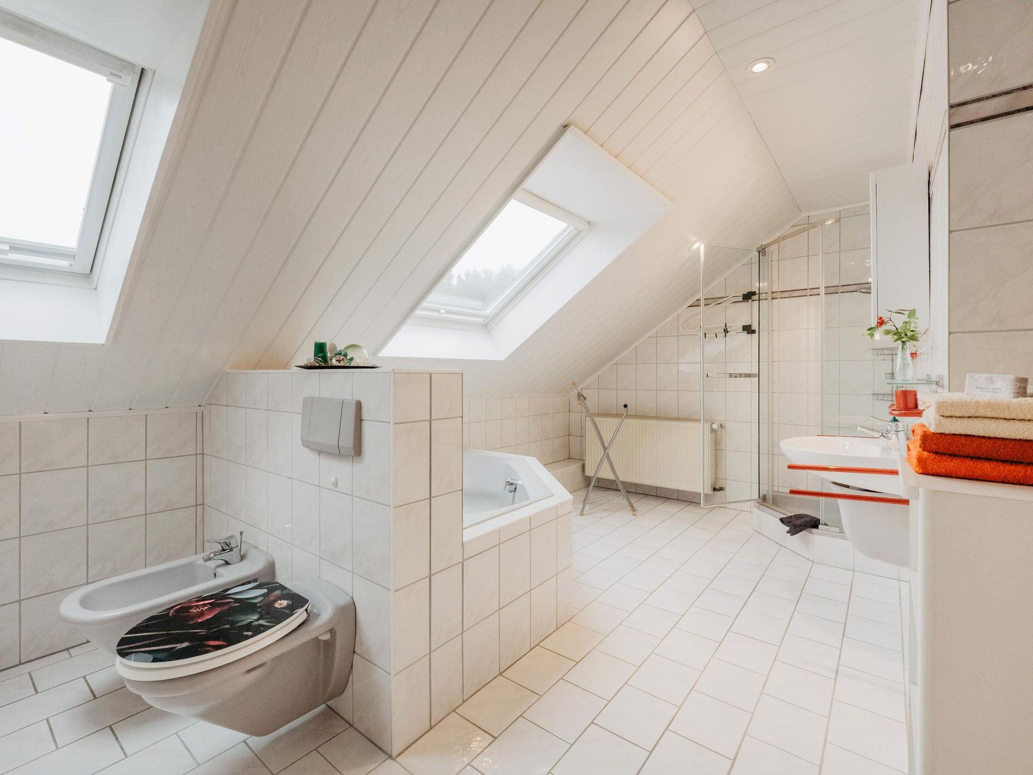 14 m² Bad mit Wanne, Dusche, Toilette, Waschtisch