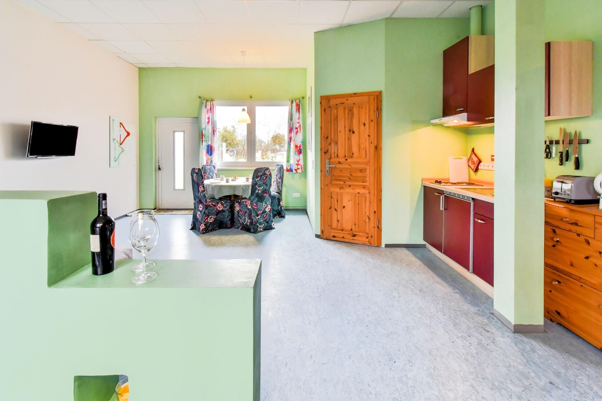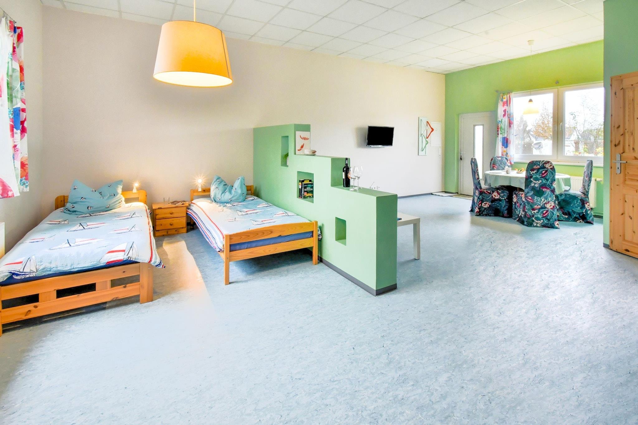 Denne charmerende 1-værelses ferielejlighed i Rövershagen er et hyggeligt og kreativt tilflugtssted for op til 4 gæster, beliggende mellem hansestaden Rostock og Østersøferiestedet Graal Müritz, begge kun 10 km væk. Lejligheden har en rummelig kombineret stue/soveplads, et spisekammerkøkken og et privat badeværelse med bruser. Udenfor kan gæsterne slappe af i et opholdsområde i haven med grill, perfekt til at slappe af efter en dag med kysteventyr. Ejendommen rummer også en anden lejlighed og et kreativt værksted, hvor værtinden tilbyder kunstkurser, et unikt præg for gæster med en kunstnerisk ånd. Sandstranden Graal Müritz ligger kun en kort køre- eller cykeltur væk, mens Warnemündes promenade og strand kun ligger 12 km fra dit dørtrin. For en kulturel dag ude, udforsk Rostocks historiske gamle bydel, havneterrasser og gotisk arkitektur. Når det er tid til at spise, kan du nyde en bøf med udsigt på Rosmarin'o Steakhouse Restaurant, nyde fisk og skaldyr på Borwin Hafenrestaurant, eller snuppe en afslappet bid i Joho Broiler Bar. Uanset om du strand-hopper, maler i haven eller udforsker hanseatiske charme, tilbyder denne Rövershagen-lejlighed en fredelig og inspirerende baltisk flugt.