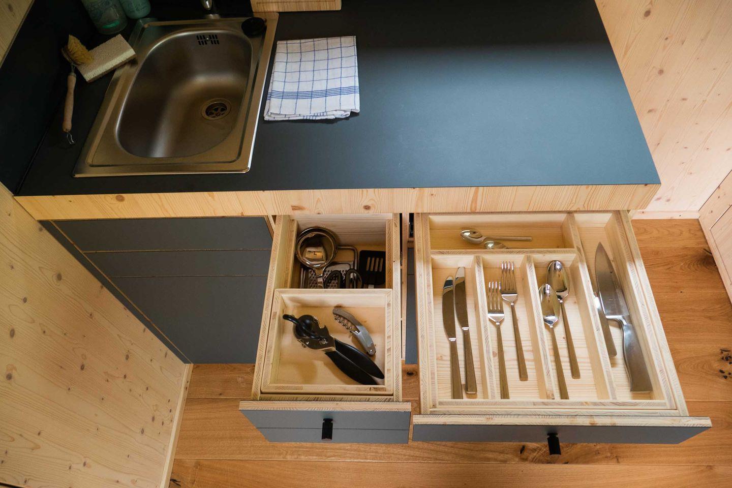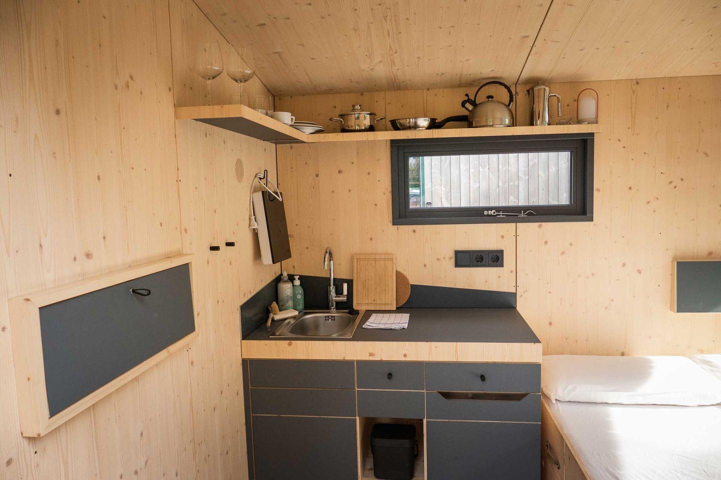 Die neuen Green Tiny Sleep Spaces sind ideal geeignet für Fahrradfahrer, Wanderer und andere Naturliebhaber, die nach einer nachhaltigen und stilvollen Übernachtungsmöglichkeit suchen. Auf fünf Quadratmetern findest du alles, was du für einen Kurzaufenthalt benötigst: ein komfortables Bett für zwei Personen, eine Kochnische mit Waschbecken und ausreichend Staumöglichkeiten. Duschen und Toiletten findest du in den Waschräumen auf dem Campingplatz Rülzheim. Die kleinen Geschwister der Green Tiny Houses vom Typ Pioneer werden ebenfalls in Schleswig-Holstein gebaut und bestehen ausschließlich aus wohngesunden Materialien. Außerdem bieten wir dir eine klimaneutrale Übernachtung dank Kompensation aller anfallenden CO2-Emissionen.