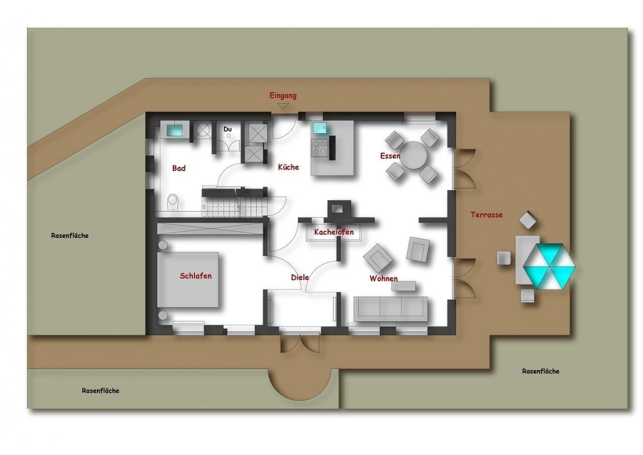 Die Wohnfläche teilt sich in ein großzügiges Erdgeschoss mit einem separaten Schlafzimmer mit Doppelbett (2x 90x200 cm), TV und Blue-Ray-Player, einem Wohnzimmer mit TV und Blue-Ray-Player sowie einem Duschbad mit Fußbodenheizung und einer offenen Küche mit Essbereich für 4 Personen und direktem Terrassenzugang auf. Die Küchenausstattung umfasst praktische Annehmlichkeiten wie eine Kaffee-Padmaschine (Senseo), Kaffee-Zubereiter, Pürierstab, Zerkleinerer, usw. - Hier werden Sie problemlos leckere Ferienmahlzeiten zubereiten können. Im Obergeschoss befindet sich ein offener Galerie-Wohnbereich mit einem eingebauten Kojenbett (100x200 cm) in einer Schlafnische und einem weiteren Doppelbett (140x200cm), TV und Blu-Ray-Player sowie einem Gäste-WC. Im Außenbereich erwarten Sie Highlights wie z. B. eine möblierte Sonnen-Terrasse sowie zwei weitere, kleine, gepflasterte Terrassen im Garten. Dort stehen Ihnen je zwei Sonnenliegen zur Verfügung, die für Erholung und Entspannung sorgen oder dazu einladen, ein gutes Buch zu lesen.