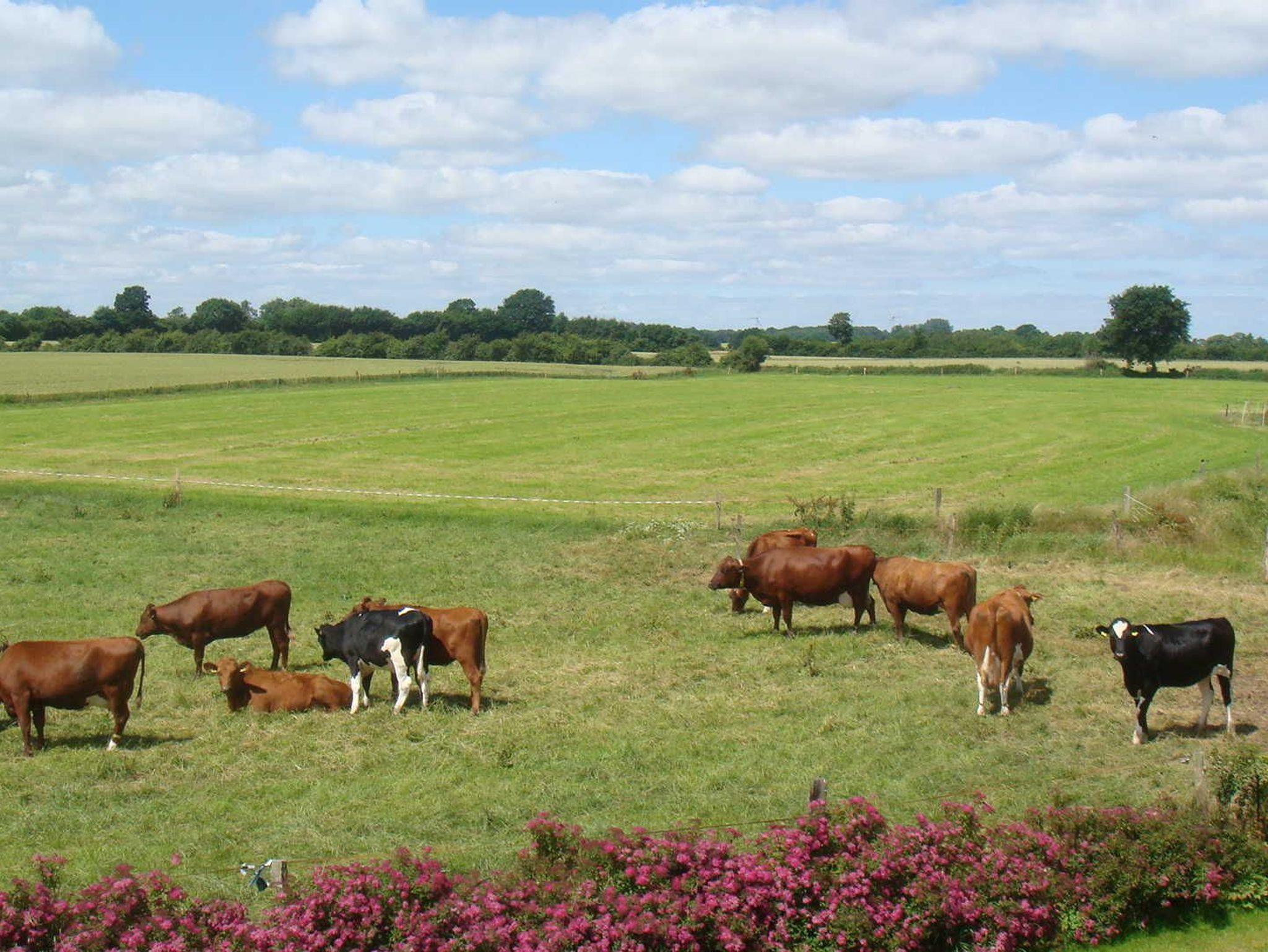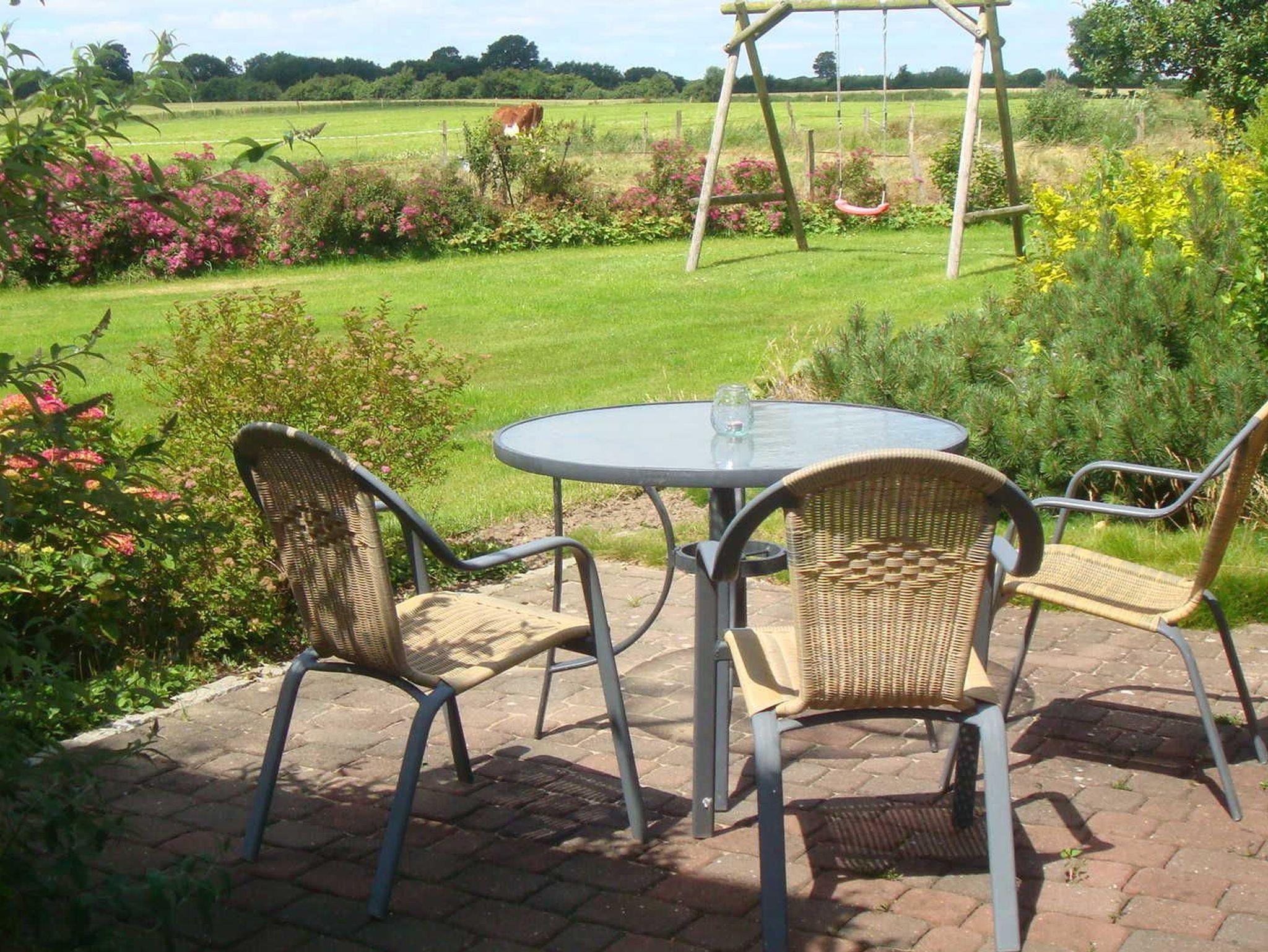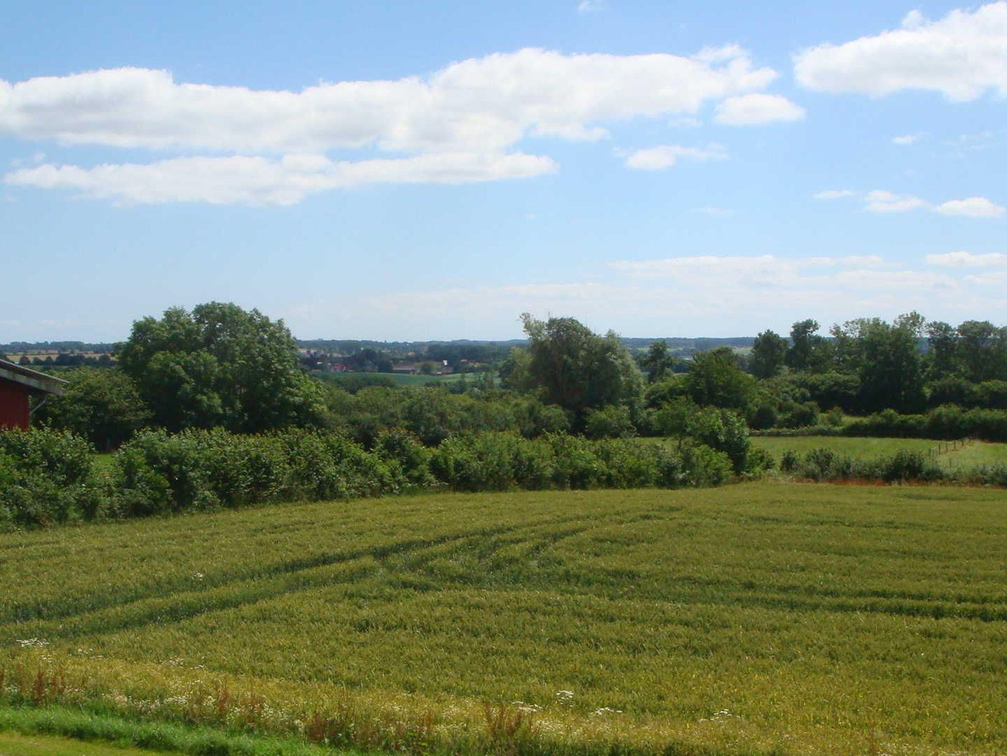 Ruhig gelegene Ferienwohnung mit schöner Aussicht auf Felder und Wälder, in der Ferne liegt Arnis bzw. die Schlei. Zum Bauernhof (Milchviehhaltung, Getreideanbau) gehörendes Haus, gelegen an einer Nebenstraße, die auch zugleich empfohlener Radwanderweg ist. Das Grundstück hat einen großen Garten und grenzt mit seinem Gemüsegarten an den Obstgarten des Bauernhofs. Die Terrasse für die Gäste befindet sich im Winkel nach Westen mit Abendsonnenschein. . Dort befindet sich auch die Liegewiese.