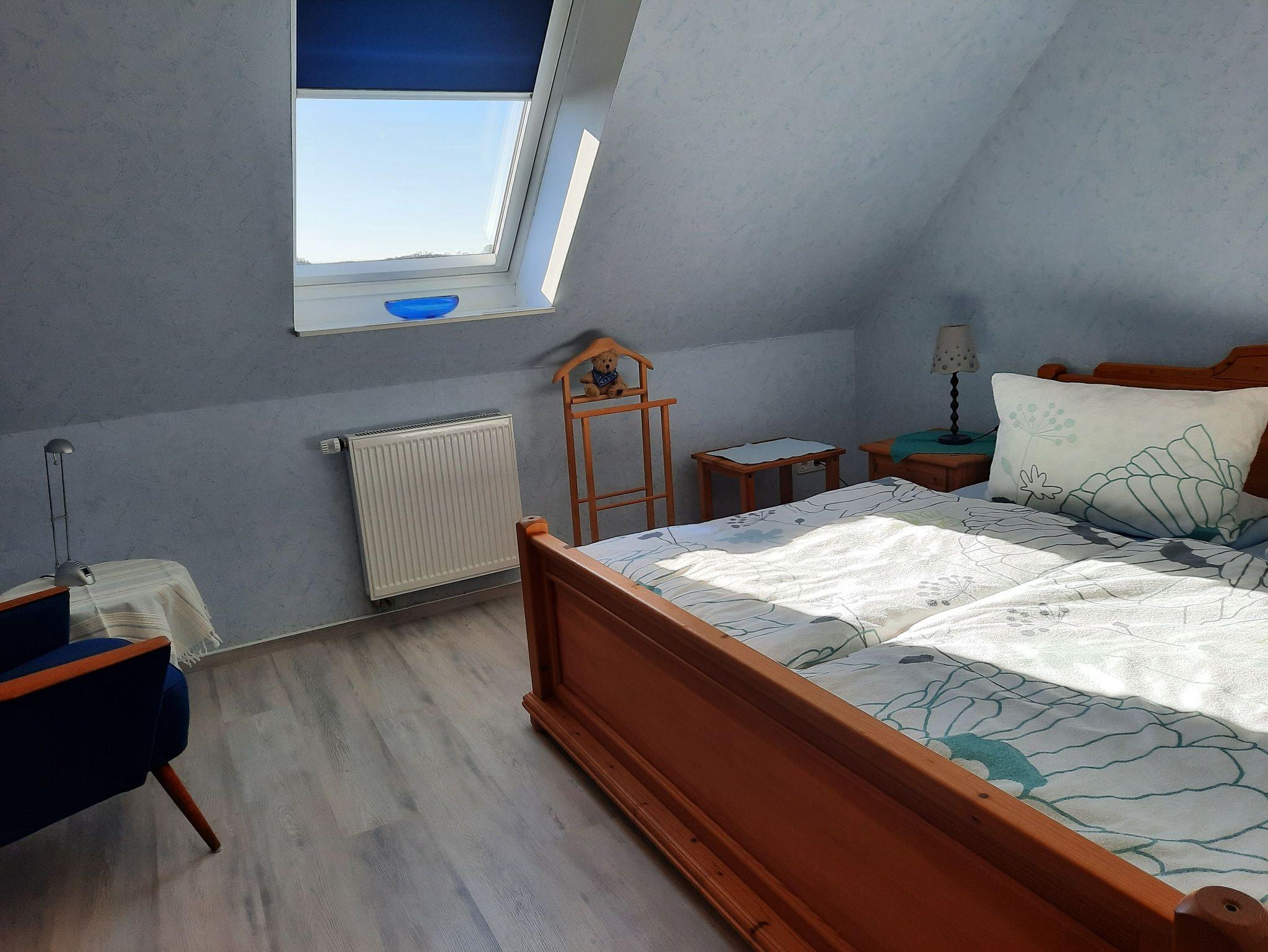 Ein Schlafzimmer befindet sich nach Westen, ein Schlafzimmer nach Norden. Alle Räume sind hell und freundlich mit freiem Blick in die Natur/Landschaft. Der Wohnraum, Bad und Diele haben Fliesen-Fußboden, die beiden Schlafzimmer haben neue Laminatfußböden.