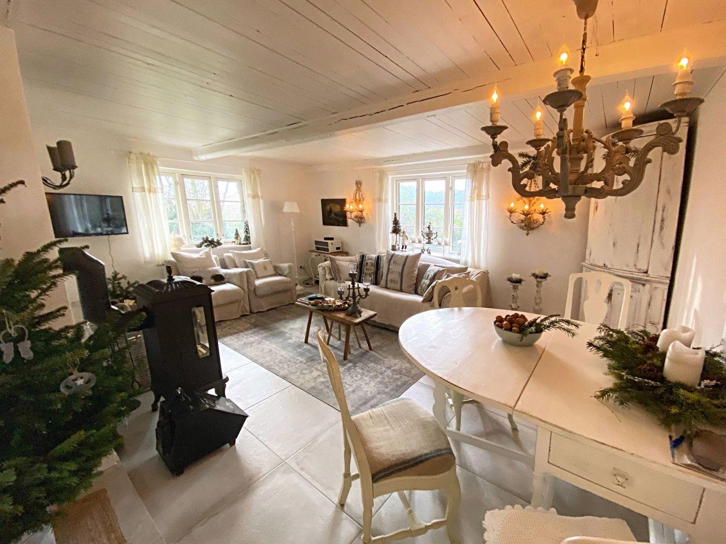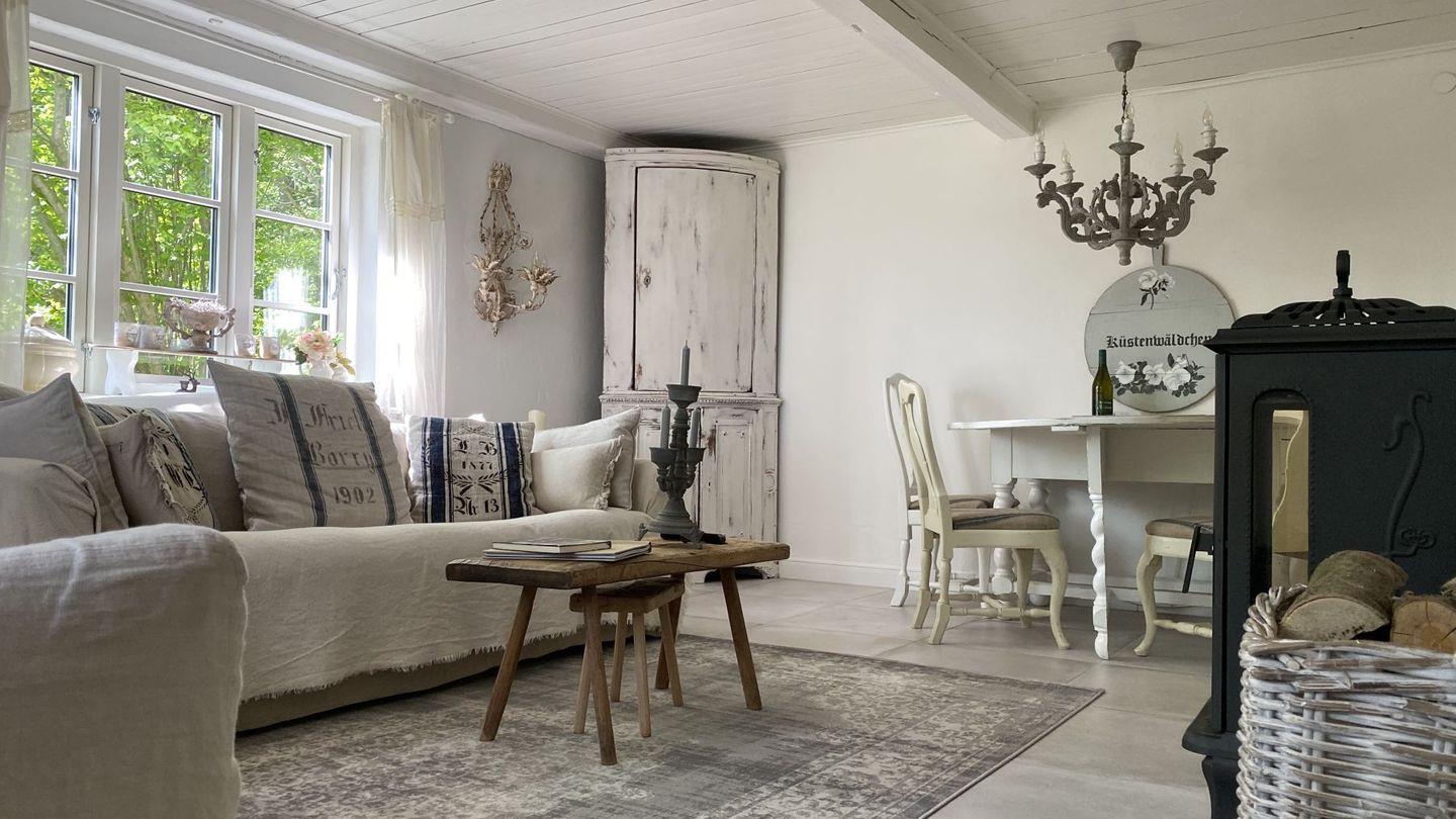 Das Ferienhaus "Küstenwäldchen" ist ein erst 2019 aufwändig renoviertes Reetdachhaus. Die liebevolle Innenausstattung lädt im großem Wohnzimmer zum Verweilen ein.