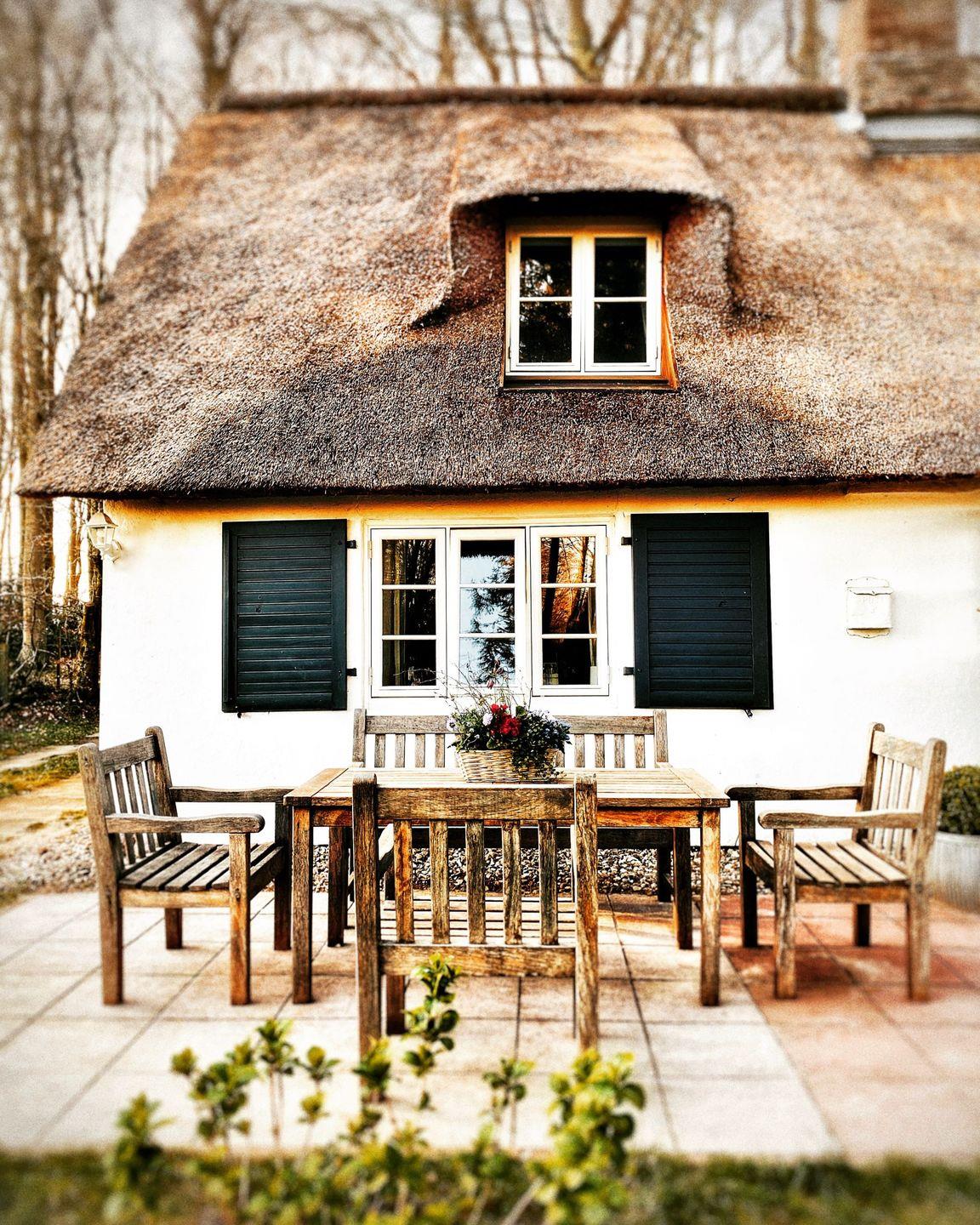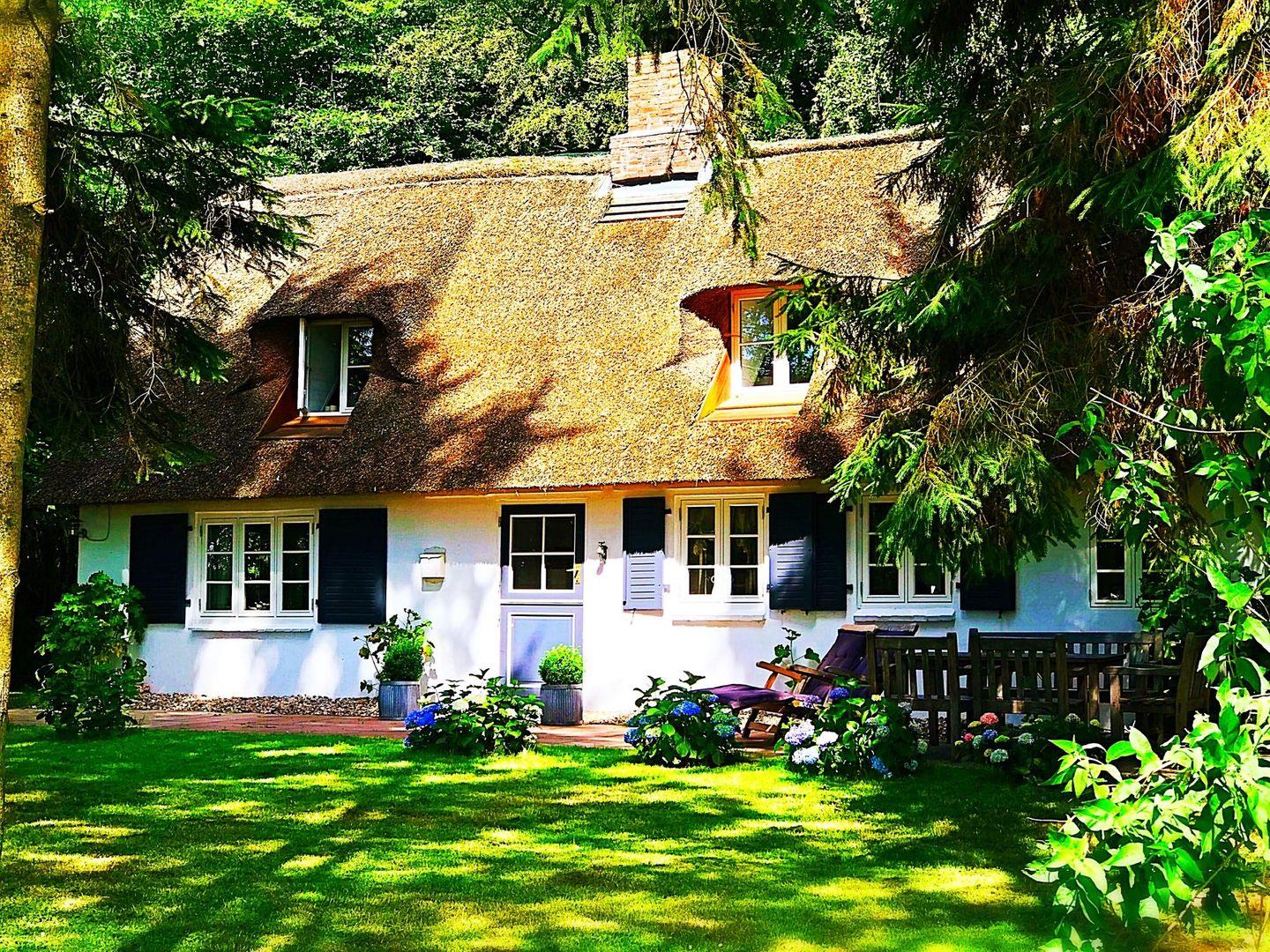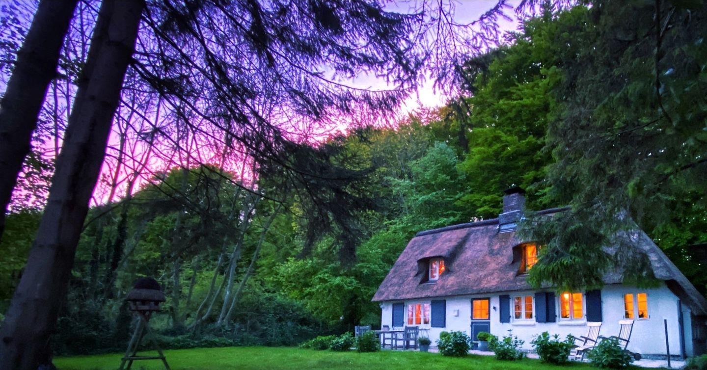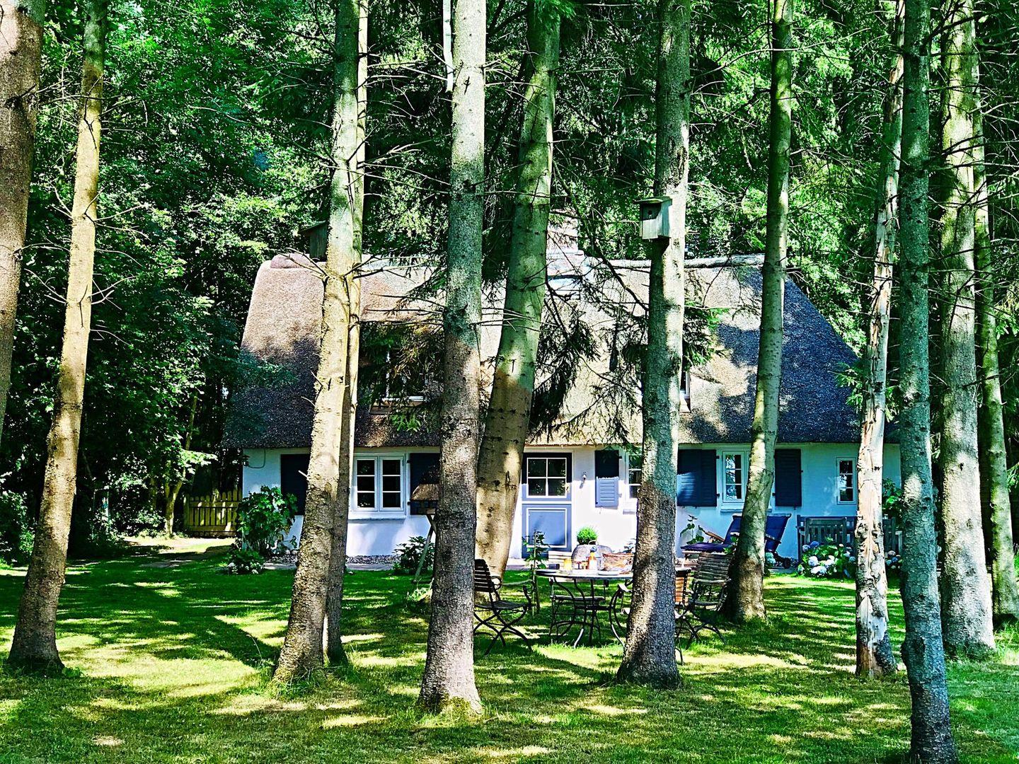 Kleines, einzigartiges Reetdachhaus inmitten eines lichten privaten Buchenwaldes nahe Schlei und Ostsee.